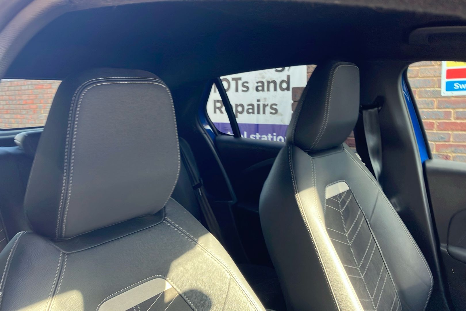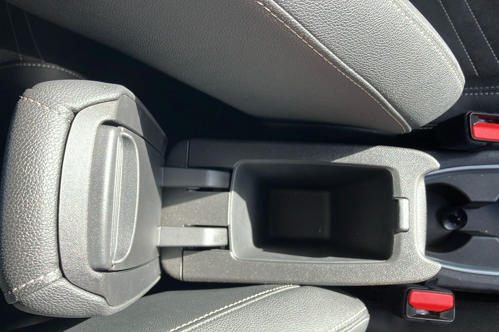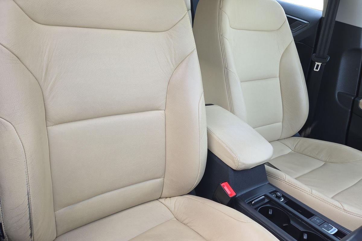 "Leather upholstery with contrast stitching"