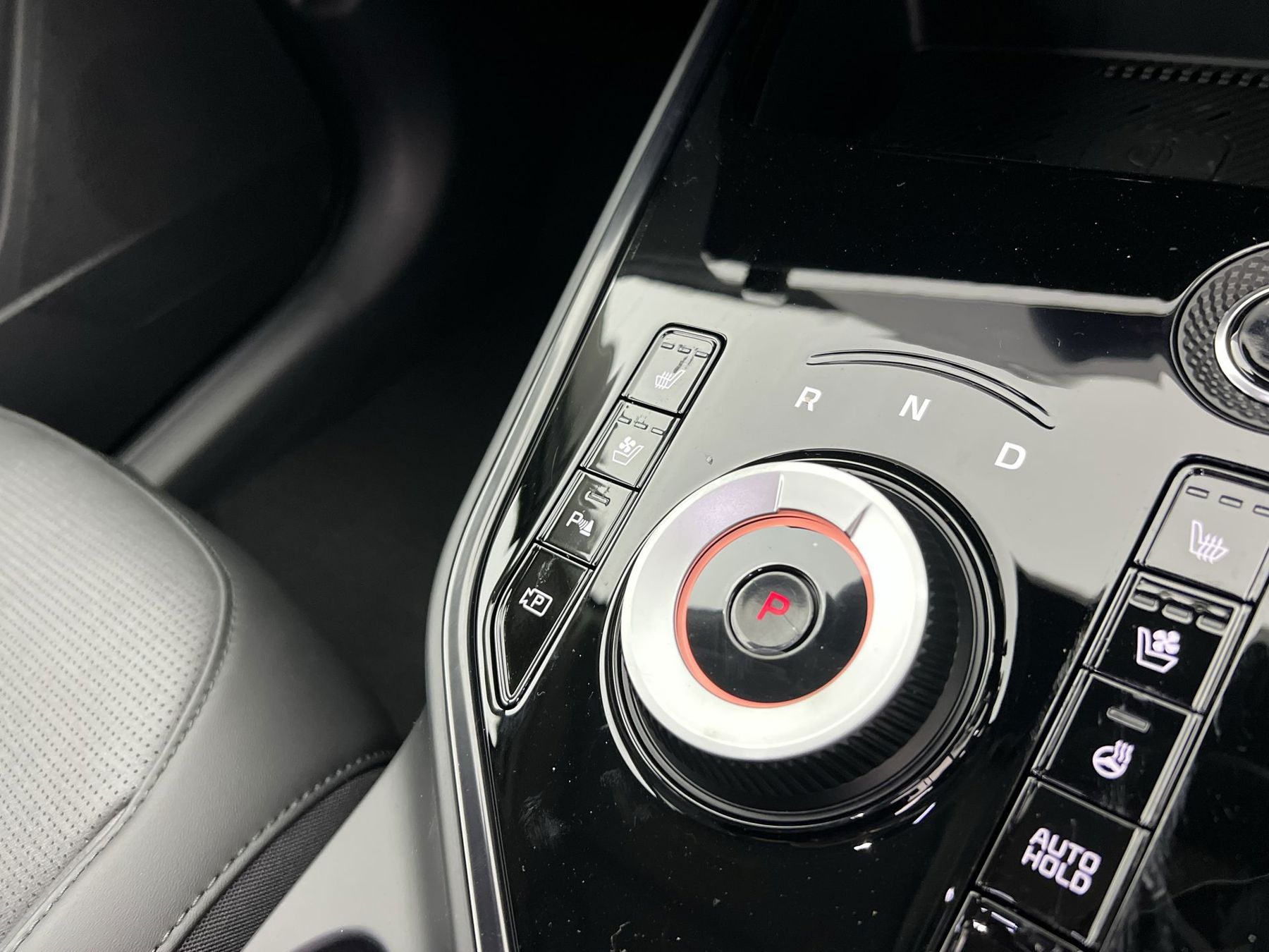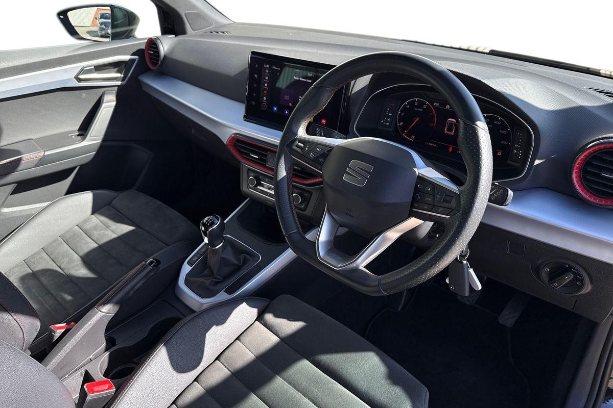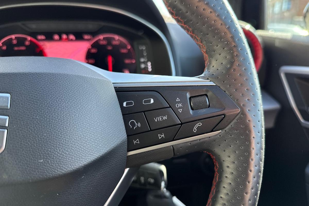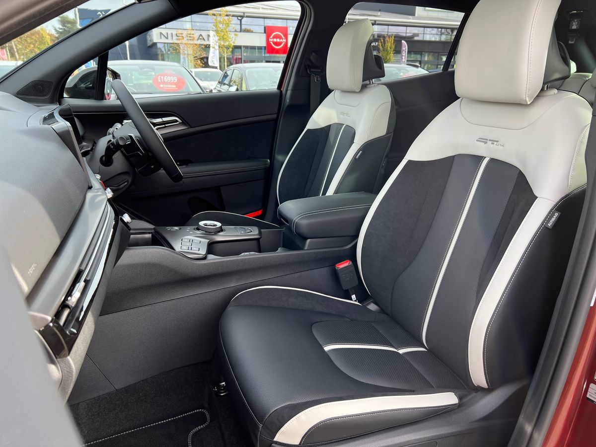 "Leather upholstery with contrast stitching"