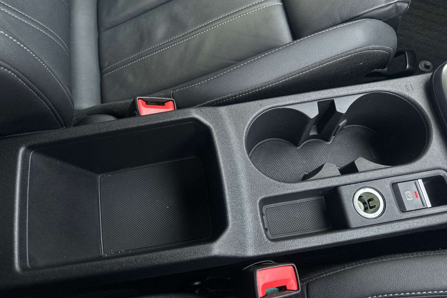 "Rear armrest with two integral cup holders for drinks",