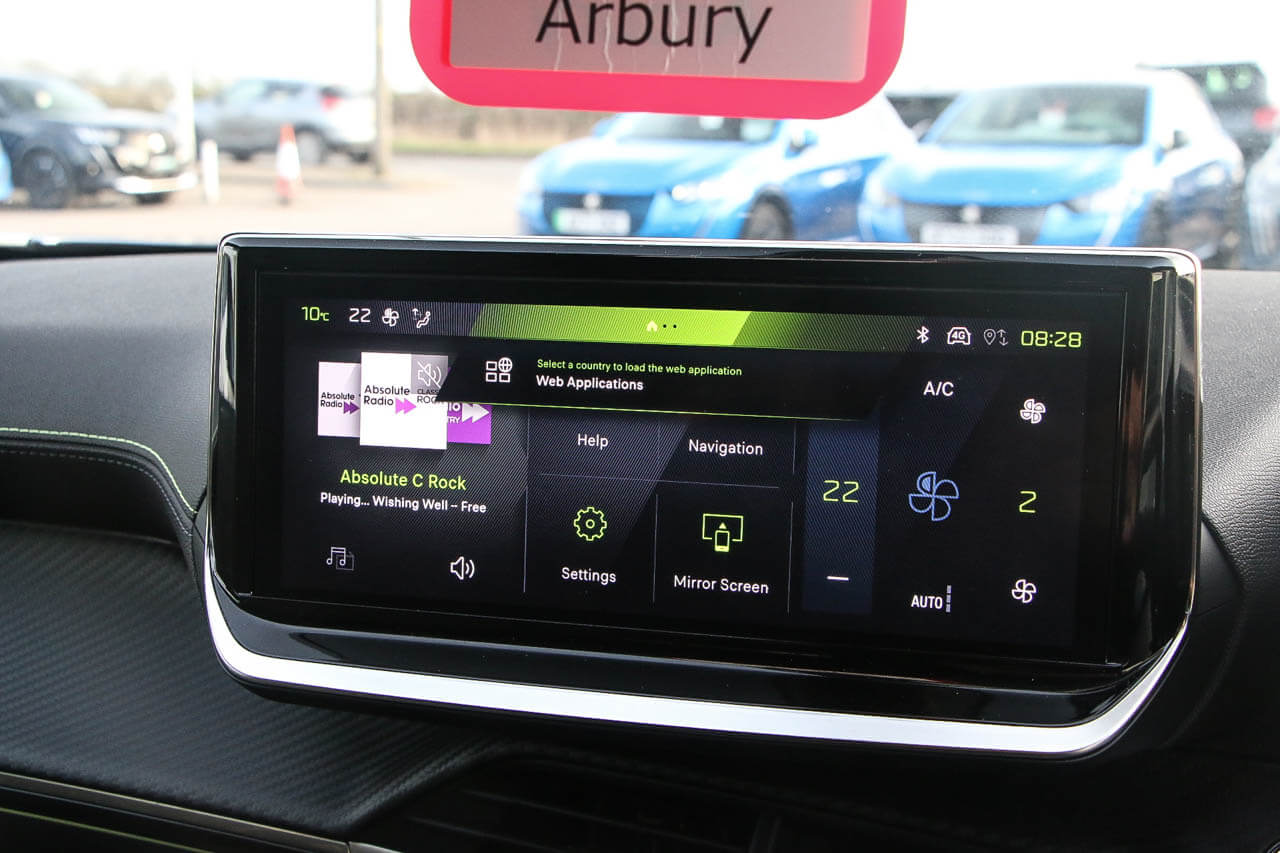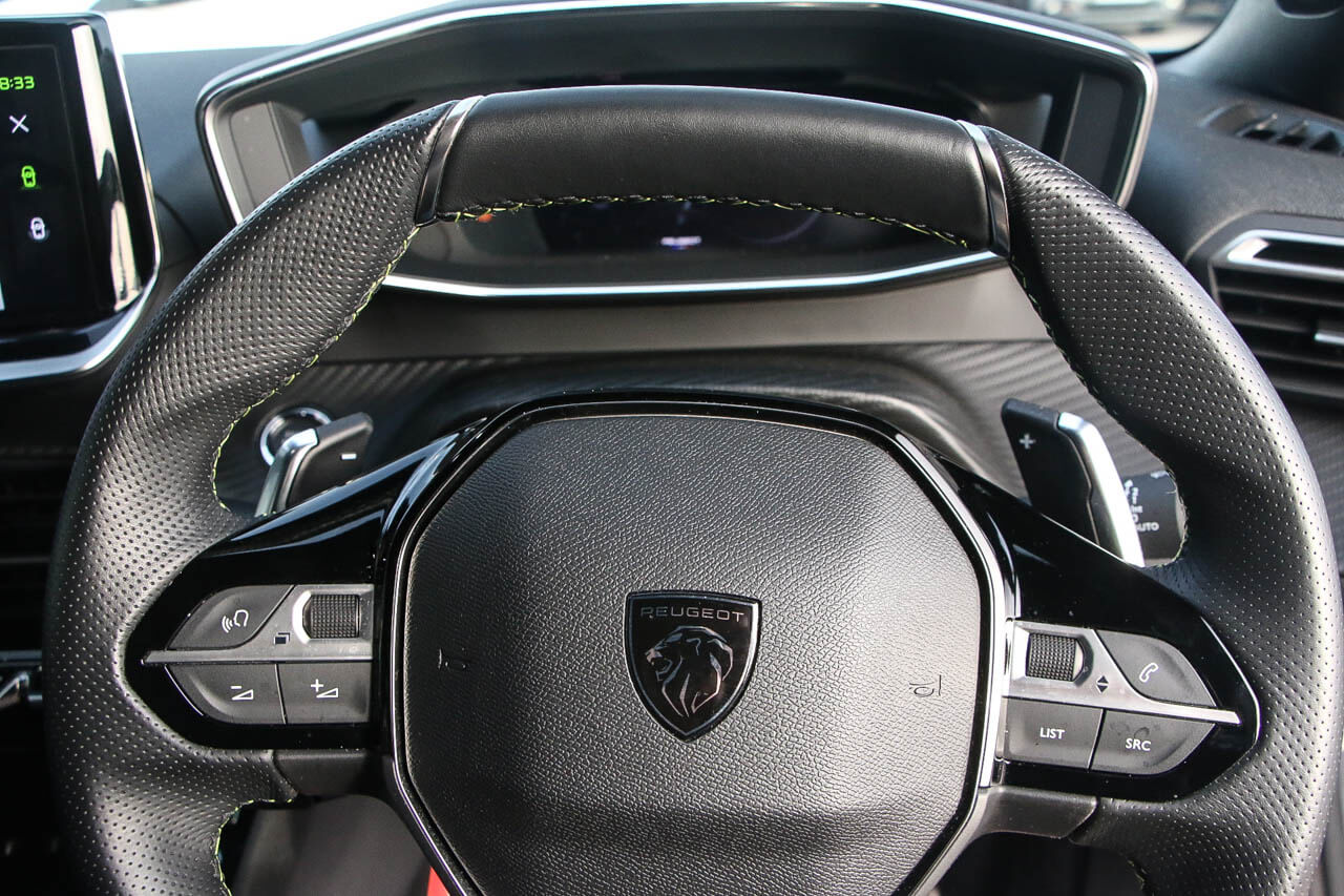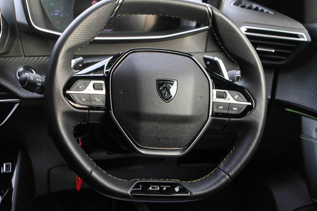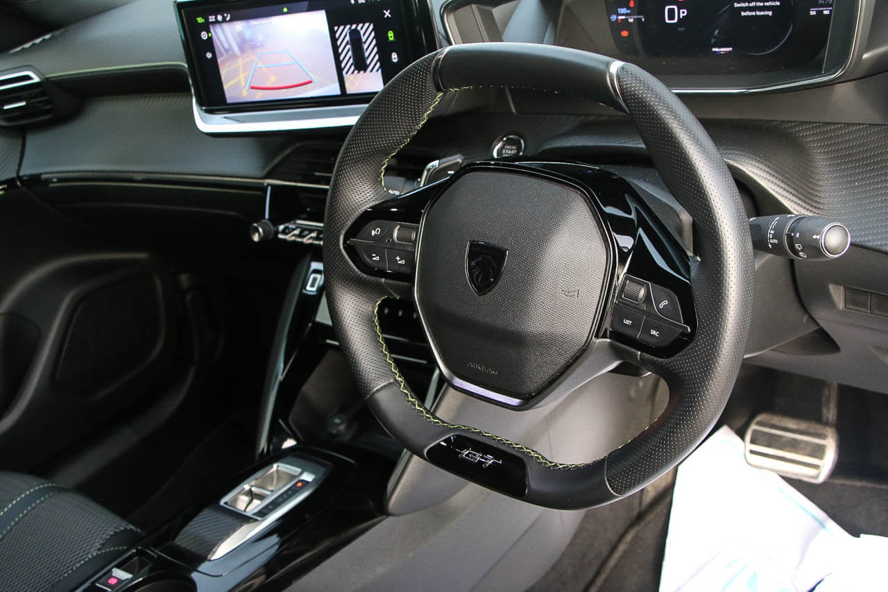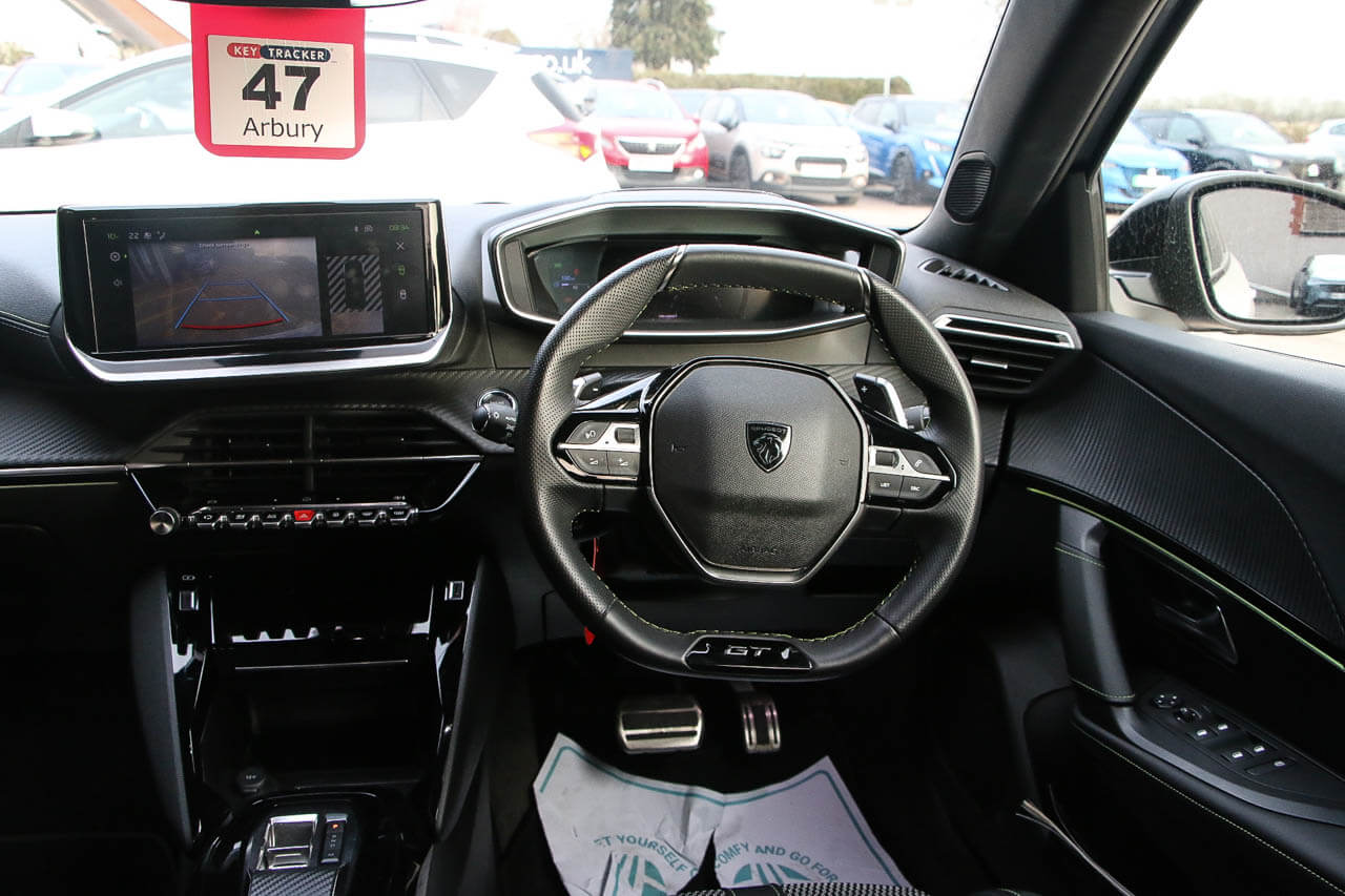 "features": "10\" Capacitive colour touchscreen with connected 3D navigation with Piano keys gloss black plated toggle switches to access touchscreen, Active blind spot monitoring system, Bluetooth telephone facility, Driver attention warning, Exterior temperature indicator with ice warning, Front and rear parking sensors, Lane keep assist, Lane positioning assist, Mirror screen with mirror link, apple carplay and android auto, Multi function trip computer, Peugeot connect SOS and assistance, PEUGEOT i-Cockpit with compact steering wheel, PEUGEOT i-Cockpit with configurable 3D headup instrument panel, Programmable cruise control and speed limiter, Push button start, Smart phone docking station, Smartphone charging plate, Speed limit recognition and recommendation, Visio Park 1 with 180 degree Colour reversing camera, 2 front USB socket with USB-C, 2 USB sockets in rear, 6 speakers radio with mp3 compatible, DAB Radio (Digital Audio Broadcasting), Voice recognition for radio, navigation and telephony features, 2 X Rear number plate lights, Black front wing trim with gloss black detail and GT badging, Body coloured exterior door handles, Chrome front lower bumper, Dark tinted Rear side and tailgate windows, Diamond black rear spoiler, Electric heated and power folding door mirrors, Frameless electrochrome interior rear view mirror, Front windscreen wiper, Full LED headlights with smartbeam assist, Gloss black finish on B pillar, Gloss black rear cluster connecting strip, Gloss black roof bars, Gloss black window surround, GT model designation badging, Headlights left on audible warning, LED daytime running lights with 3 claw headlight with distinctive tooth design, LED front fog lights, LED side indicator lights integrated into door mirrors, Model designation badges front and rear, Nera black door mirror shells, One touch electric front/rear windows with pinch protection, Radiator grille - Dark chrome chequered and gloss black edge trim, Rear full LED 3D peugeot signature claw effect lights with daylight function, Rear reversing lights, Rear windscreen wiper triggered automatically in reverse gear, Stainless steel door sill scuff plates, Tailgate with heated rear windscreen and wiper blade, Twin chromed exhaust pipes, Wheel arch extensions, 1/3 to 2/3 split folding rear seats, 12V socket, 8 Colour personalisable ambient lighting, Aluminium pedals, Automatic air conditioning, Automatic gear lever in full grain leather and satin chrome, Central front armrest with storage compartment, Driver and front passenger seat manual adjustment in longitudinal and back rest angle, Driver and front passenger seat mechanical height adjustment, Driver and front passenger sport seats, Electric power steering with reach and rake adjustable steering column, Front and rear carpet mats in black with lime green stitch detail, Front LED interior light with 2 reading spotlights and rear interior light with timer, Heated front seats, High centre console, ISOFIX child seat mounting points on passenger seat, Lime green contrast stitching to front centre console, door panels and dashboard facia, Mistral full grain perforated leather steering wheel with aikinite stitch detail and satin chrome 'GT Line' emblem, Modular boot floor, Piano keys gloss black plated toggle switches to access main functions of the vehicle, Roof lining - Mistral black, Seatbelt unfastened on the move audible and visual alert for front and rear seats, Visibility pack - 2008, 2x 2nd row ISOFIX child seat mountings, ABS (Anti-lock Braking System) with EBD (Electronic Braking Distribution) and EBA (Emergency Braking Assistance), Active safety brake with night function/cyclists/pedestrians, Adaptive driver and front passenger airbags with passenger airbag deactivation function, Child locking functionality on rear doors, Driver/front passenger side airbags, Electric parking brake, ESP (Electronic Stability Program) + Hill Start Assist, Front and rear curtain airbags, Front and rear disc brakes, Front and rear three-point retractable seatbelts, with force limiters, Front optimised safety headrests and rear retractable headrests (x3), height adjustable, Tyre pressure sensor, Automatic door locking when moving off, Automatic hazard light activation upon heavy brake application, Deadlocks, Electronic code immobiliser, Peugeot Open and Go System, Thatcham Cat.1 alarm, Carbon effect Dashboard, front and rear door panel finish, 18\" Evissa diamond cut alloy wheels, ",