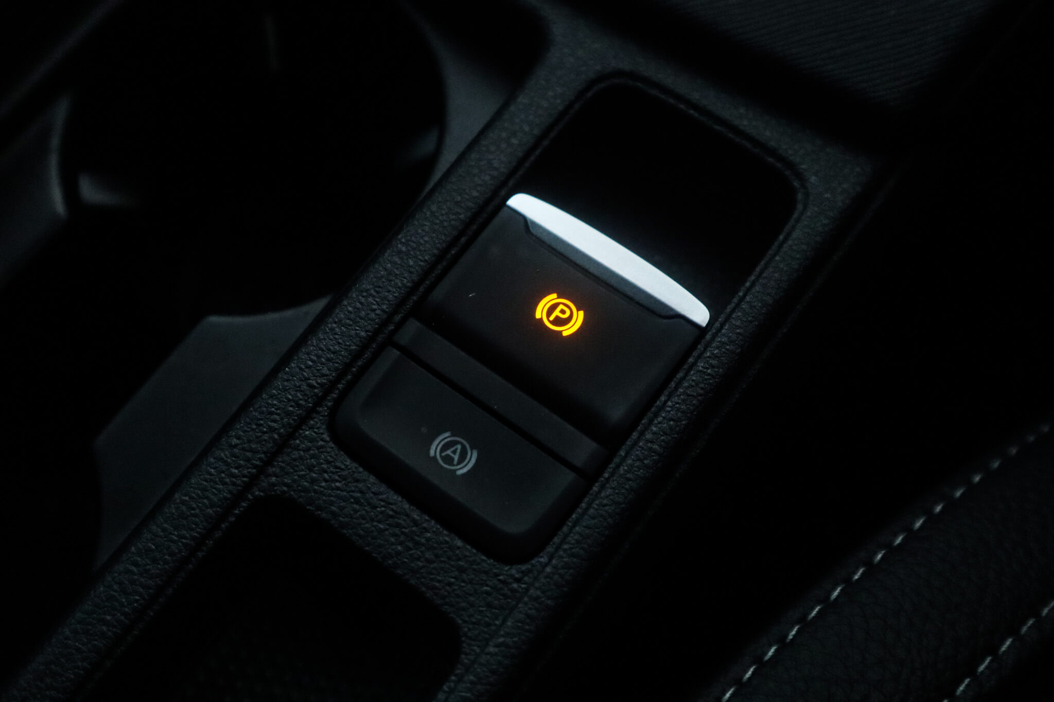 "Manual leather parking brake",