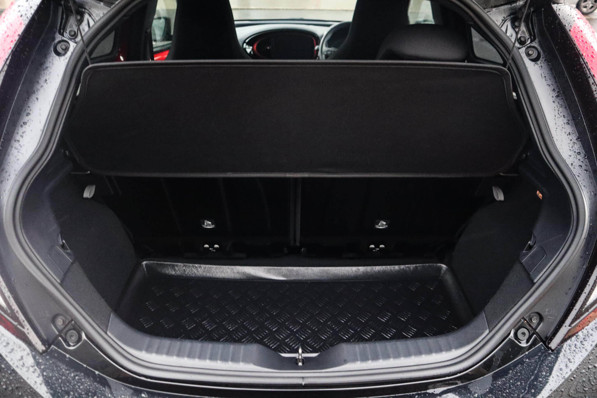 "Net package and top tether hooks in boot space",