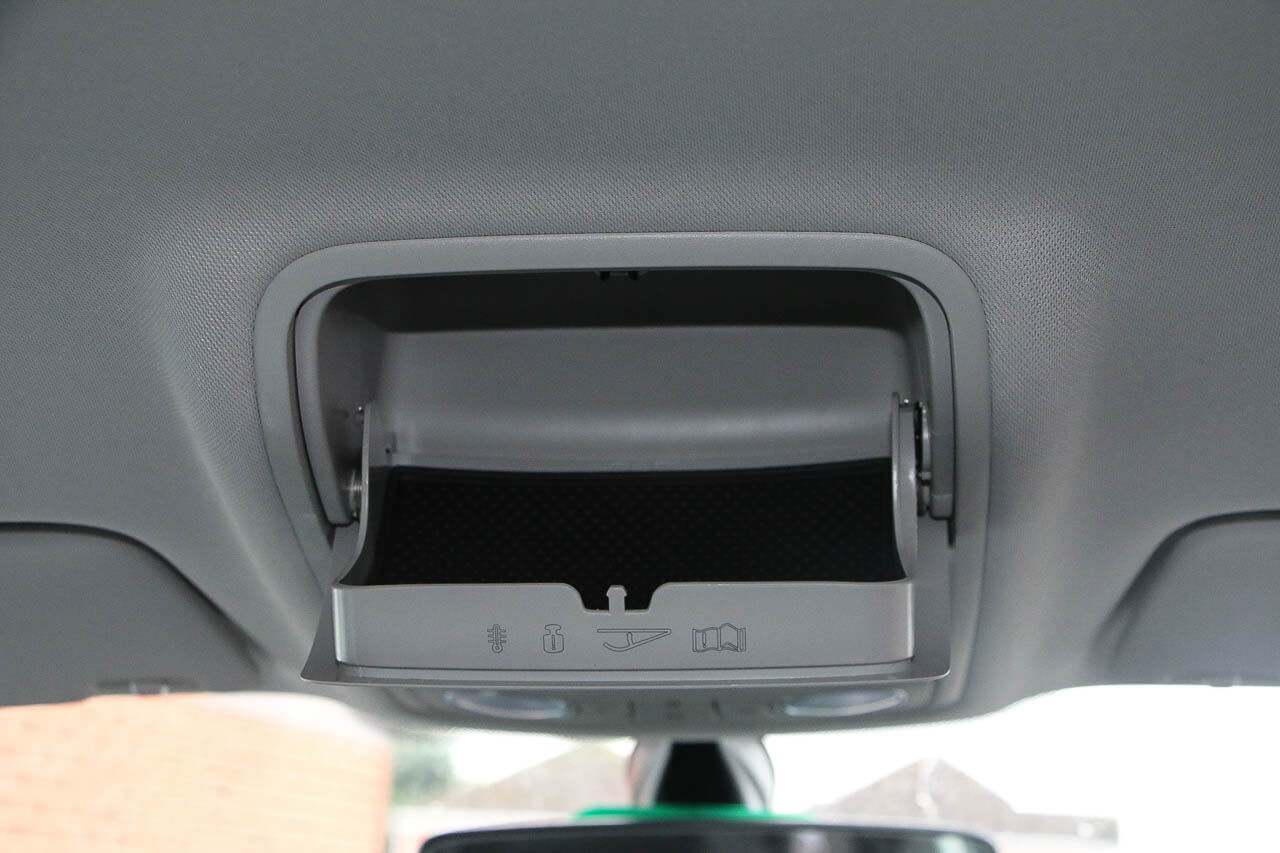 "Overhead glasses storage compartment",
