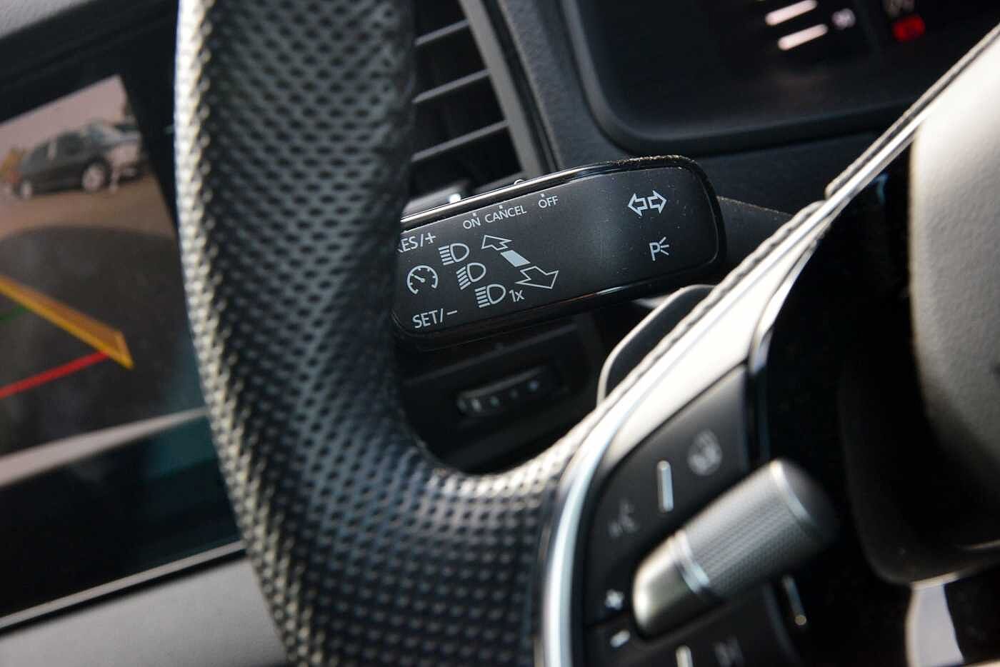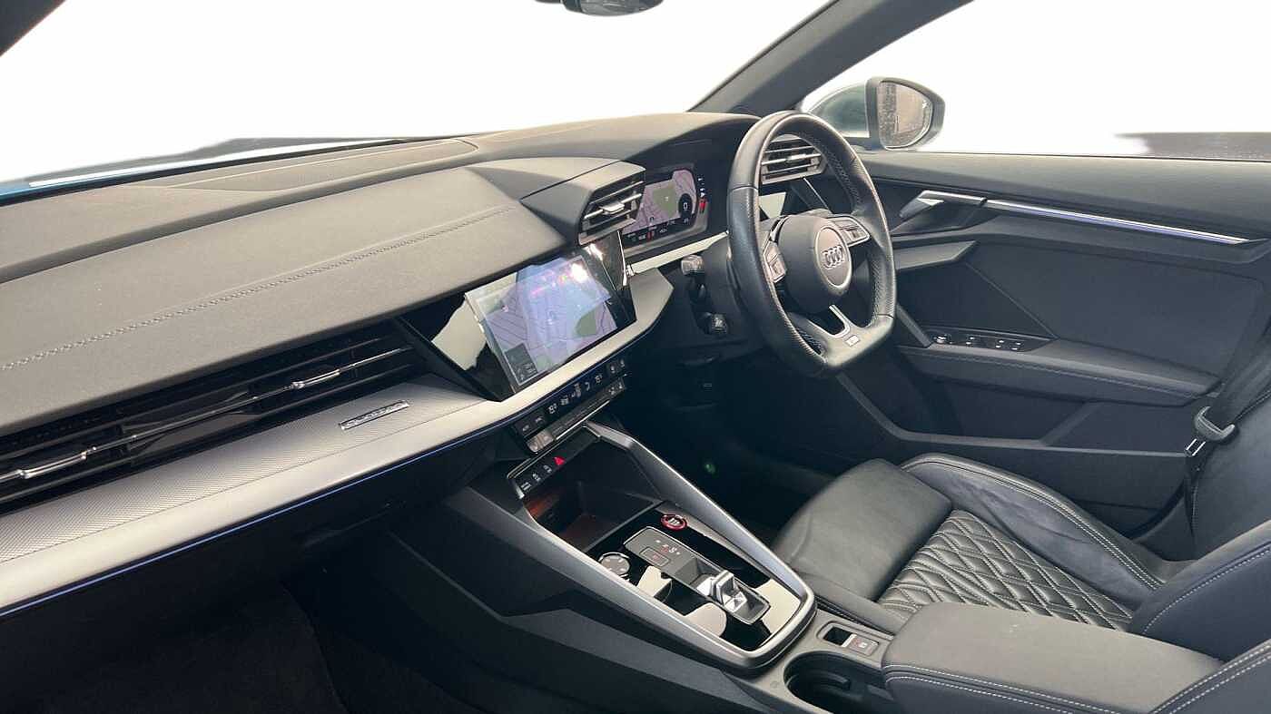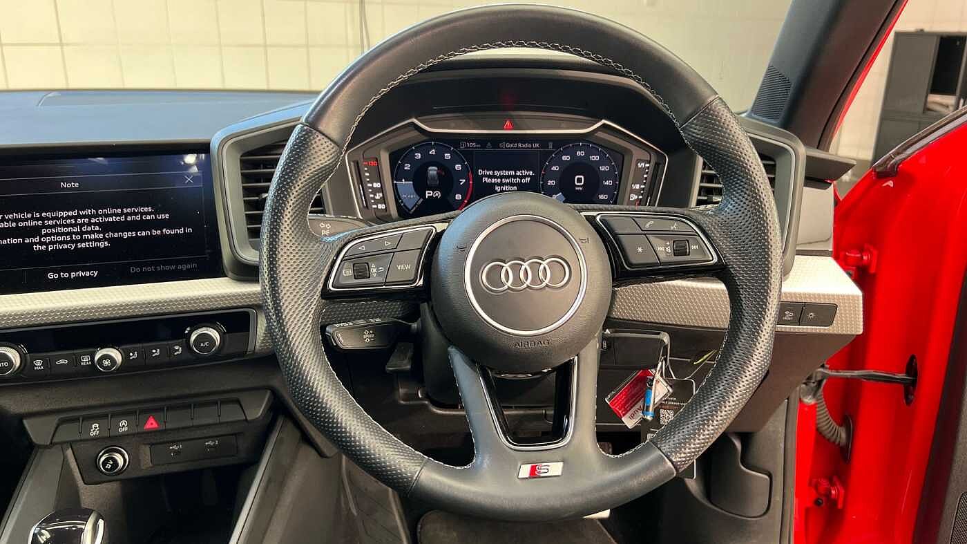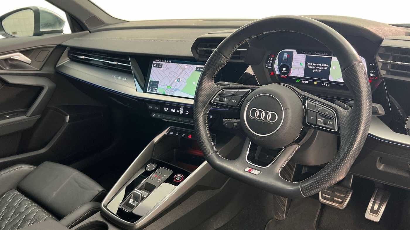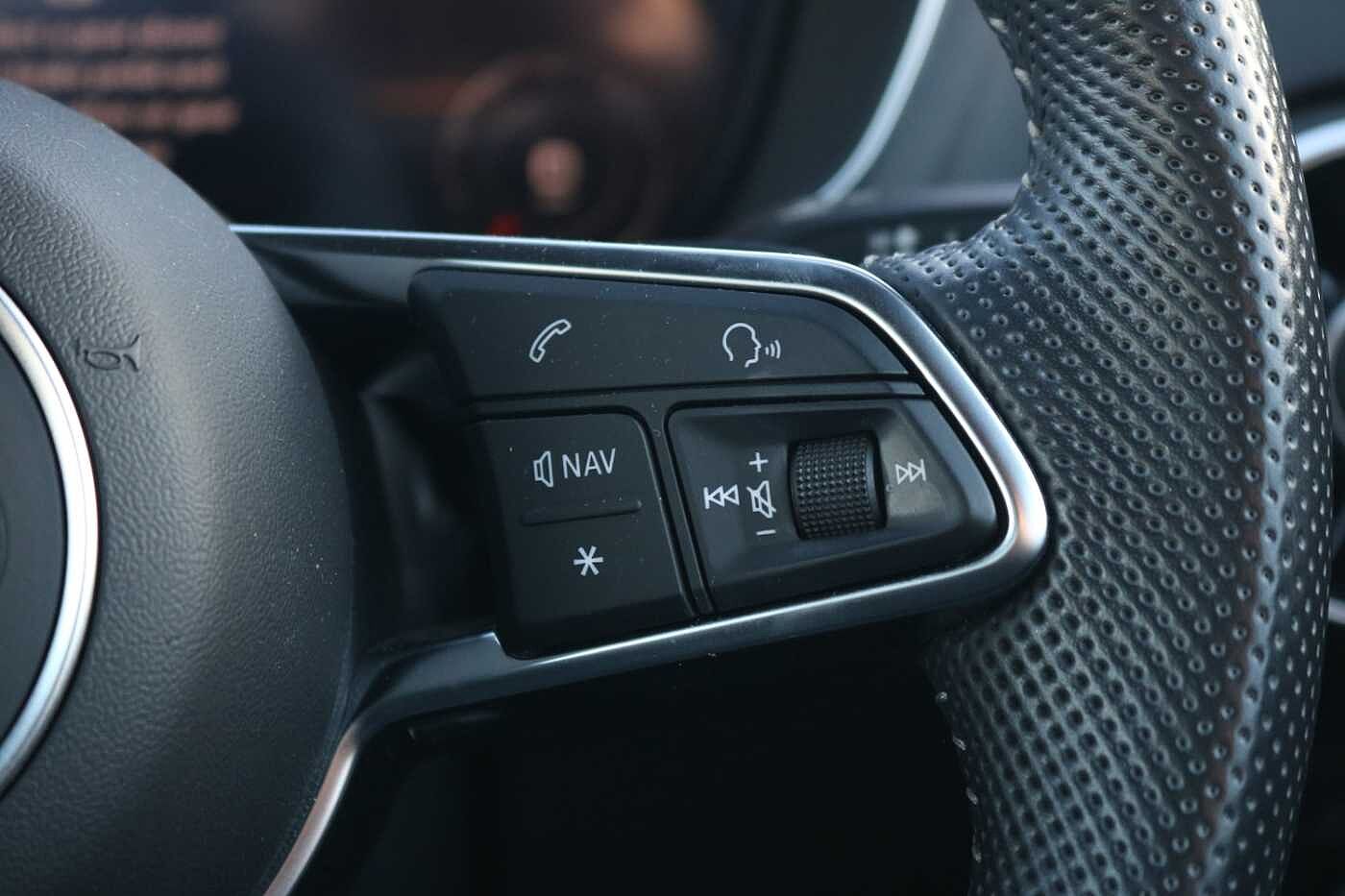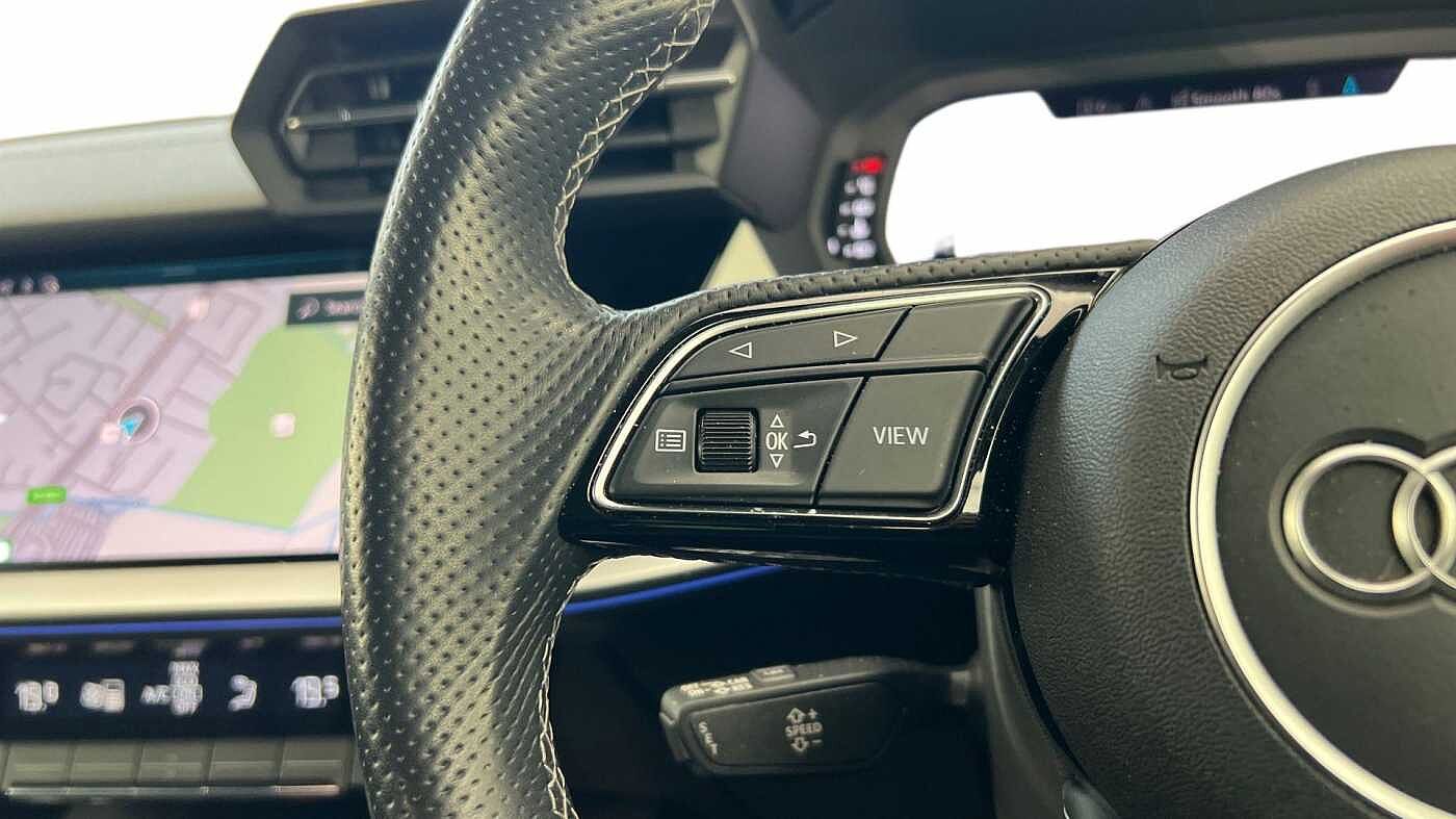 "3 spoke leather multifunction steering wheel with S badging perforated leather grips",