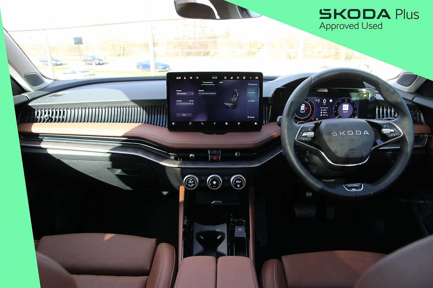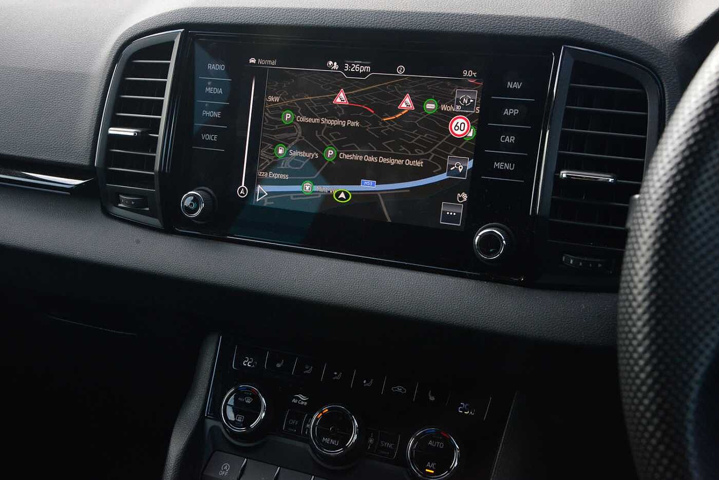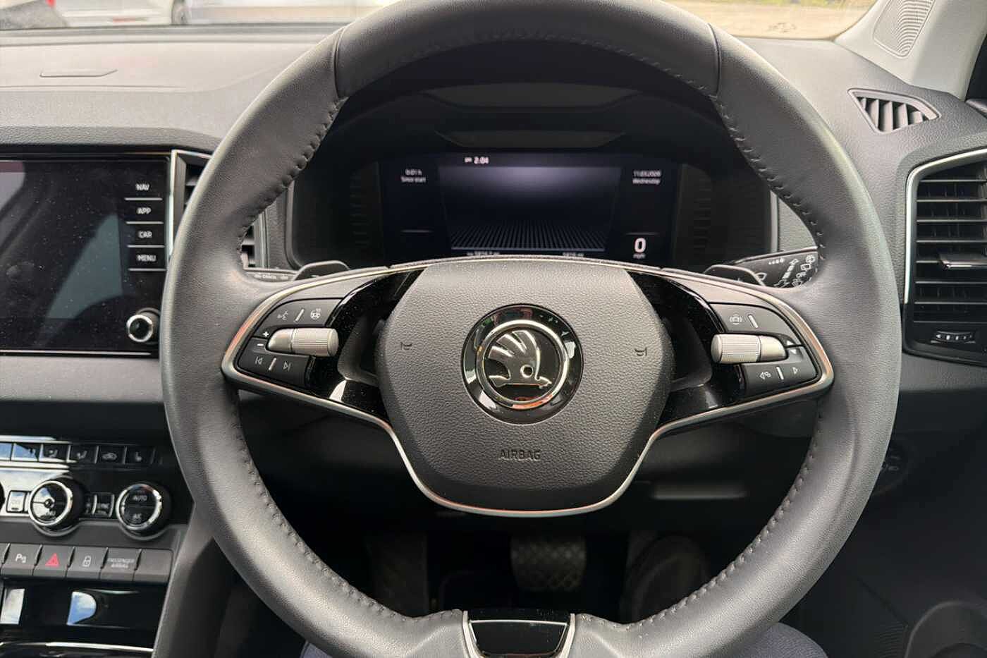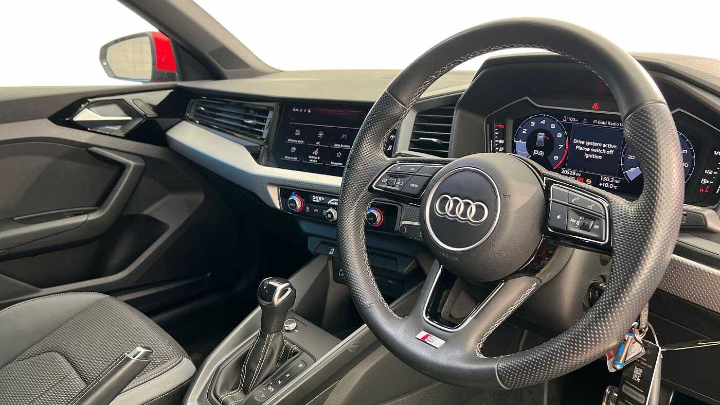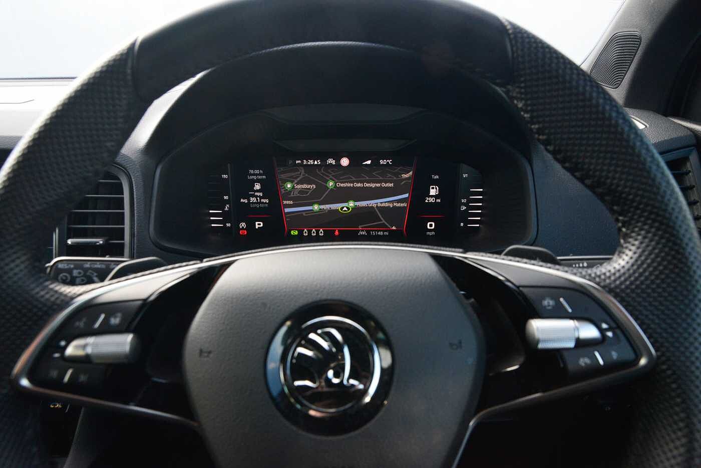 "3 spoke leather multifunction steering wheel with S badging perforated leather grips",