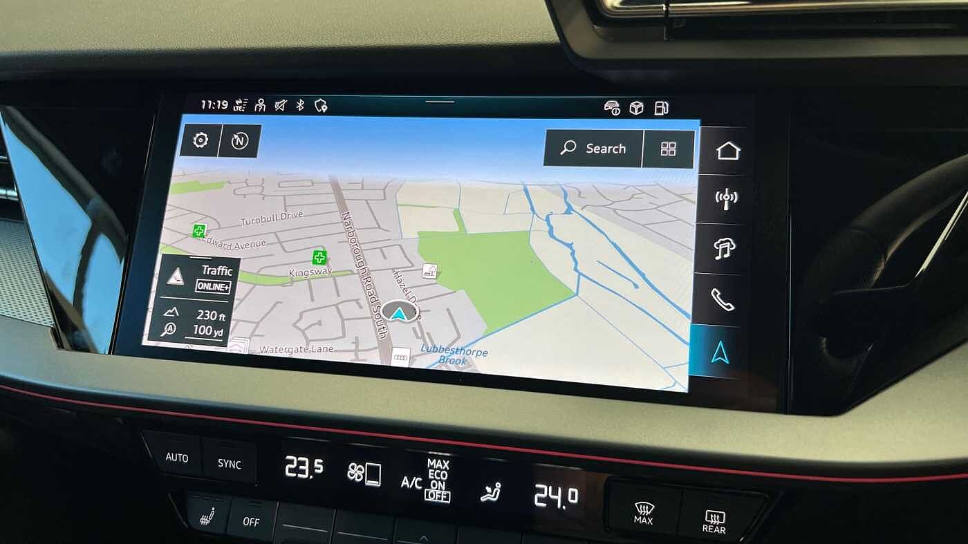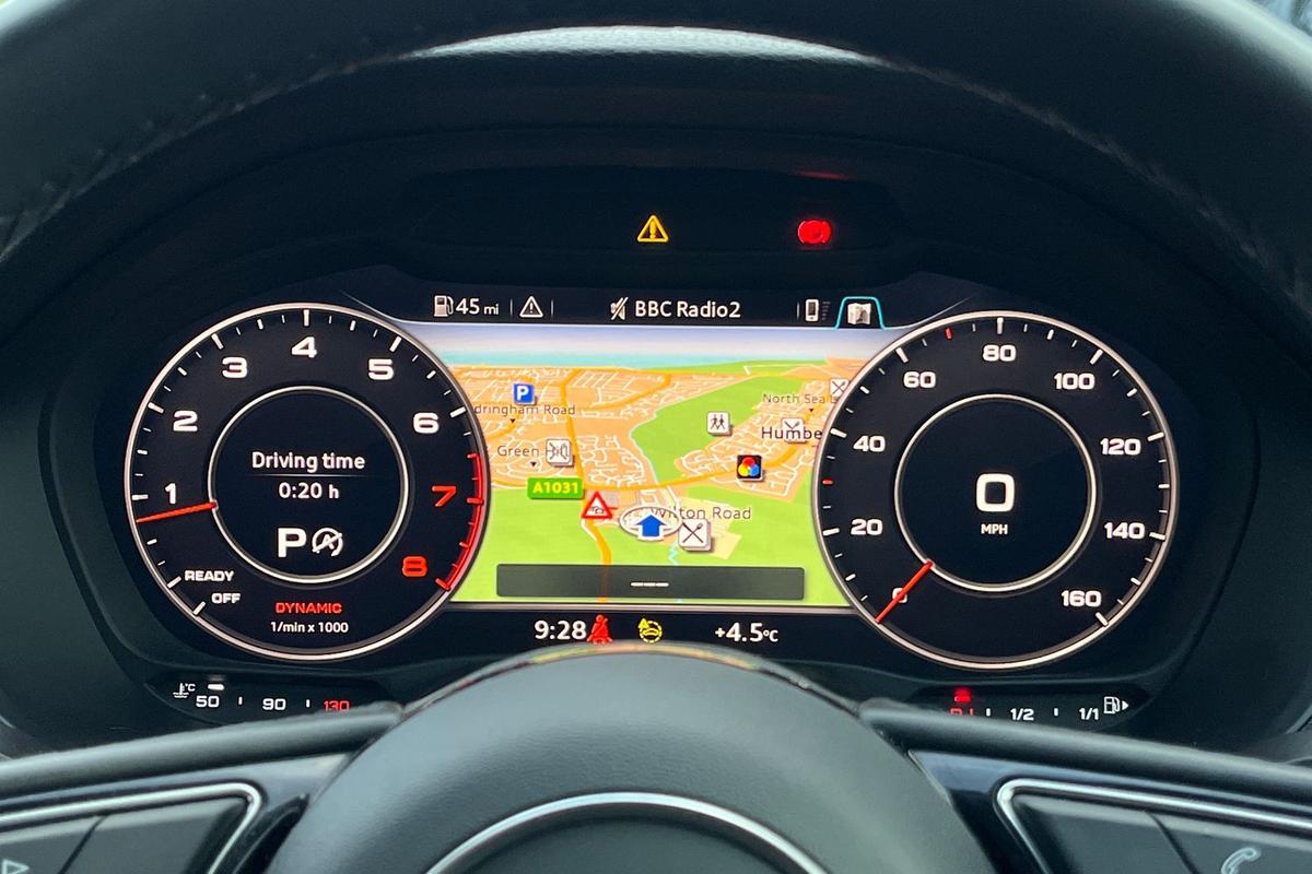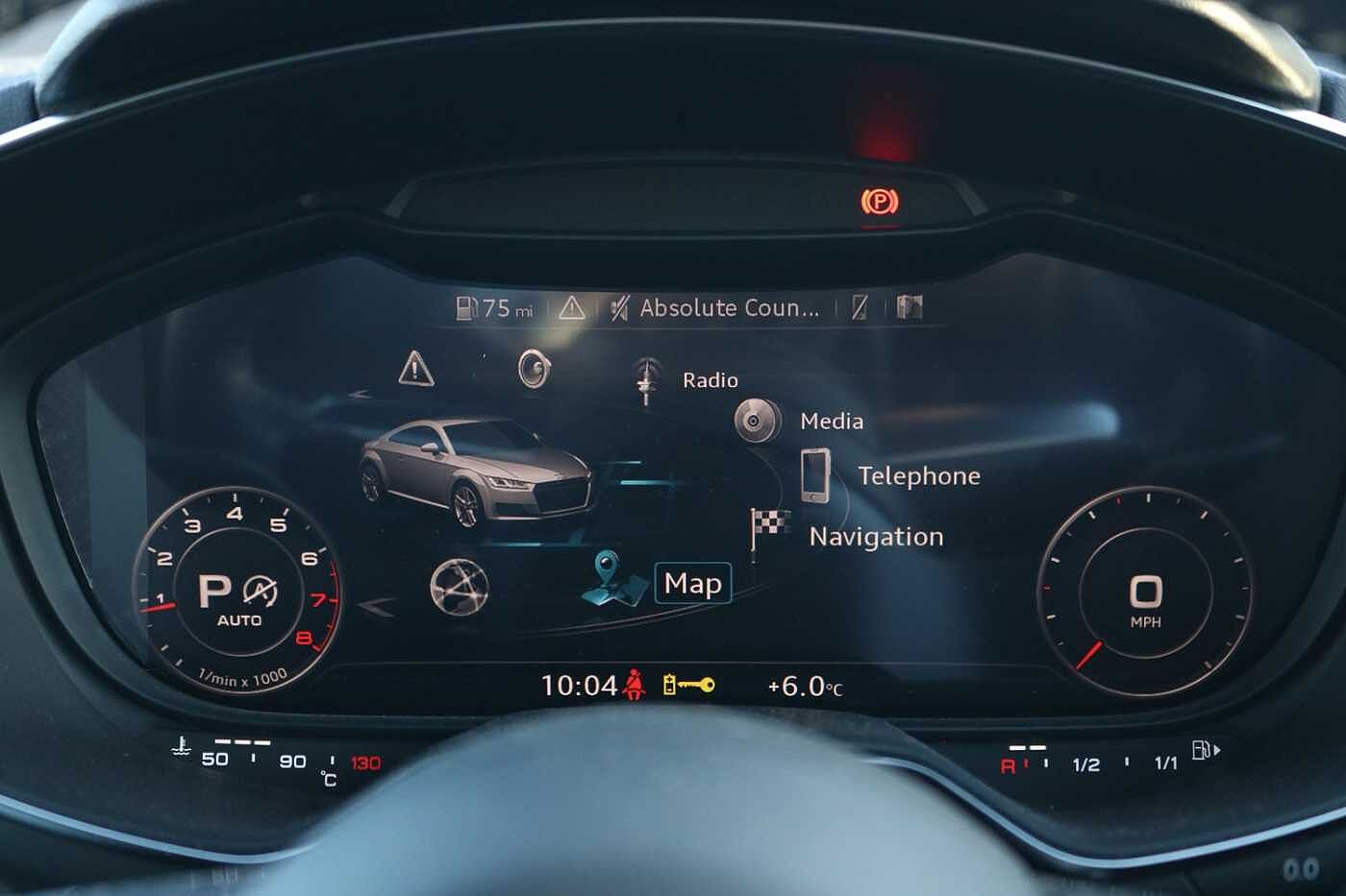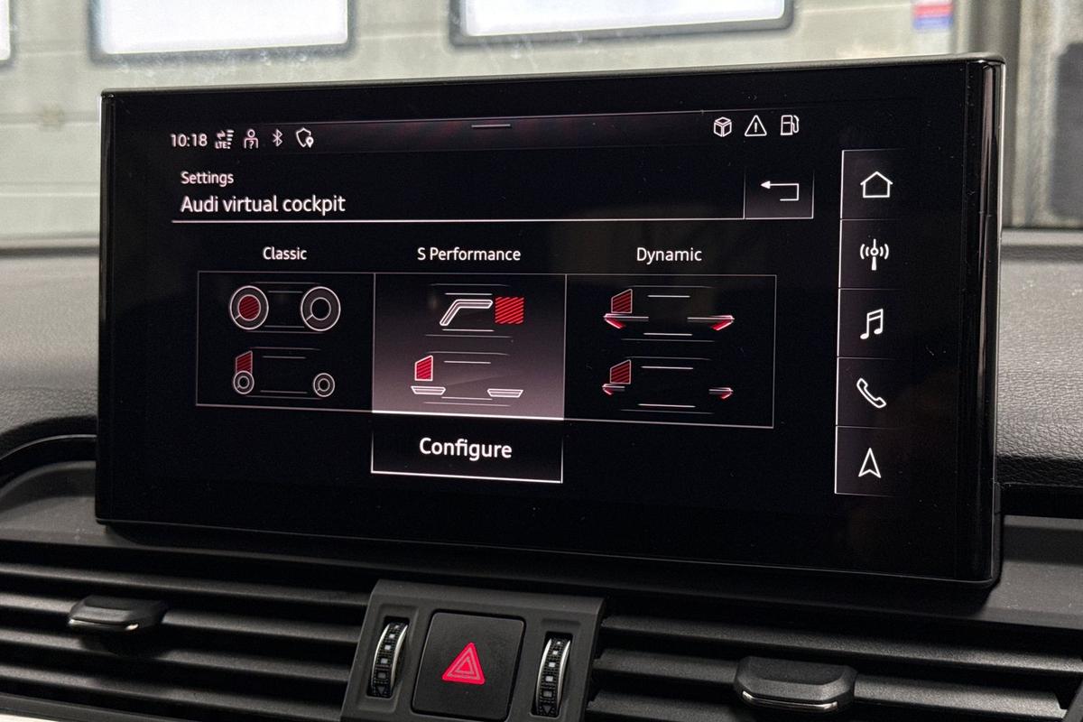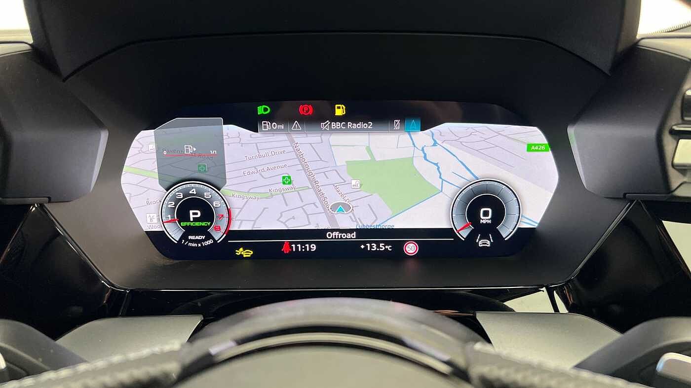 "Audi virtual cockpit plus with 12.3\" screen and three different layout designs",