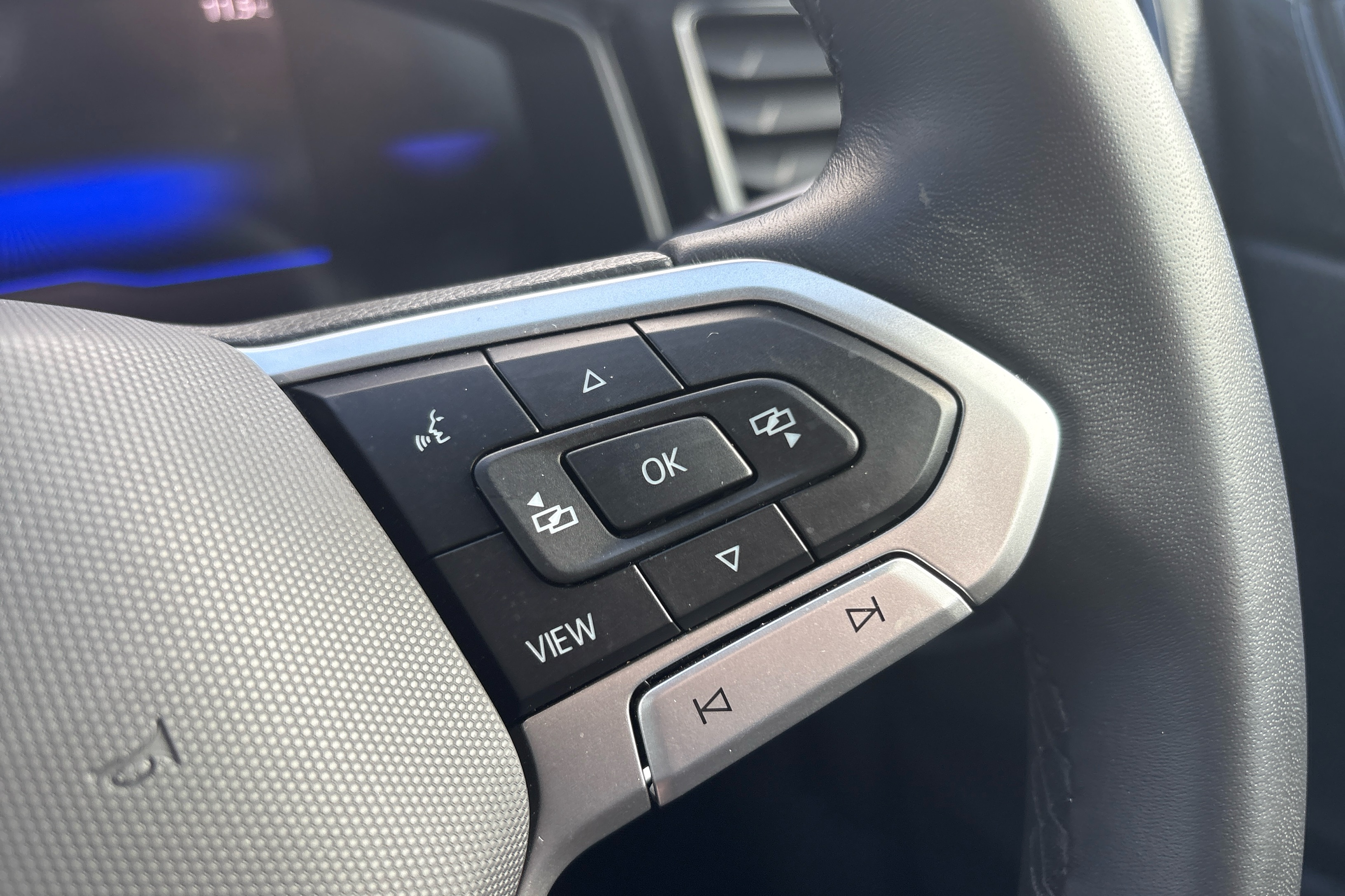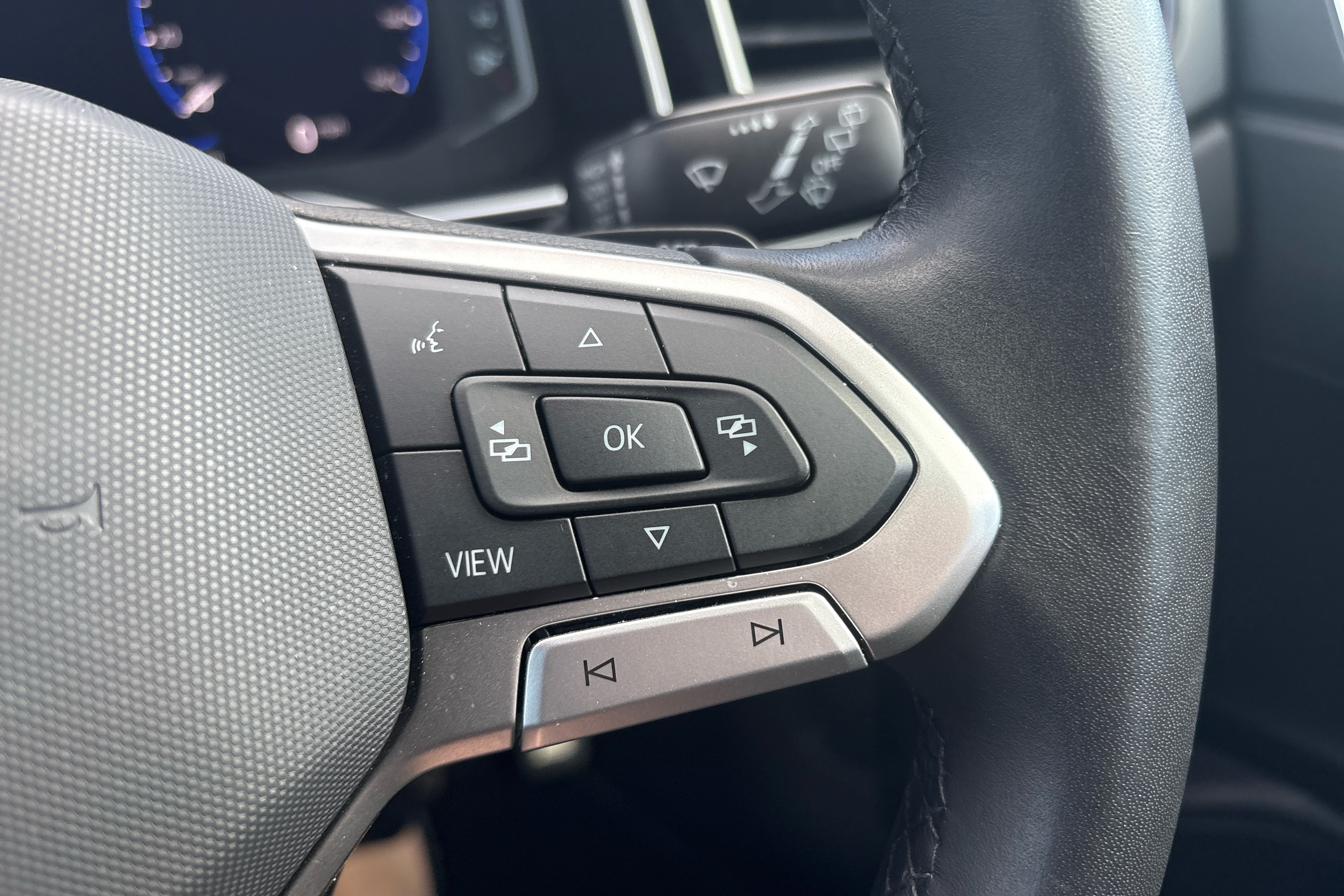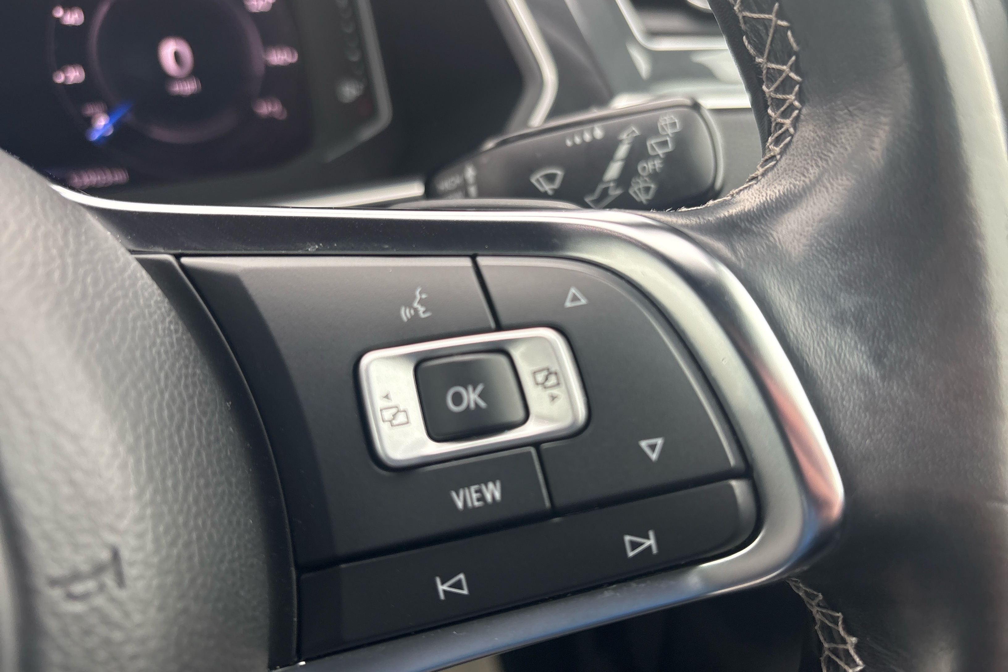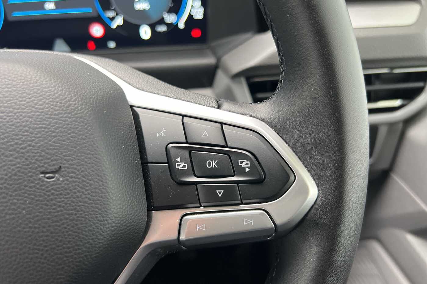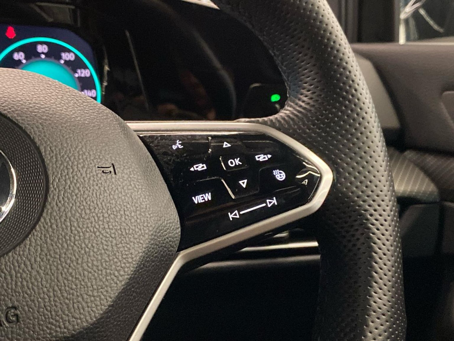 "R-Line leather wrapped multi function sports heated steering wheel",