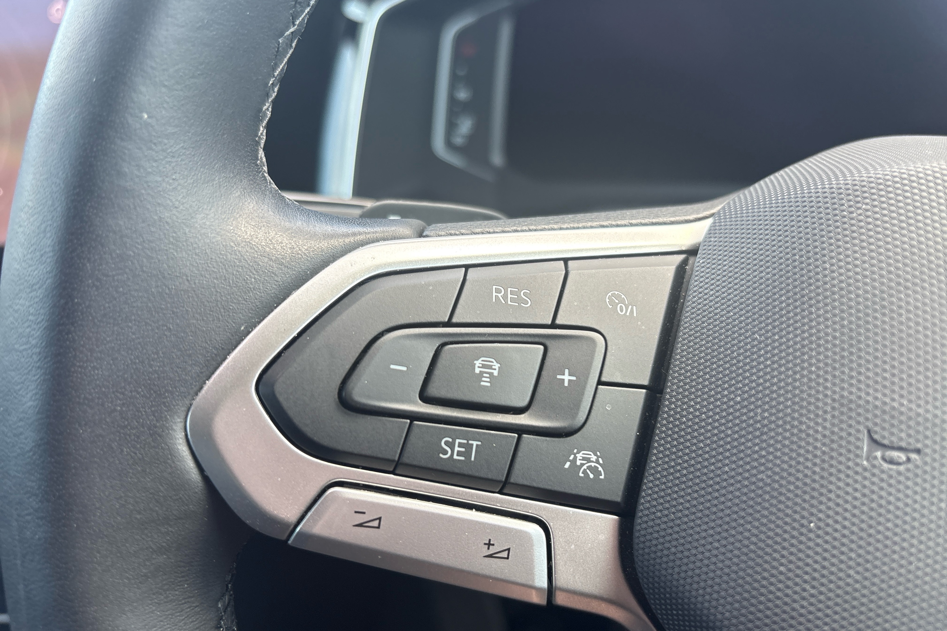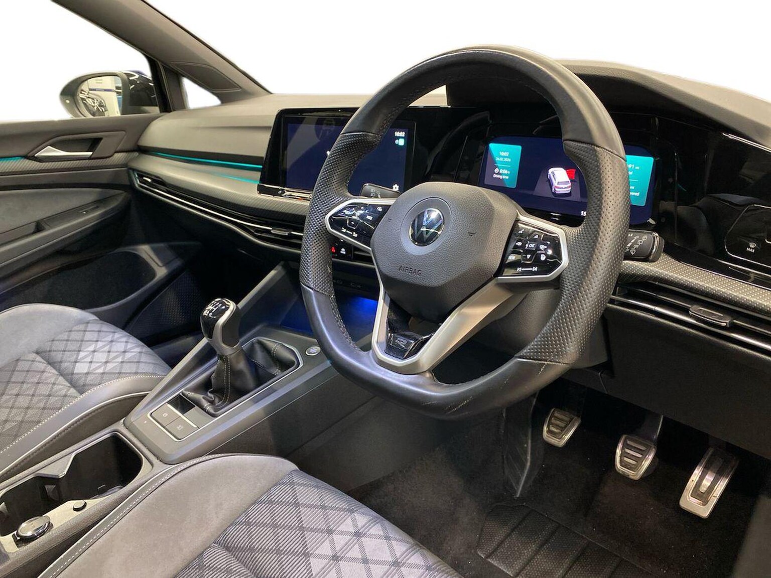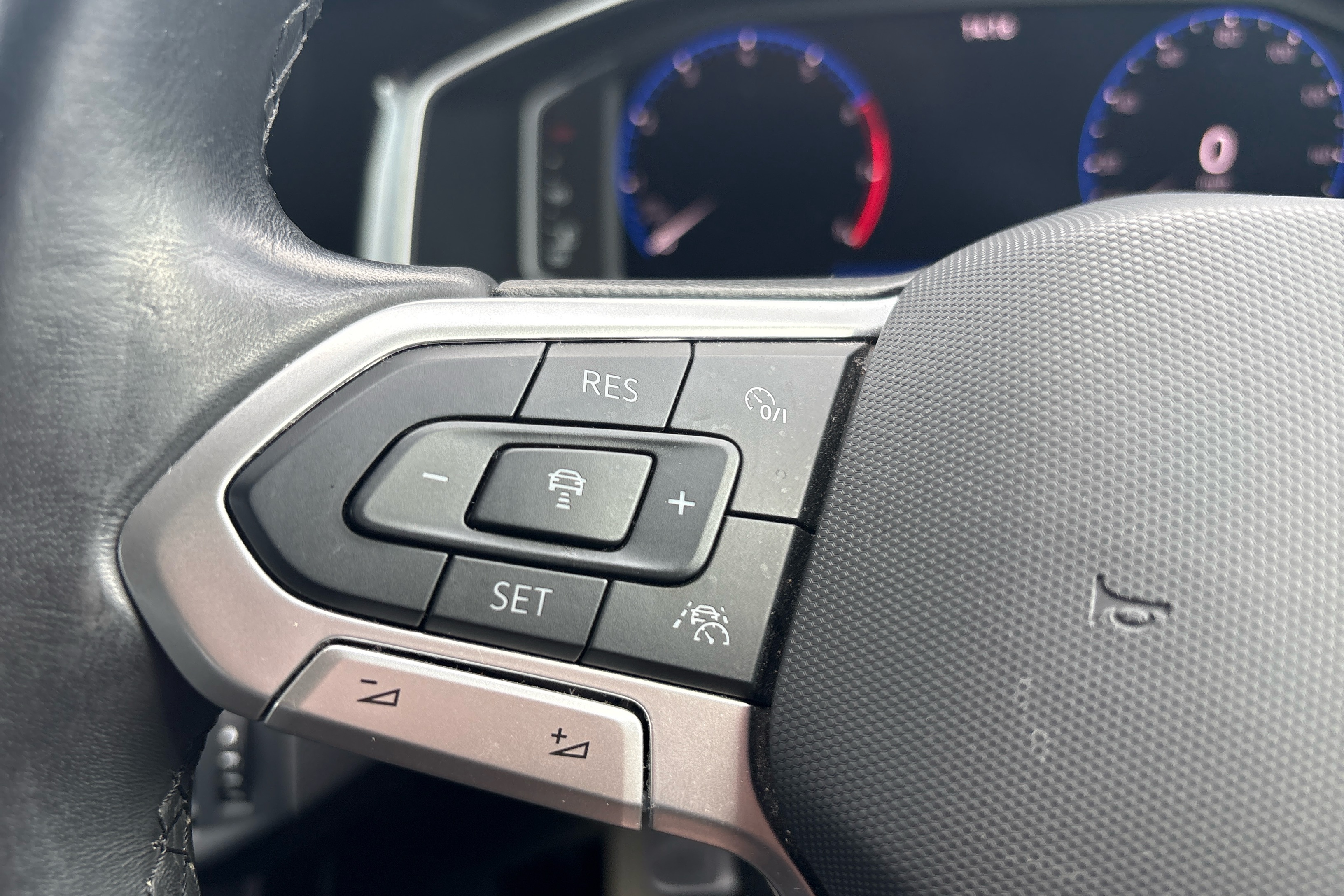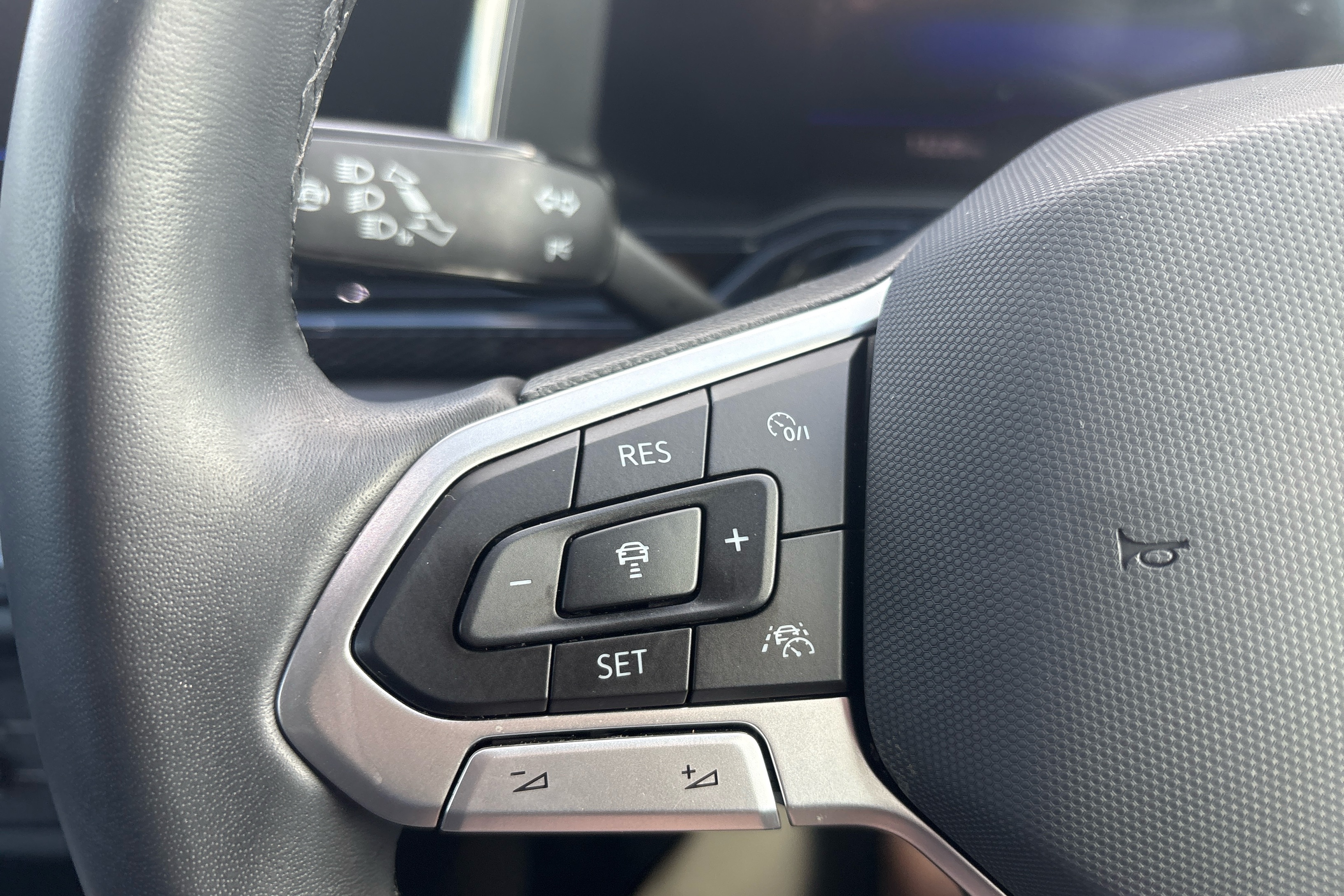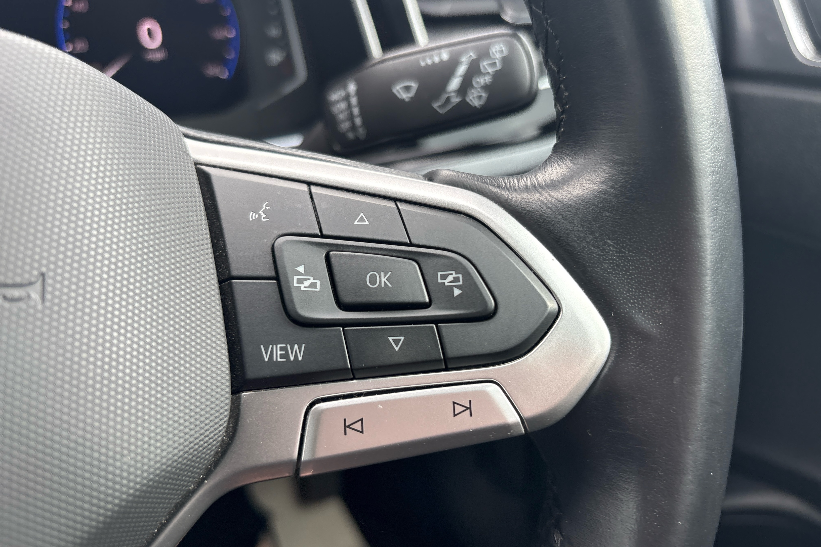 "R-Line leather wrapped multi function sports heated steering wheel",