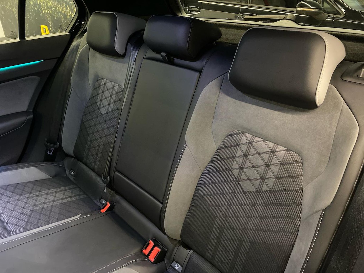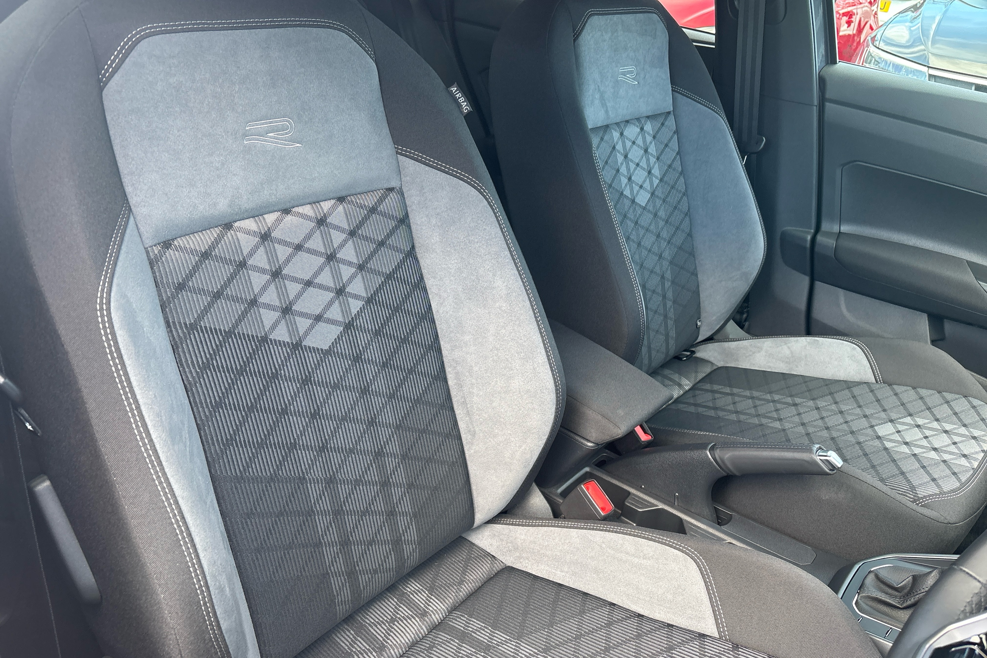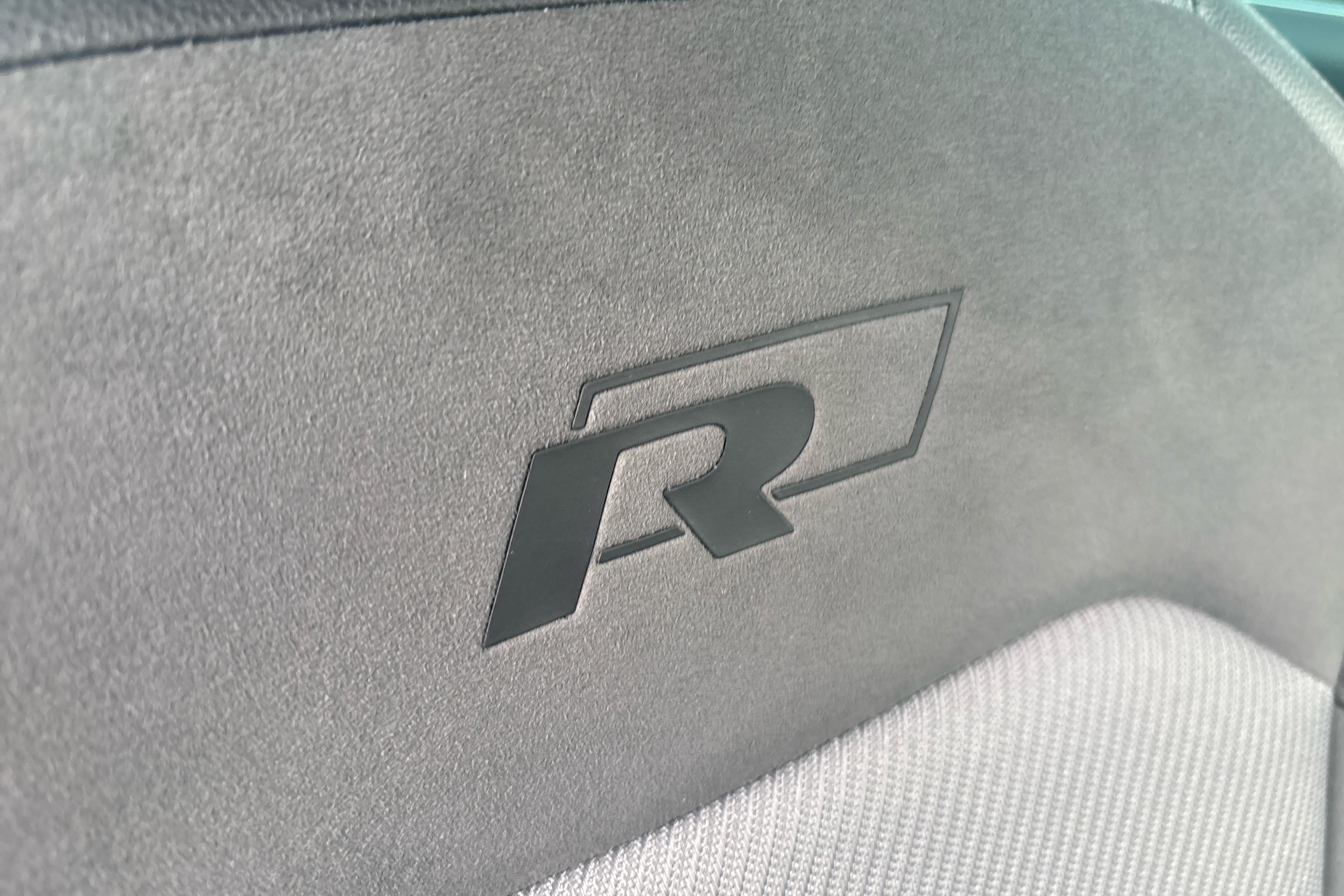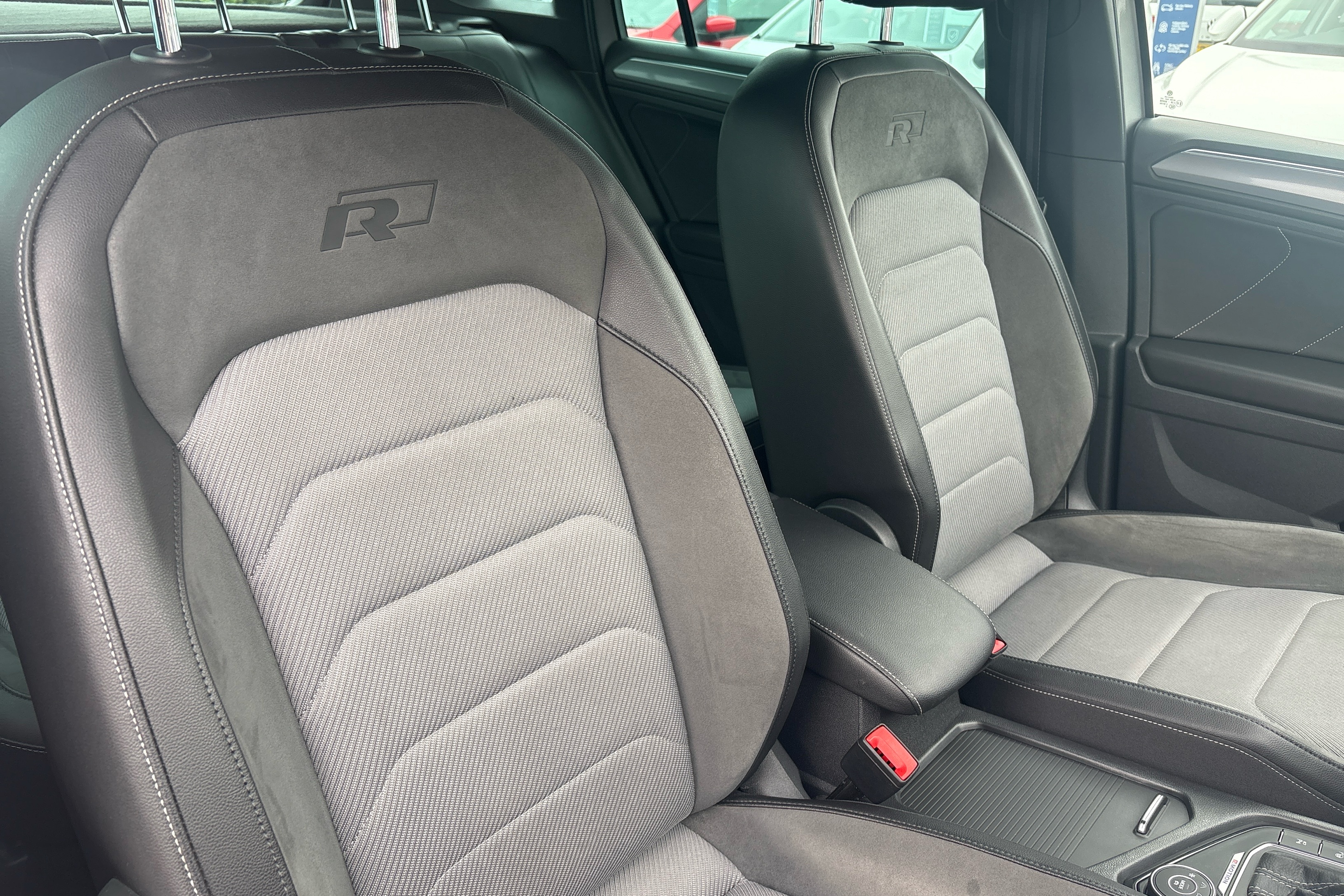 "R Line front seats integrated head restraints",