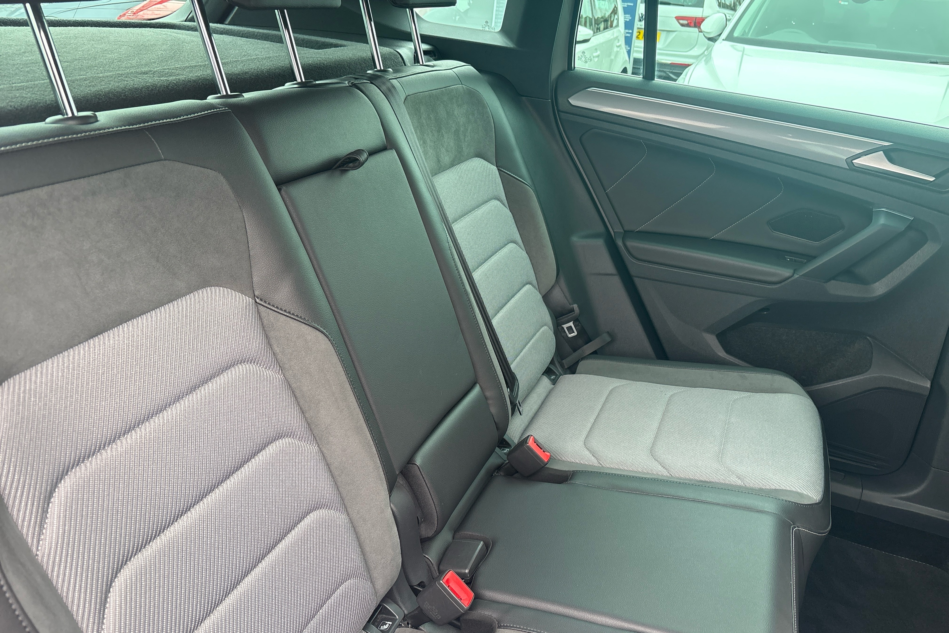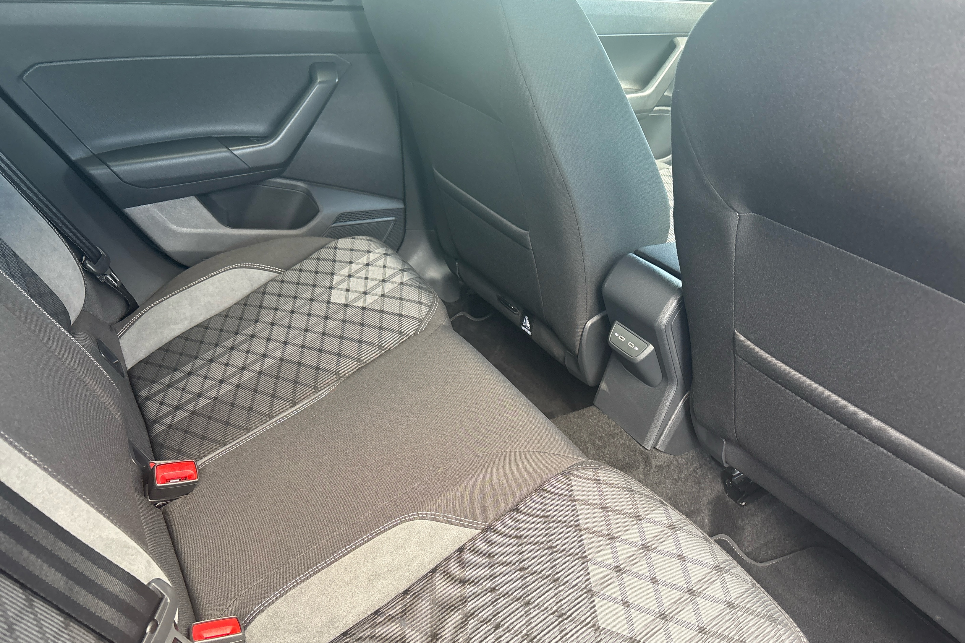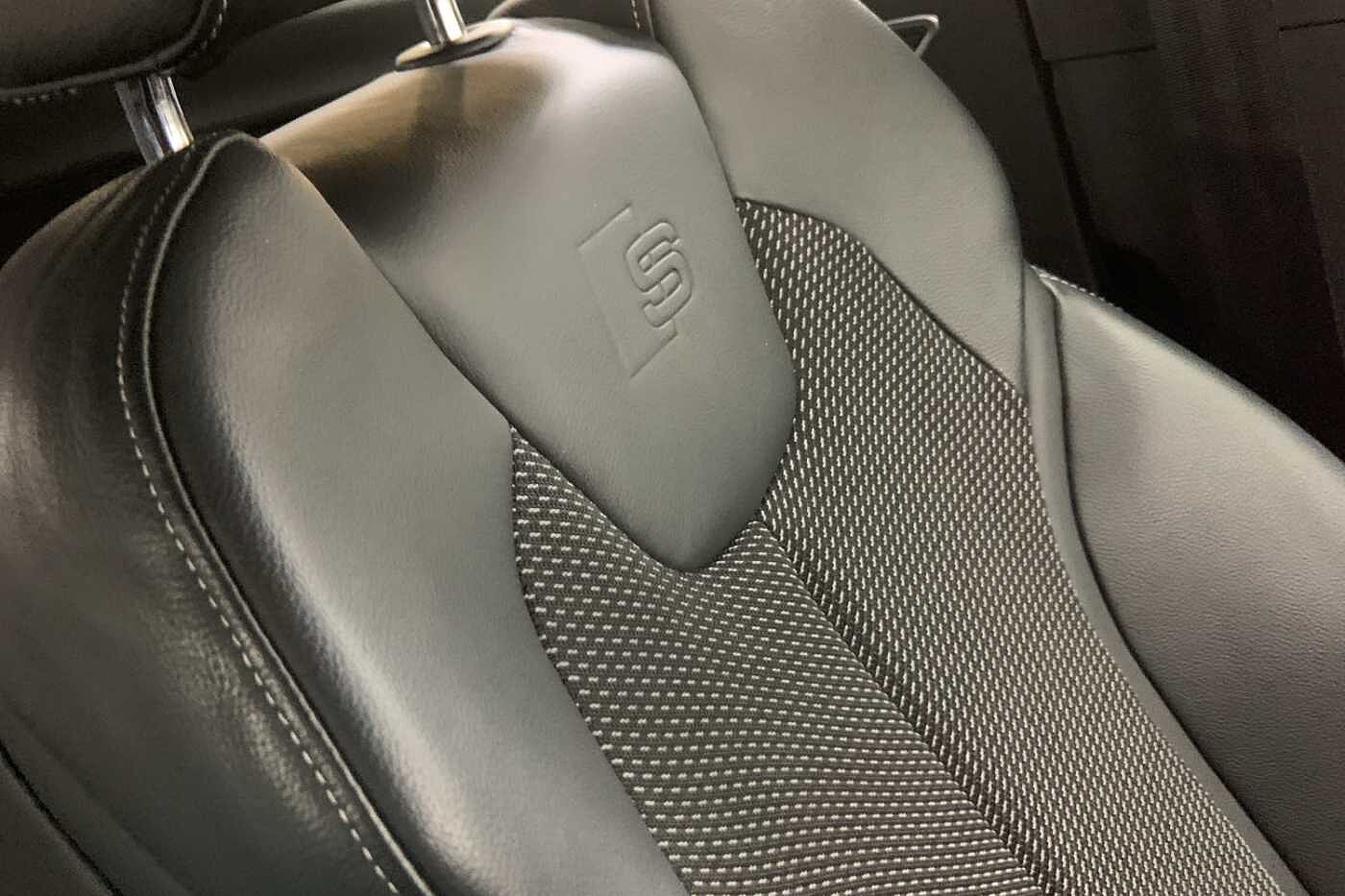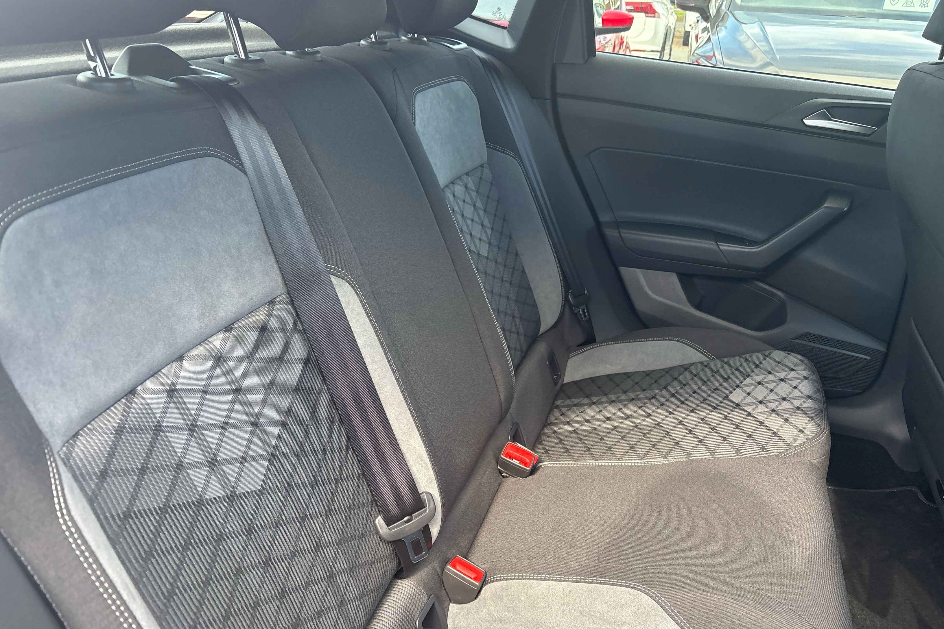 "R Line front seats integrated head restraints",