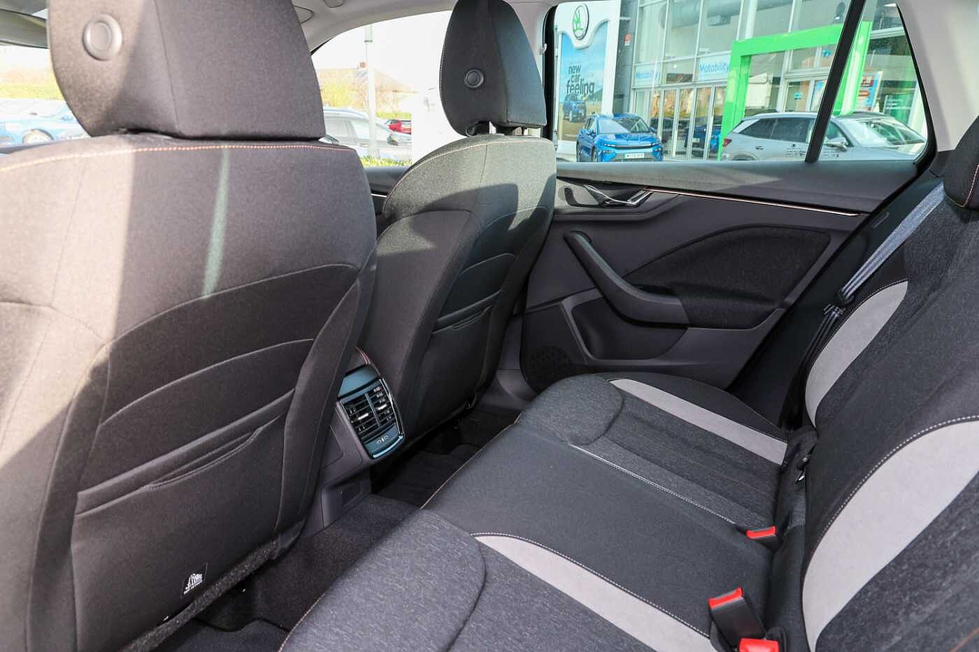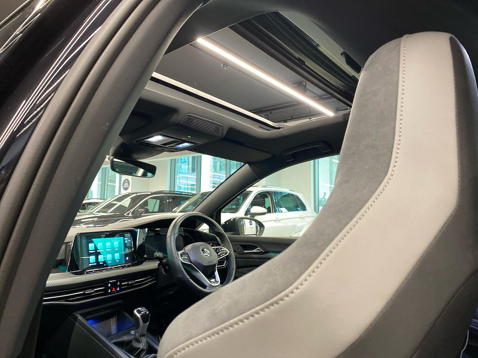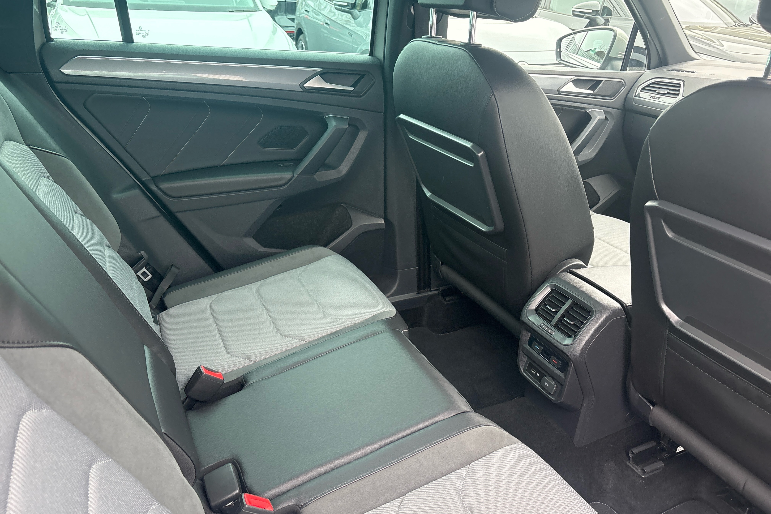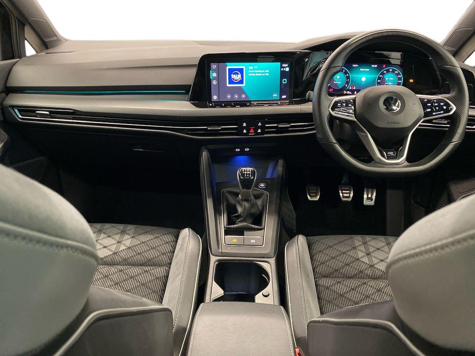 "R Line front seats integrated head restraints",