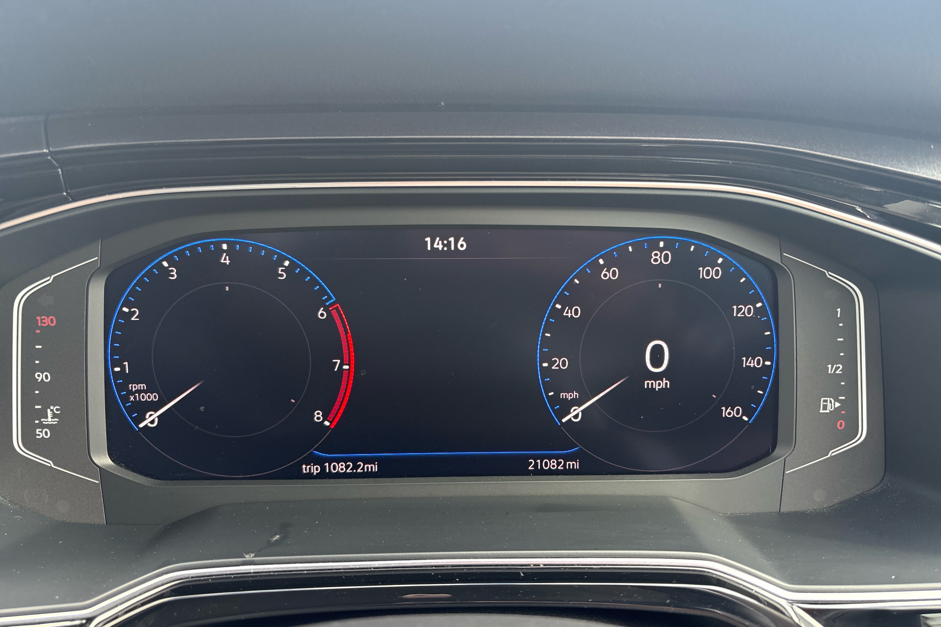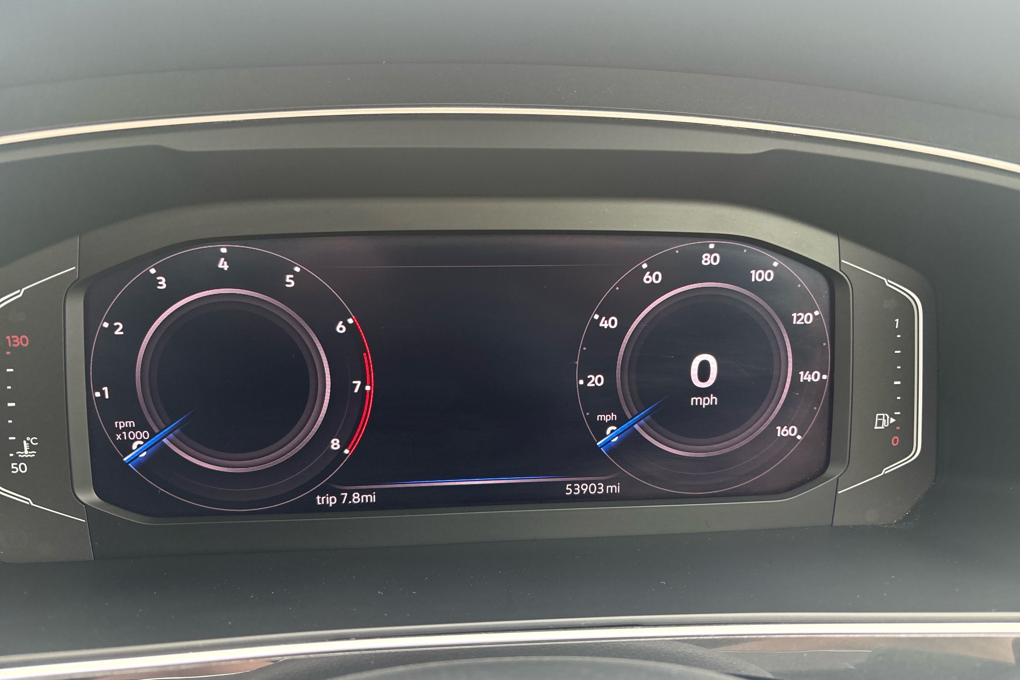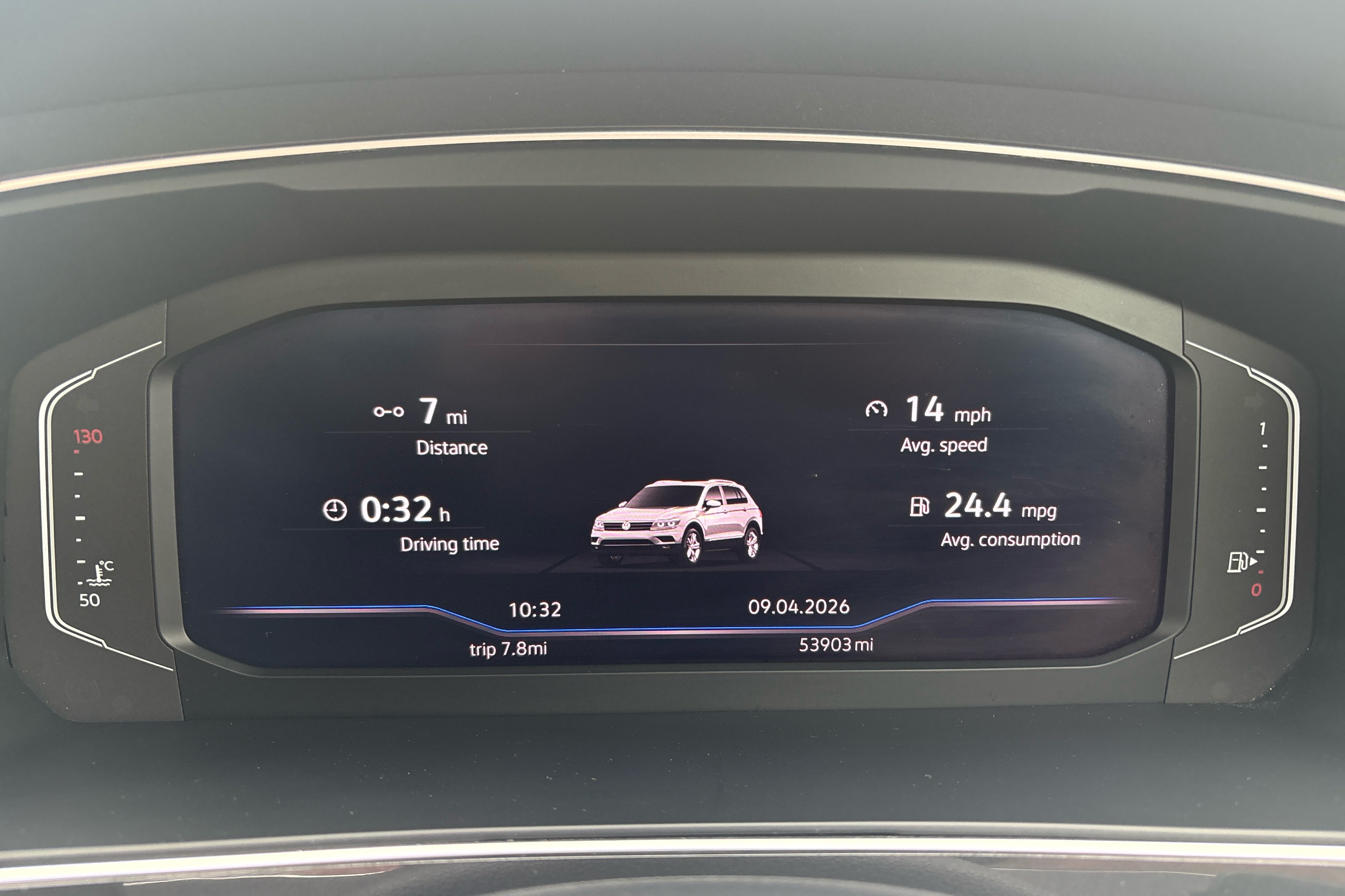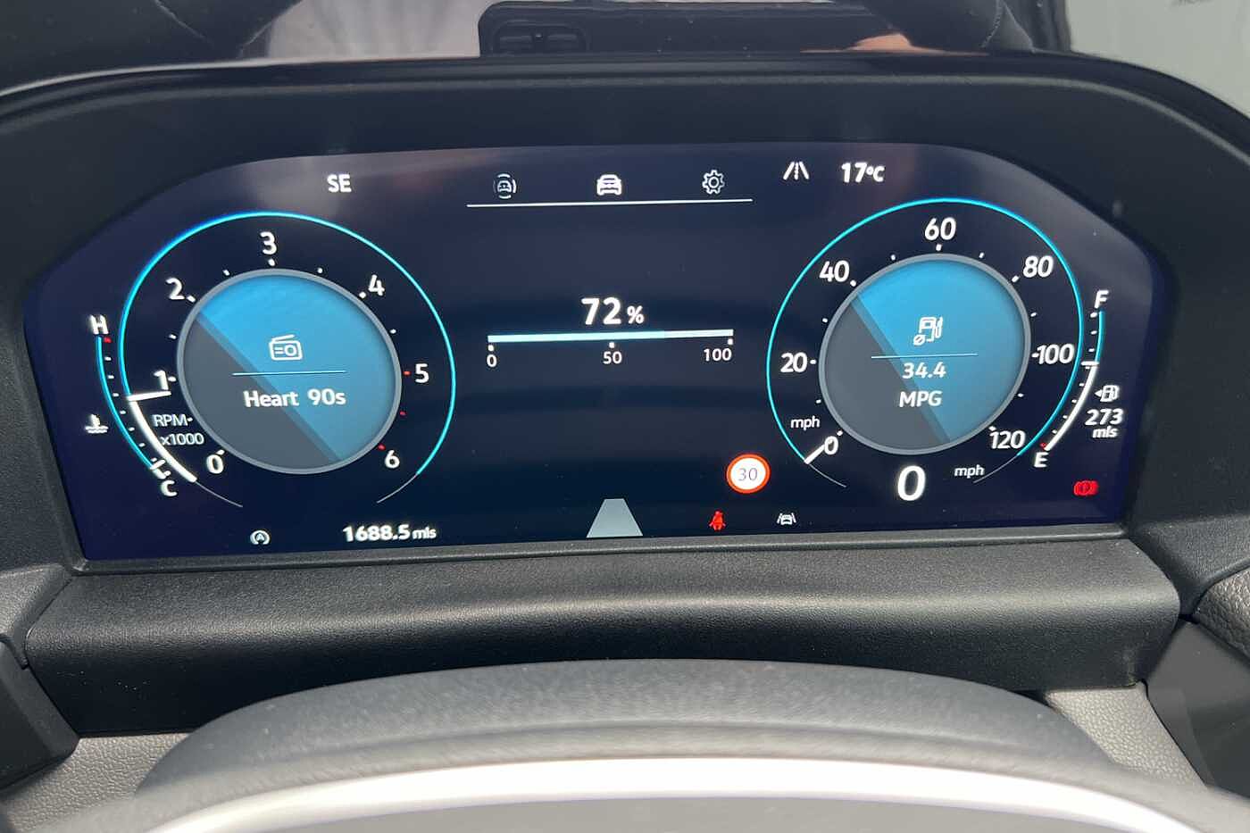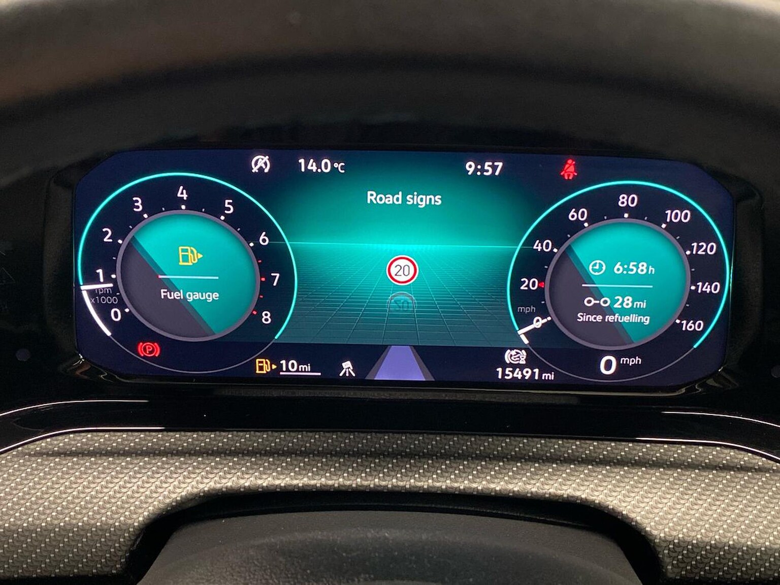 "Speedo, rev counter, electronic odometer, trip, service interval display, exterior temperature and fuel gauge",