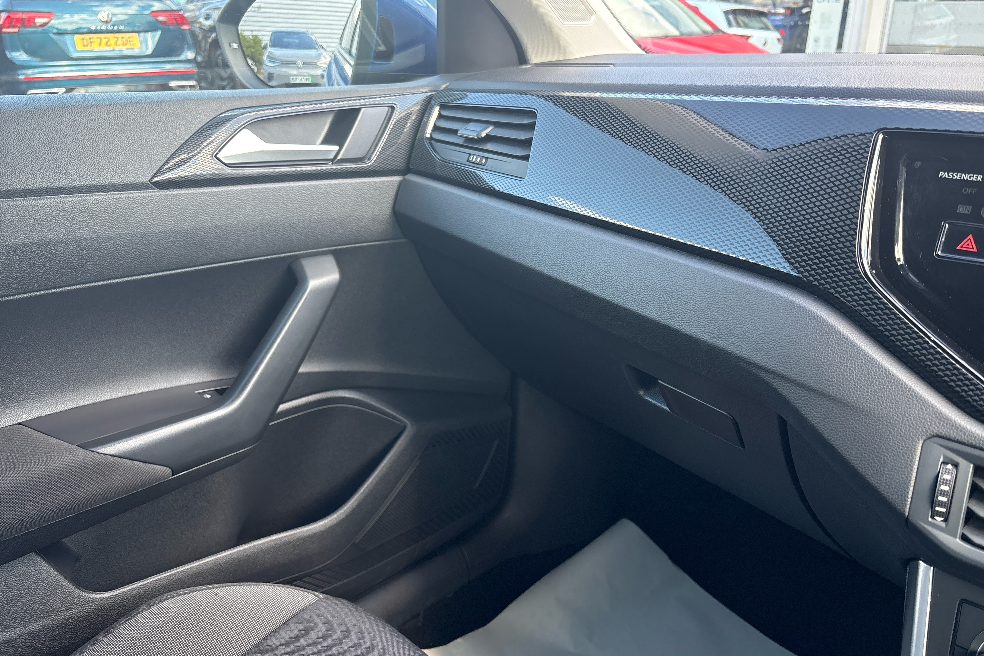 "Carbon grey decorative inserts in dash and front door trim panels",