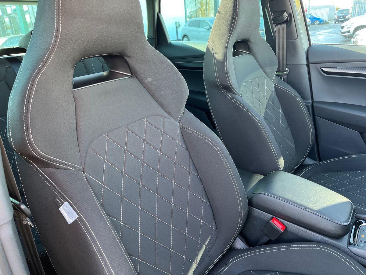 "features": "'Lights On' Reminder warning buzzer, 8\" Digital cockpit, 9.2\" touchscreen navigation system with type C USB socket, Voice control and DAB/AM/FM radio, Auto start and stop system, Bluetooth audio streaming with handsfree system, Digital clock, E-call, Full link smartphone integration with mirror link, wireless apple carplay, Google android auto + USB Type C cable for apple and android devices, Lane assist, Low fuel warning light, Outside temperature gauge, Power Steering, Seat connect with safety, service, remote and online, SEAT drive profiles and ECO function, SEAT logo boot release, Speed limiter, Trip computer, Sports suspension, Auxiliary input socket, Radio/MP3 player, SD card slot, Steering wheel mounted controls, Anti theft roof antenna, Auto dimming rear view mirror, Automatic rain sensing wipers, Black door mirrors, Body colour bumpers, Body colour door handles, Brilliant black window surrounds, Dark tinted rear windows, Electric adjustable/heated/folding door mirrors, Electric front windows, Electric headlight adjustment, Electric rear windows, Front/rear fog lights, FULL LED automatic headlights with dynamic headlight range control, coming and leaving home, LED daytime running lights, LED tail lights, Rear roof spoiler with FR twin exhausts, Rear side wing doors, Rear wiper, Third brake light, 3 seat bench in 2nd row, 60/40 split folding rear seat, Ambient interior lighting, Chrome detailing and black headlining, Cloth upholstery, Dual zone climate control with combination filter, Front courtesy lights, Front cupholders x 2, Front reading lights, Gear shift indicator, Glovebox, Height adjustable front and rear headrests (five), Height adjustable front seats, Height/reach adjust steering wheel, Illuminated air vent surrounds, Illuminated boot, Instrument lighting with brightness control, Isofix, Leather multifunction flat bottomed sports steering wheel, Passenger sunvisor, Single front passenger seat, Sports seats, Sunvisors with mirror and driver side card holder, 3 point seatbelts on all 3 rear seats, ABS, Active front headrests, Child locks on rear doors, Electronic stability control, Energy recovery system, Front assist forward collision warning and autonomous emergency braking, Front driver and passenger side airbags with curtain airbag and front passenger airbag deactivation, Hill hold control, Multi-Collision braking, Seat belt reminder for front and rear seats, Tiredness recognition system, Tyre pressure monitoring system, Electronic engine immobiliser, Locking wheel bolts, Perimeter alarm and interior monitoring with backup horn and tow away protection, Remote central locking + deadlocks, 17\" Alloy wheels in Brilliant silver, ",