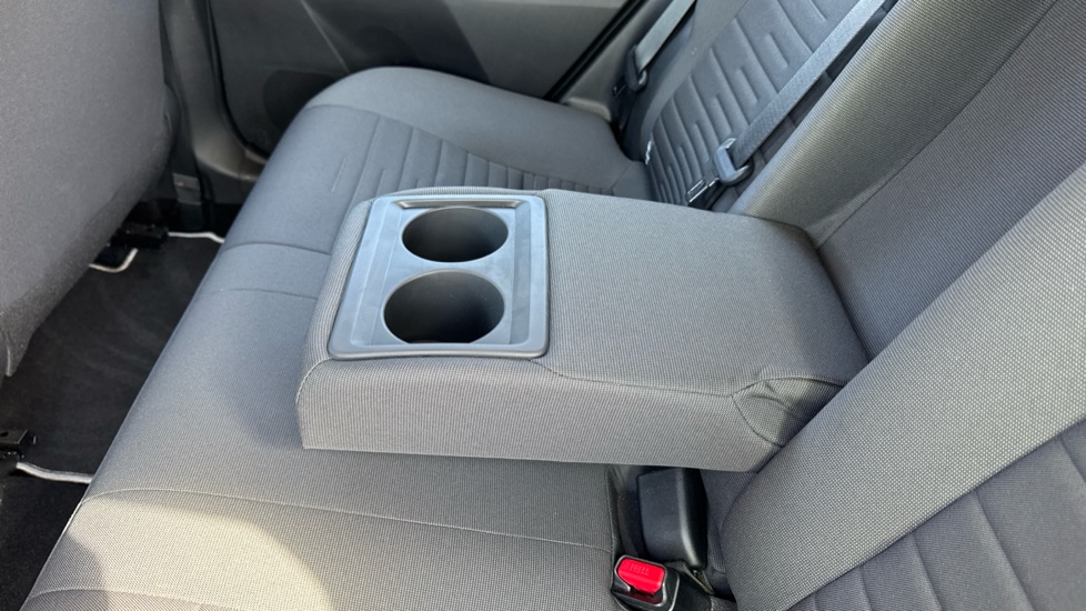 "Load-through provision with cup holder when folded down ('Unsplit rear seat bench, split folding backrest, with centre armrest)",