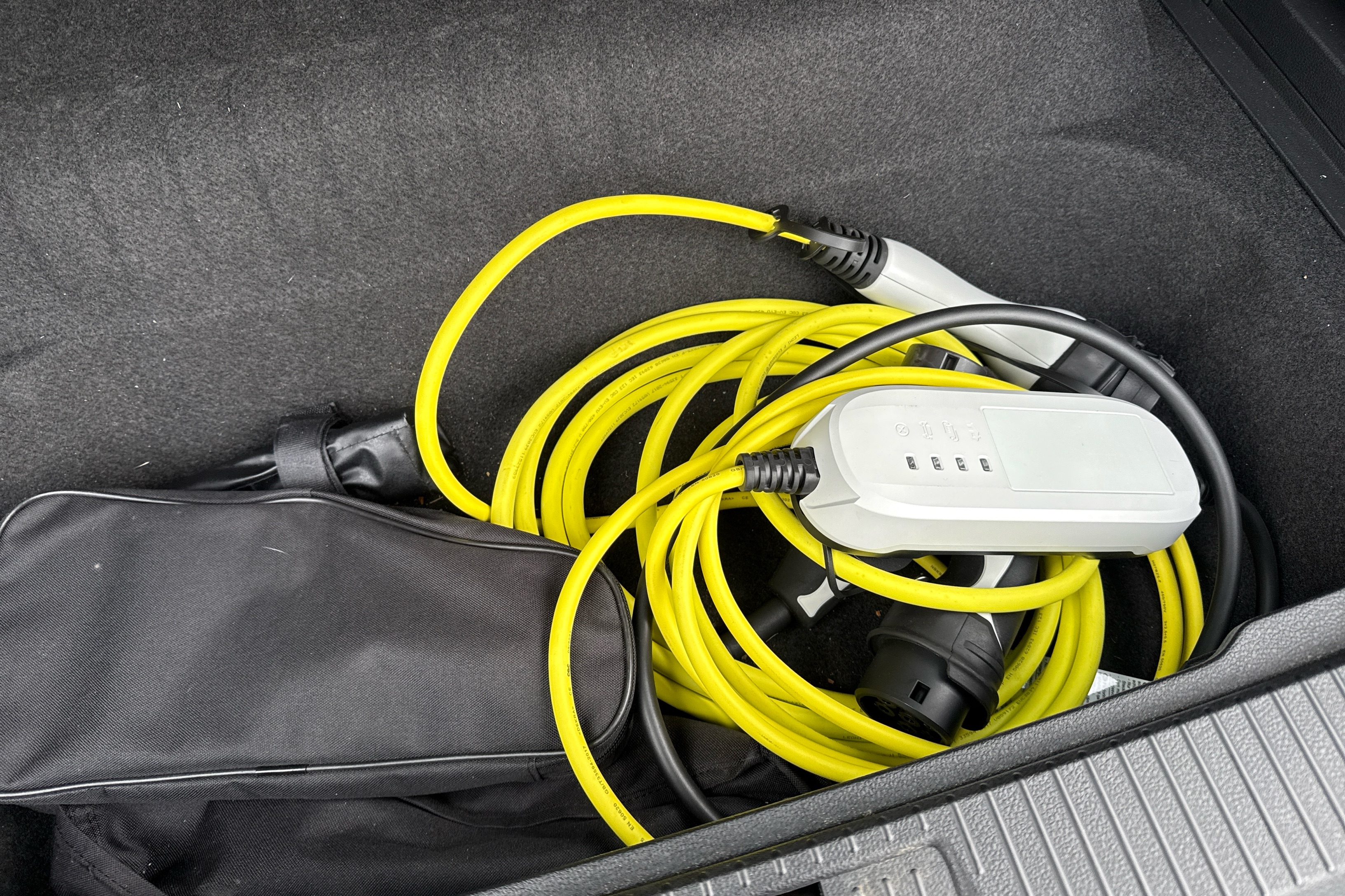 "Two charging cables 16amp for wallbox/chargepoints (mode 3) and 10amp mains charge cable (mode 2)"