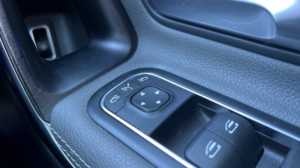 "Remote electrically adjustable and foldable heated door mirrors including automatic dimming function on drivers side door mirror puddle lights",