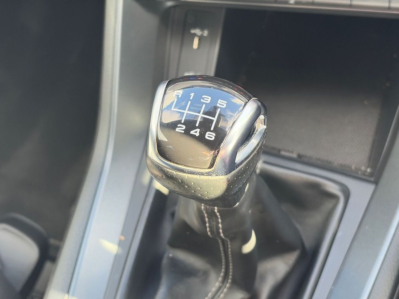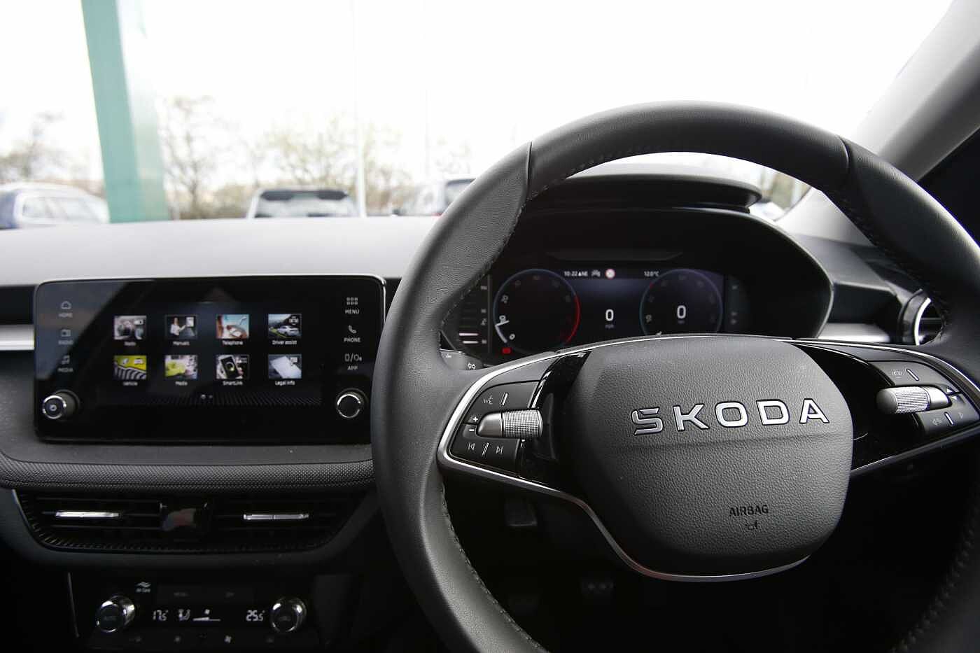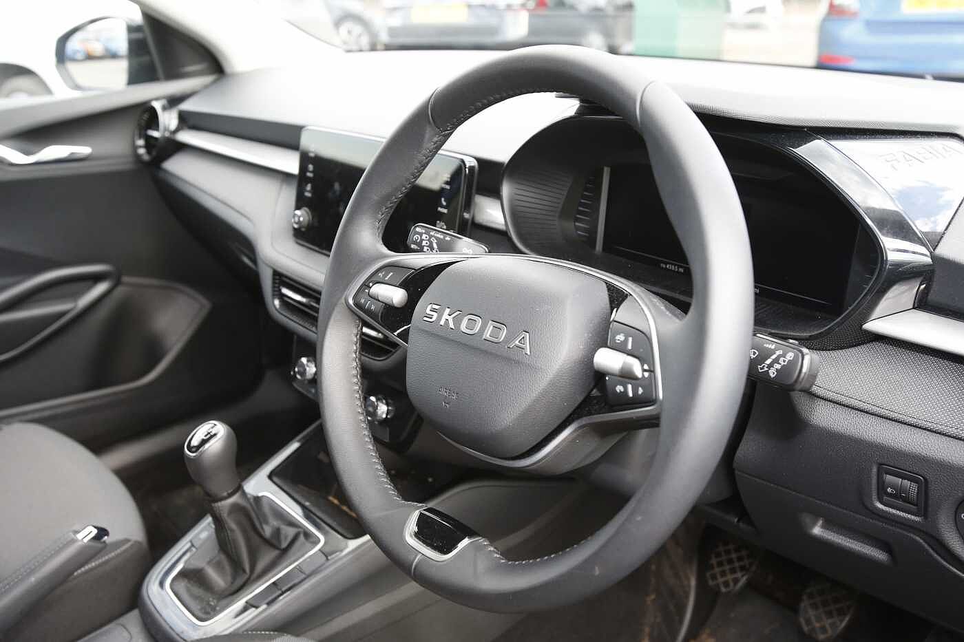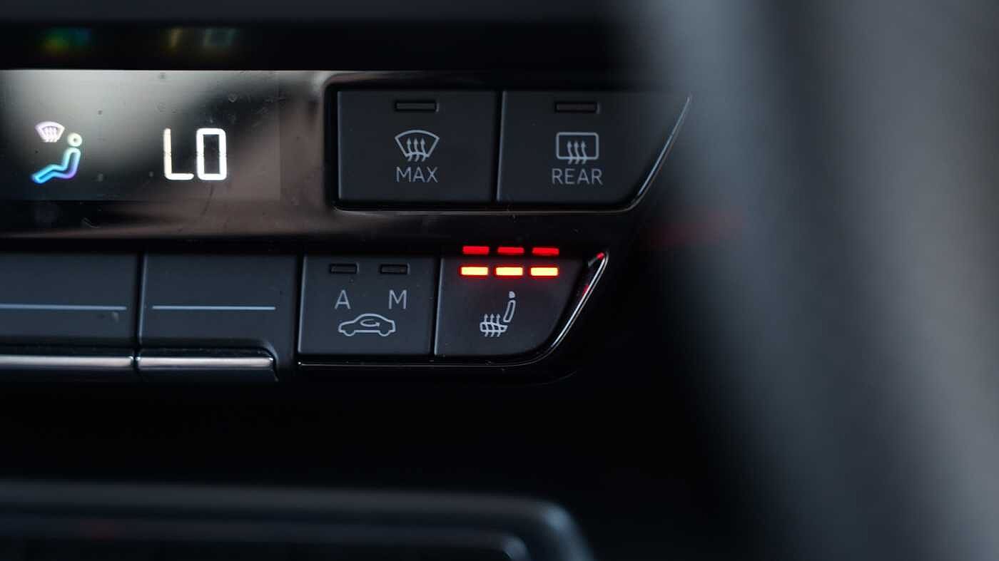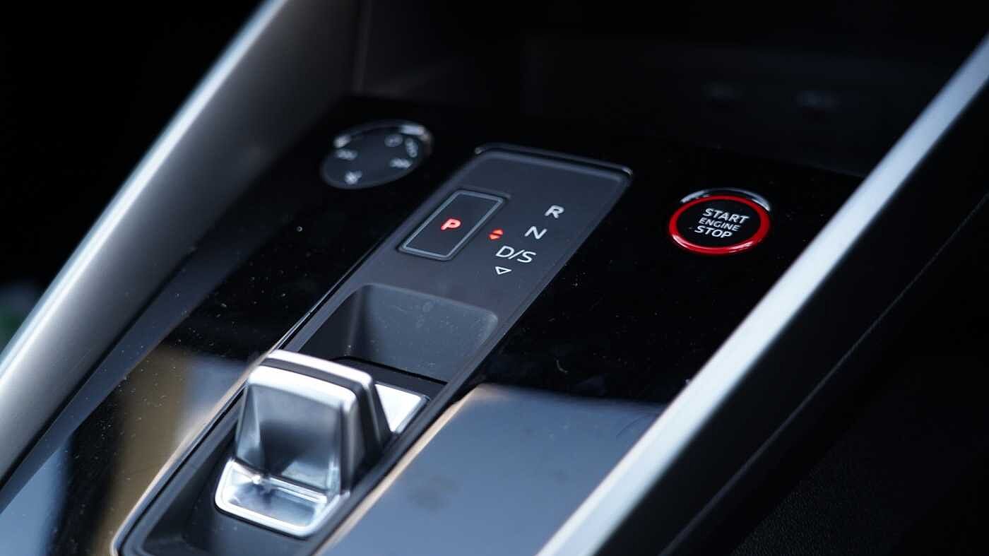 "3 spoke flat bottom multi-fun leather sport steering with gear shift paddle and S badge grip in perforated leather with contrast stitch in rock grey",