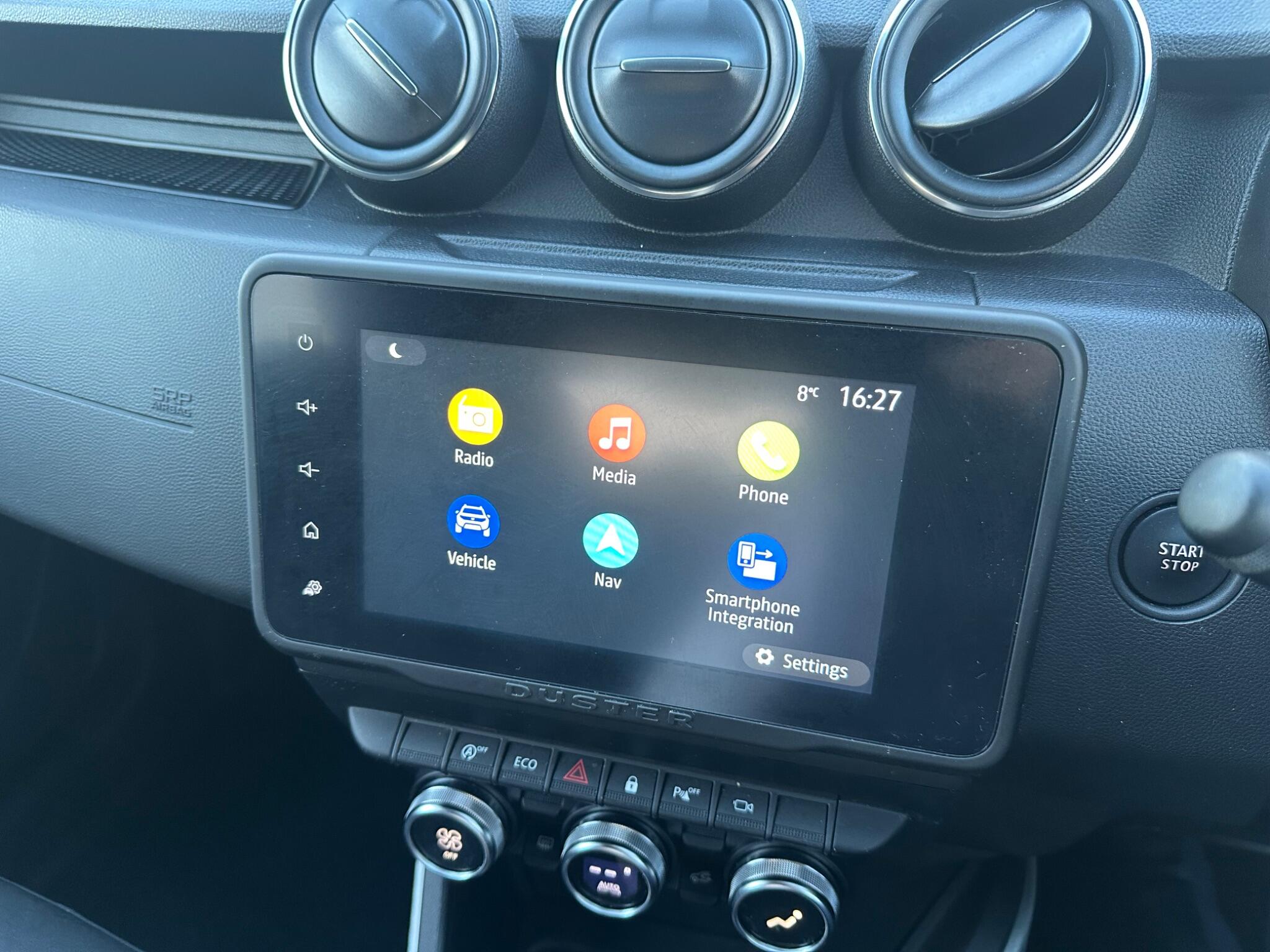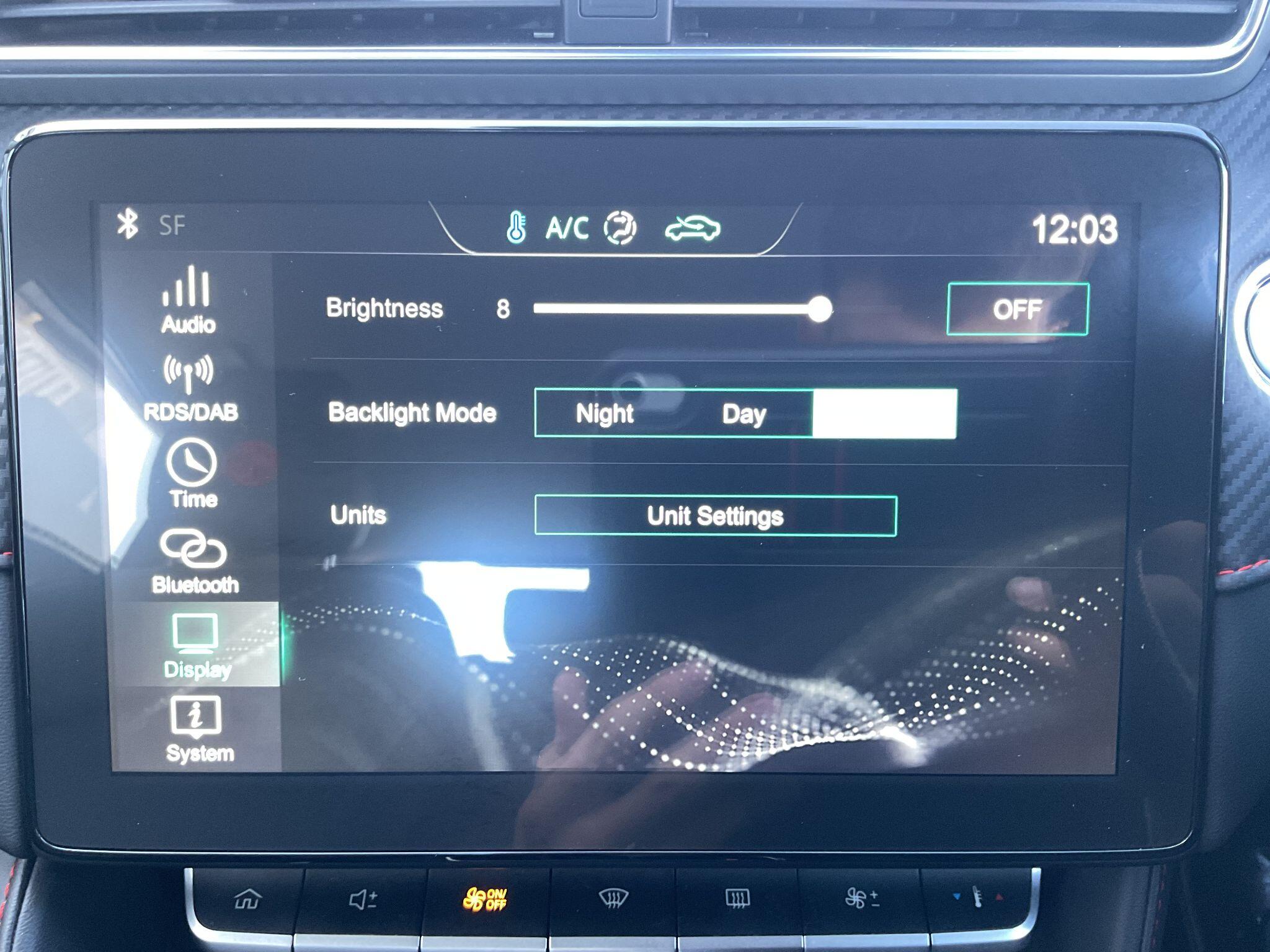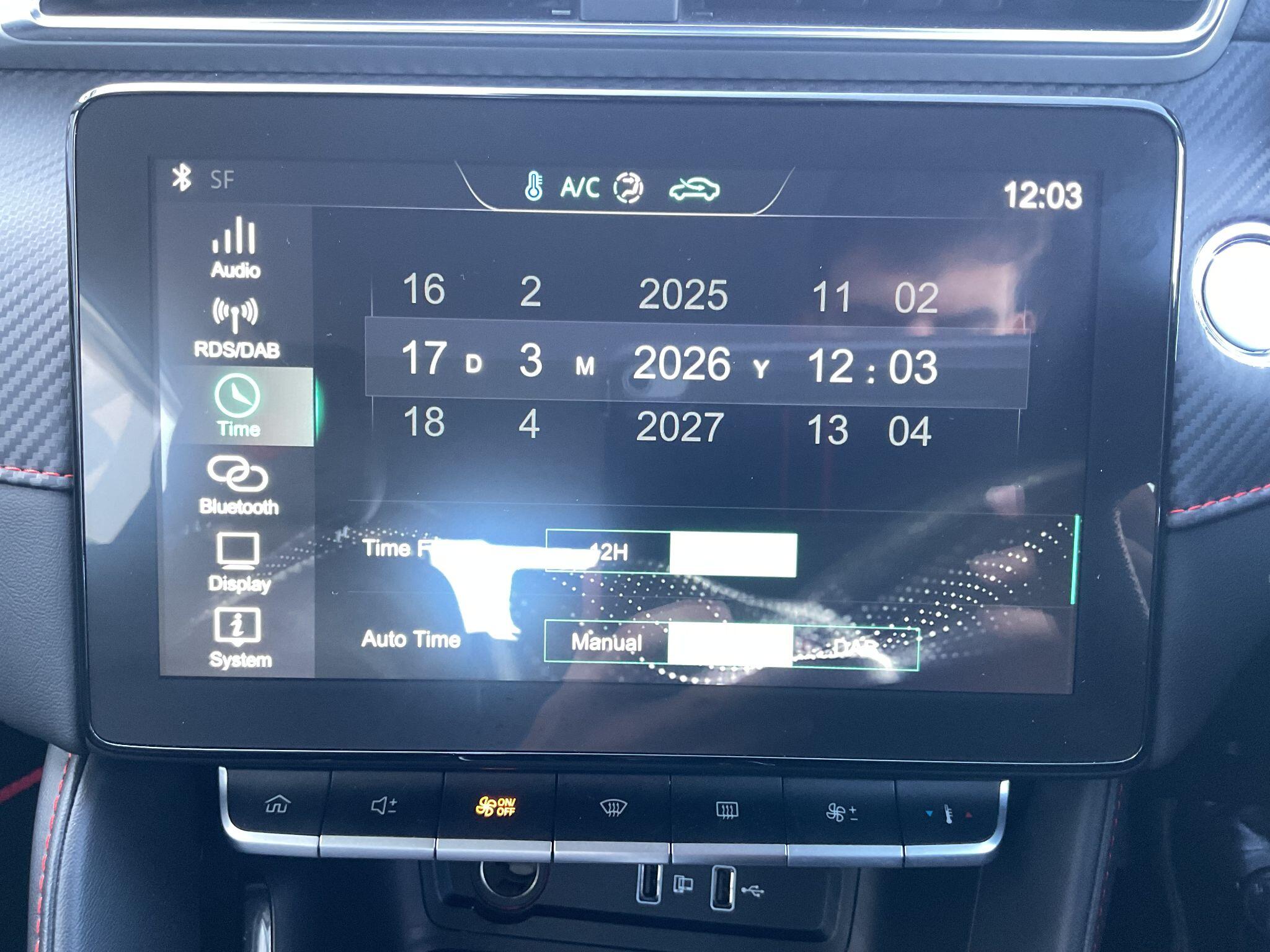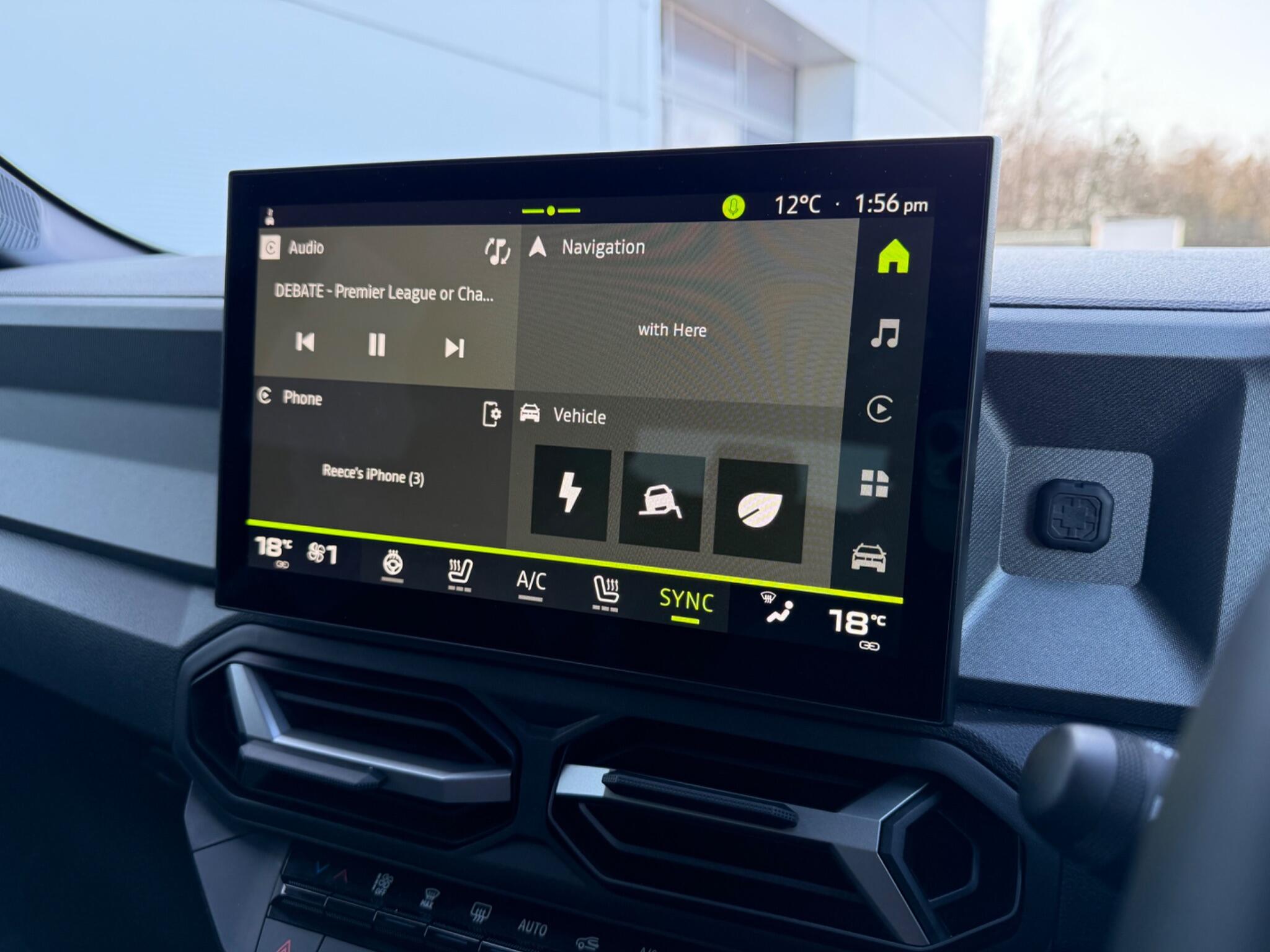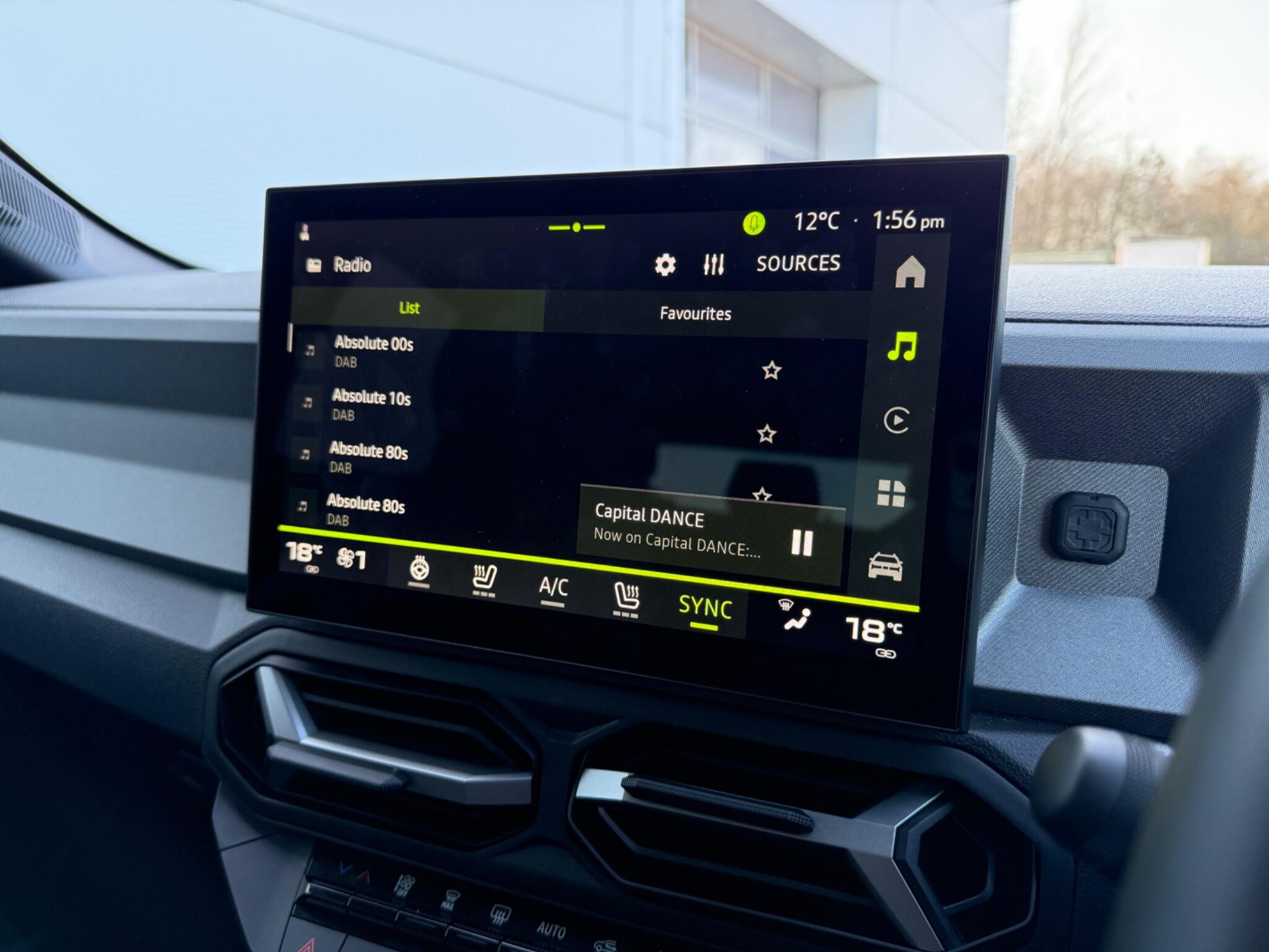 "Central facia display with digital clock, outside air temperature and audio information",