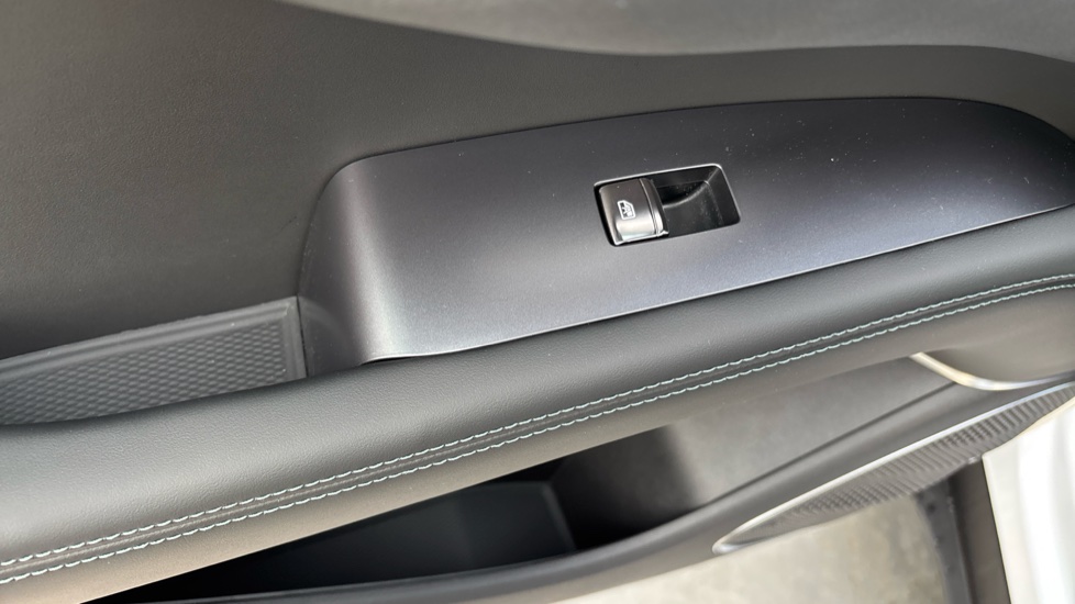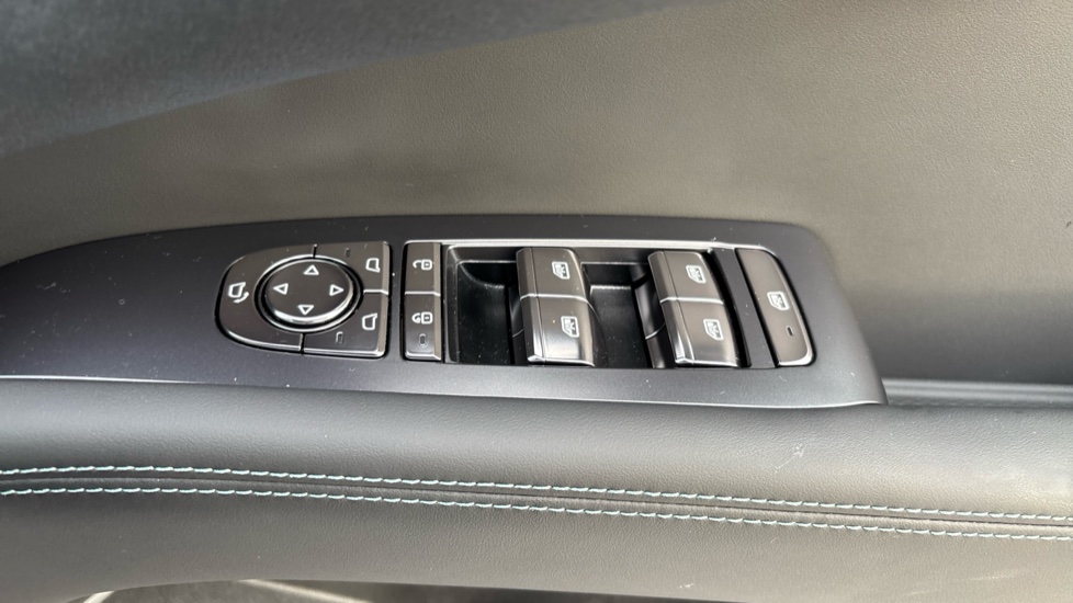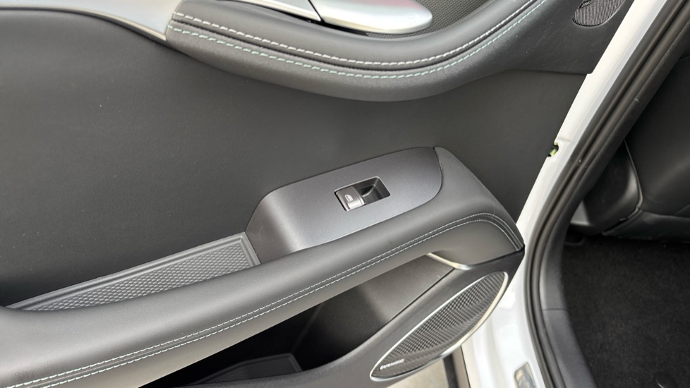 "Mint green contrast stitching to front centre console, door panels and dashboard facia",