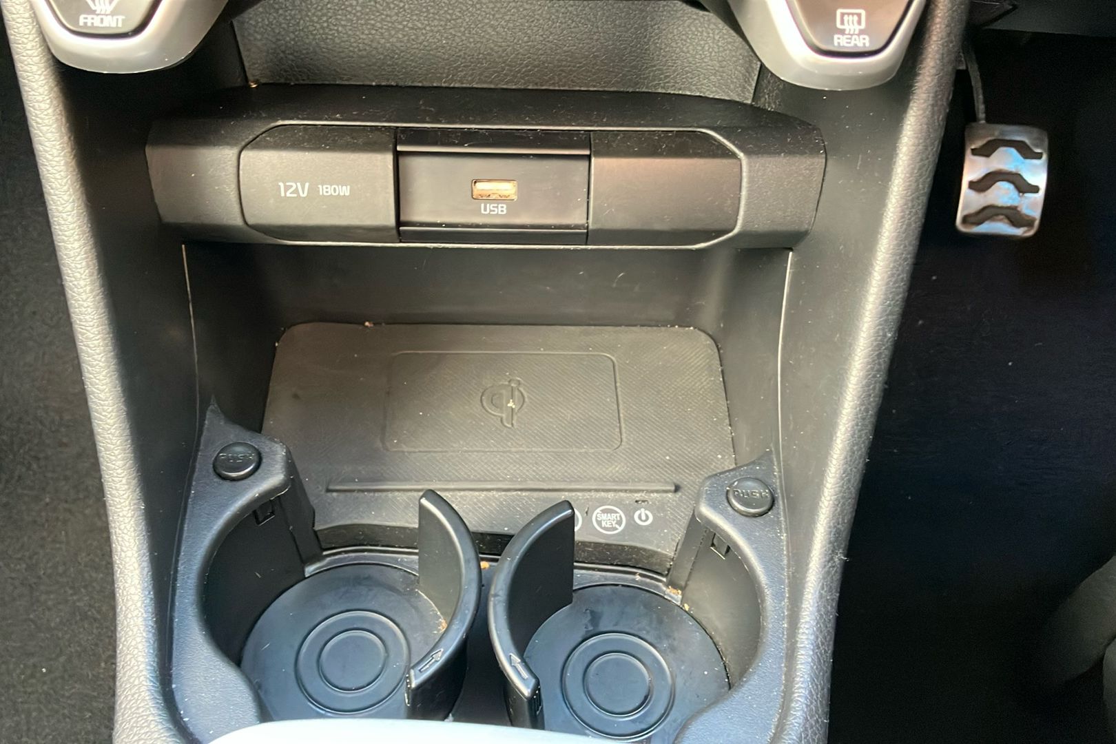 "1x USB-C fast charge on high console",