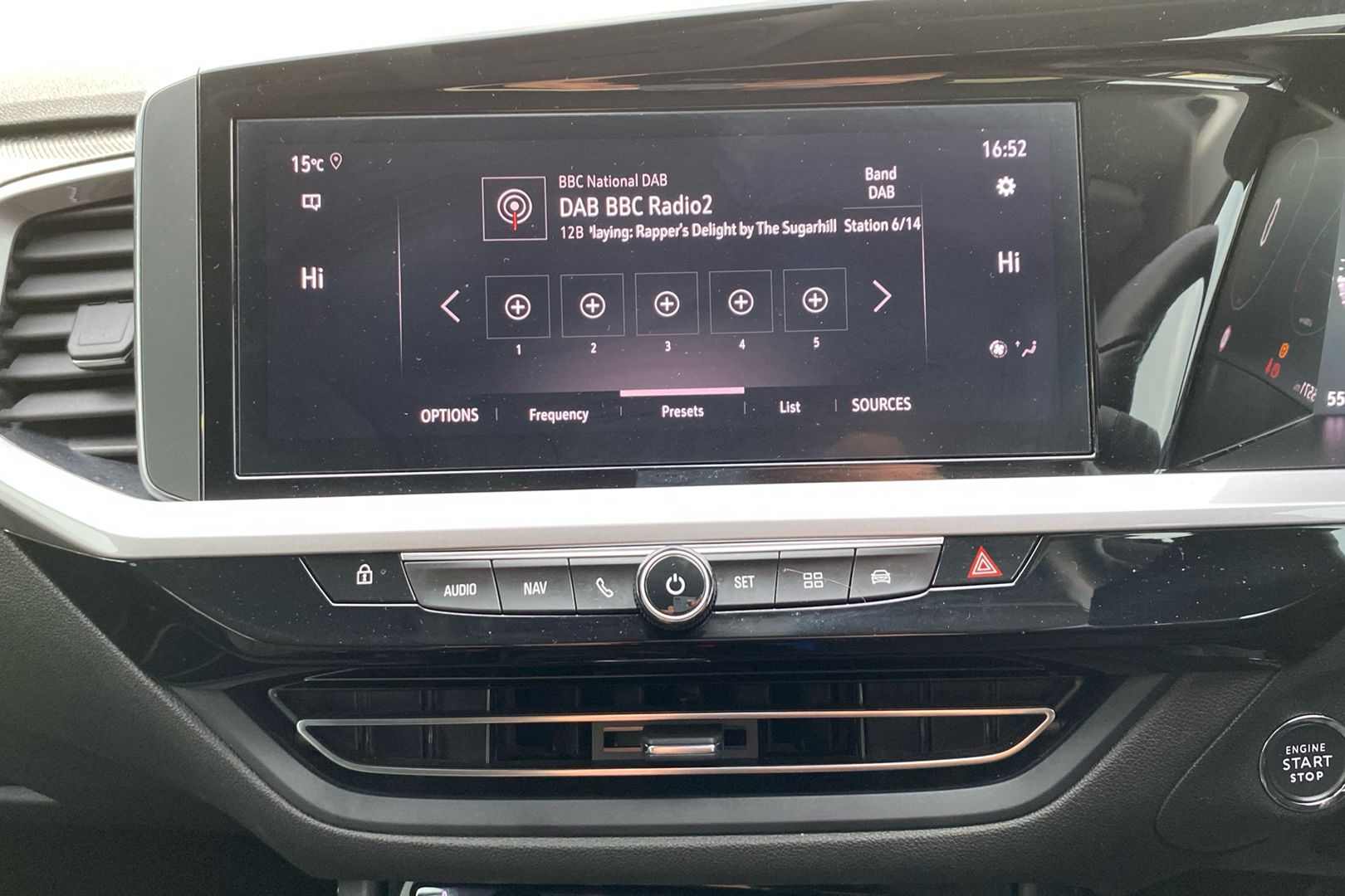 "Engine start button",