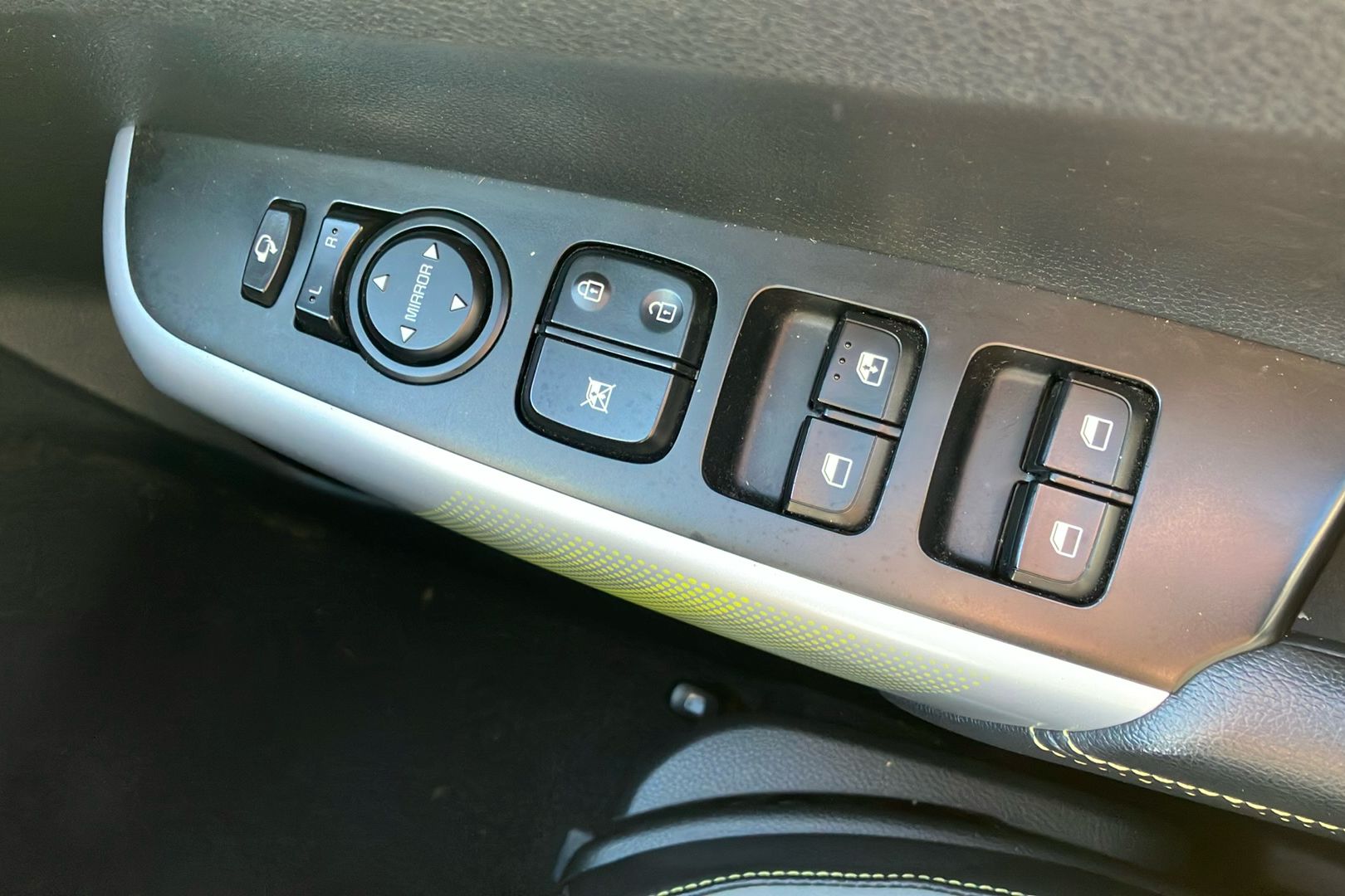 "Padded fabric armrests in front and rear doors with labels",