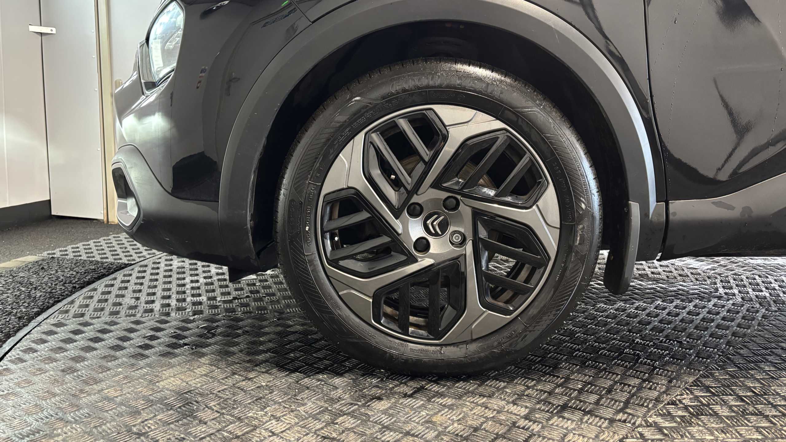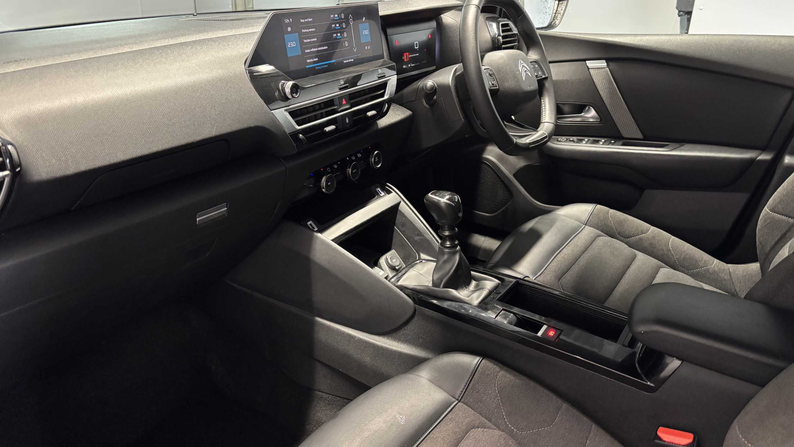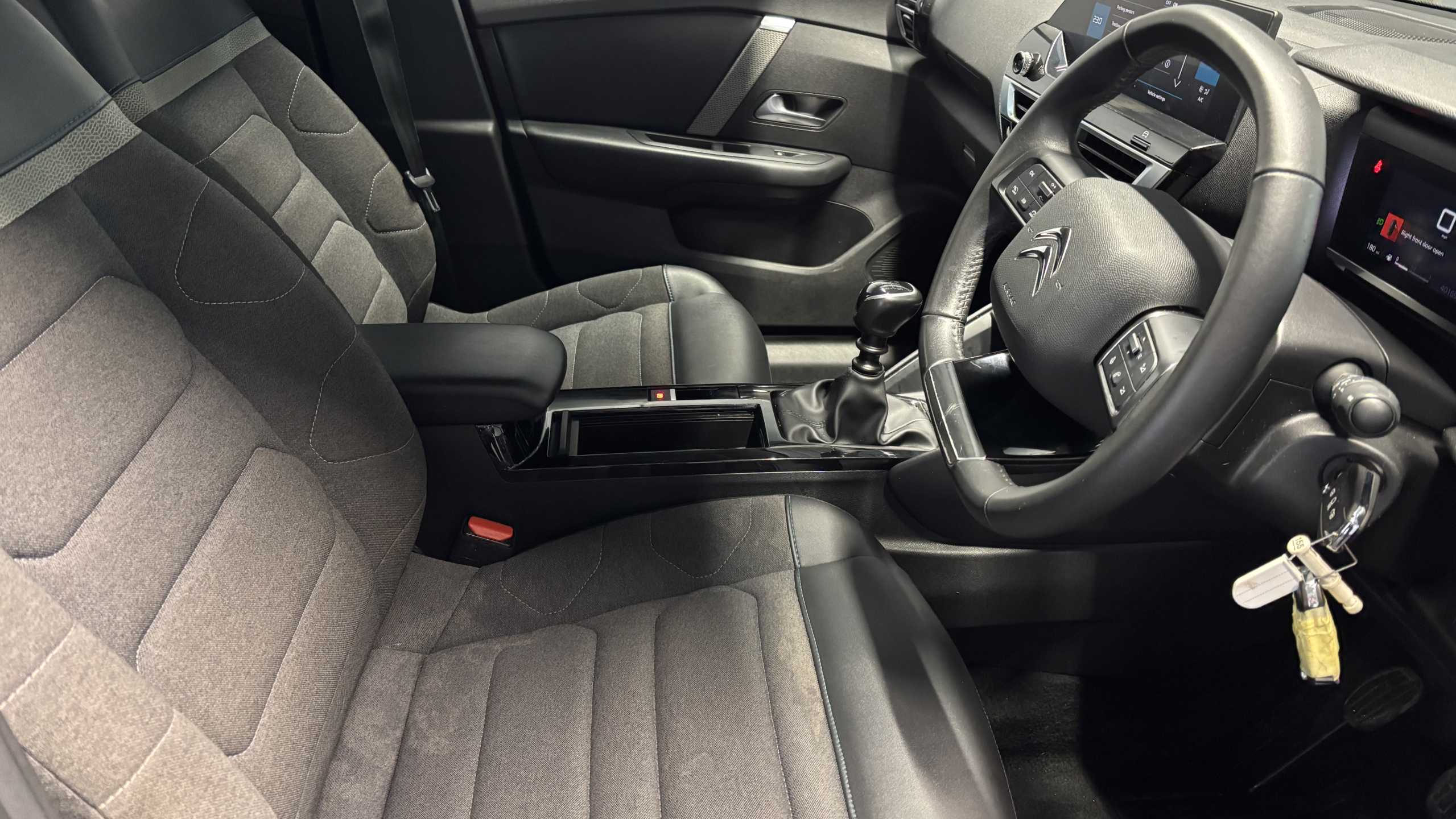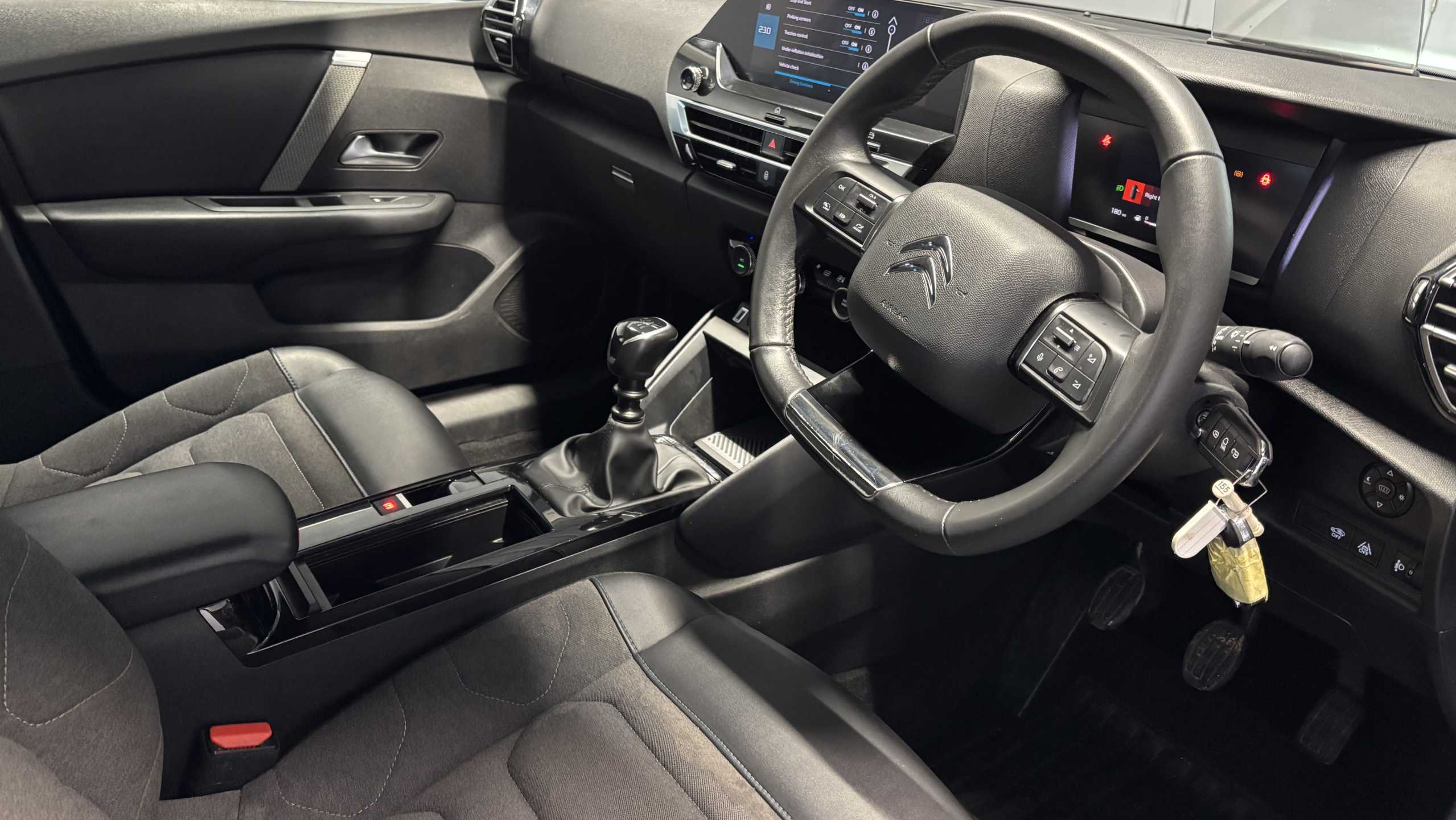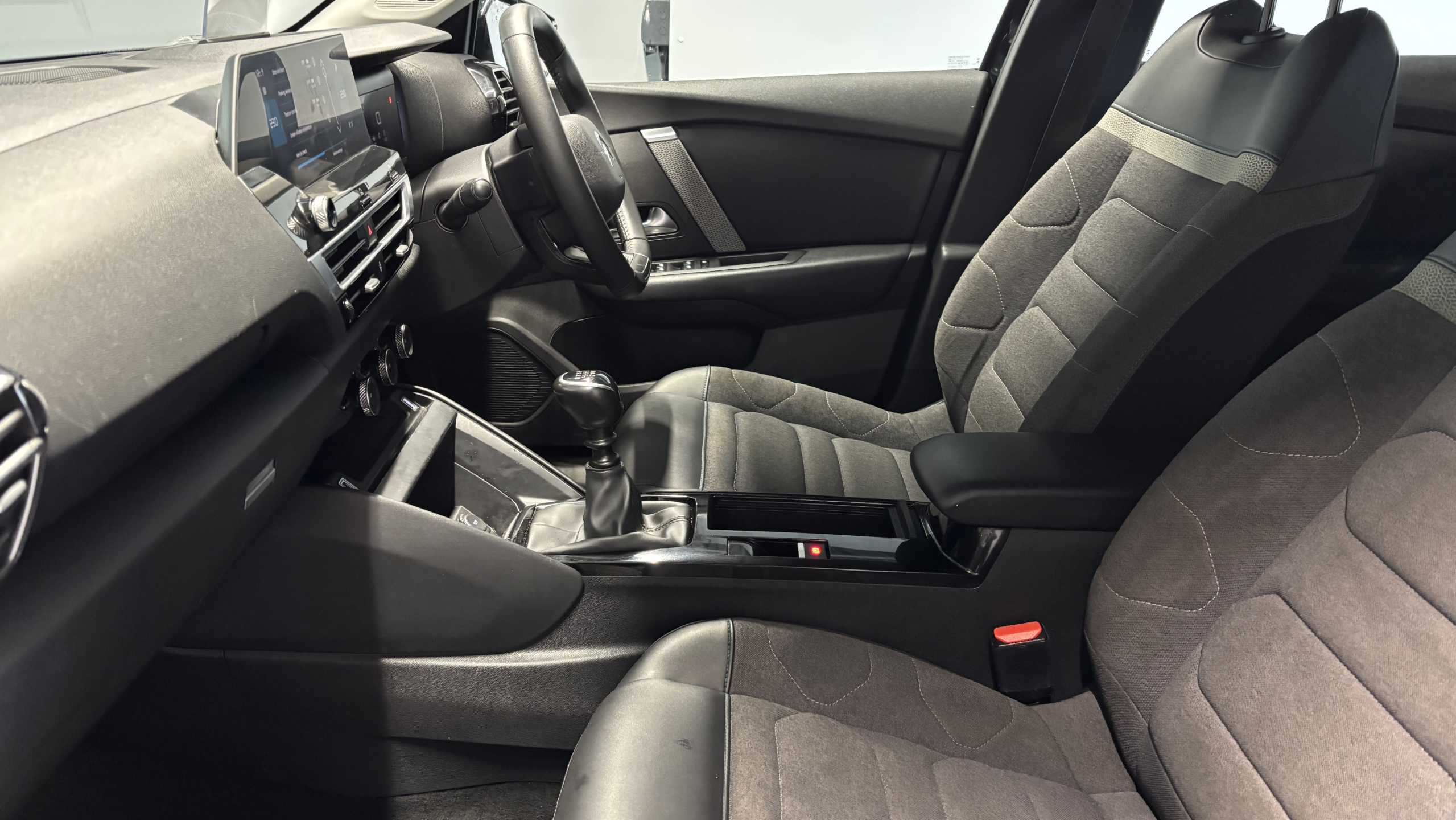 "features": "10\" high resolution touchscreen user interface, controlling media, connectivity and vehicle settings, 5.5 inch backlit full TFT driver's instrument cluster with LED ambient lighting, Apple car play and Android auto, Citroen connect box emergency and assistance system, Citroen connect nav with real time traffic and speedcam, Cruise control + speed limiter, Driver's head-up display, Electronic Power Steering (EPS), In-crash braking, Rear parking sensors, Tailgate, Top rear vision reversing camera, Voice commands, Advanced comfort suspension - double hydraulic stops on front suspension and single on rear suspension, Diesel particulate filter, 6 speakers, Auxiliary input socket, Bluetooth telephone and audio streaming, DAB Digital radio, 3rd brake light, Automatic headlights, Body colour bumpers, Body colour door handles, Body colour painted external rear view mirrors, Body coloured door mirrors, Boot spoiler, Electrically heated, folding and adjustable external rear view mirrors with courtesy lighting, Front and rear electric windows, Gloss black rear skirt, LED daytime running lights in V signature, LED front fog lamps with static cornering function, LED front headlamps, Rain sensing automatic front windscreen wipers, Rear side wing doors, Rear wiper, Roof aerial, Standard interior rear-view mirror with manual day-night switching, Welcome and goodbye lighting, 12V power outlet, 1x USB Type-C socket charging & data connection and 1x USB Type-A socket in 1st row and 1x USB Type-A socket charging in 2nd row, 3 rear headrests, 3 seat bench in 2nd row, Boot light, Chevrons cloth and leather effect textile seat upholstery, Dashboard tray in front cabin, Driver and passenger sunvisors with illuminated vanity mirrors, Dual zone automatic air conditioning, Front and rear LED interior lighting, Front head restraints, Grained leather steering wheel with two command blocks, Height adjustable driver's seat with adjustable lumbar support, Height adjustable front passenger seat, Height and reach adjustable steering wheel, Map pockets in rear of front seats, Raised centre console with armrest and two cup holders, Single front passenger seat, Split folding rear seats, Two position boot floor, High level acoustic insulation pack - C4/C4 X/e-C4 X, 3x3 point rear seatbelts, ABS, Driver and front passenger airbags, Electric parking brake, ESP, Front seatbelt pretensioners, Hill start assist, Manual child lock in second row, Manual deactivation of front passenger airbag, Post collision safety brake, Row 1 and 2 curtain airbags, Row 1 side thorax airbags, Seatbelt unfastened on the move warning, Tyre underinflation detection, Anti-theft alarm (volumetric protection), Immobiliser, Remote locking with deadlocks, Two remote keys, 18\" Bi-tone painted aeroblade alloy wheels with anti-theft locking wheel nuts, Puncture repair kit with compressor, ",