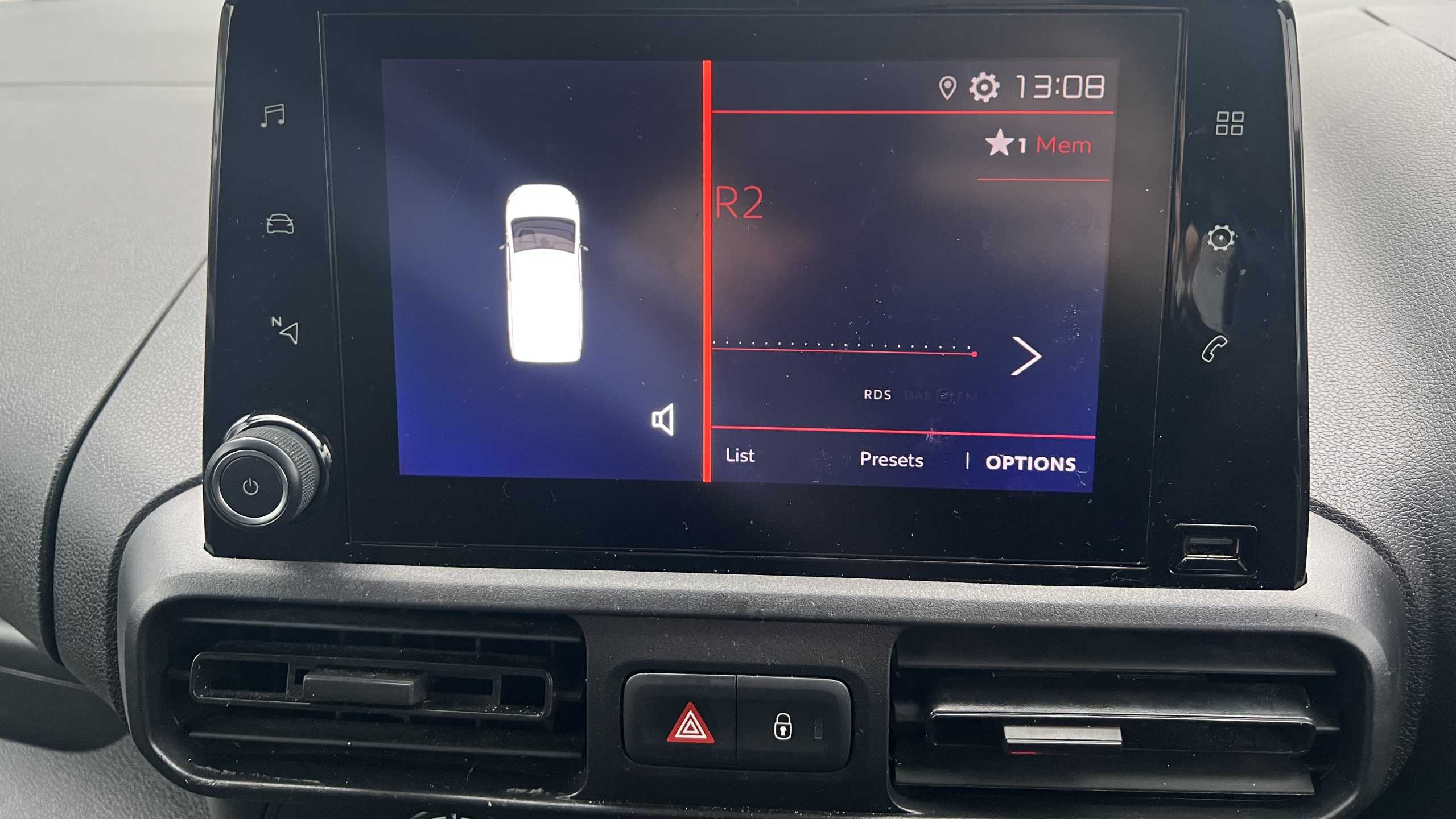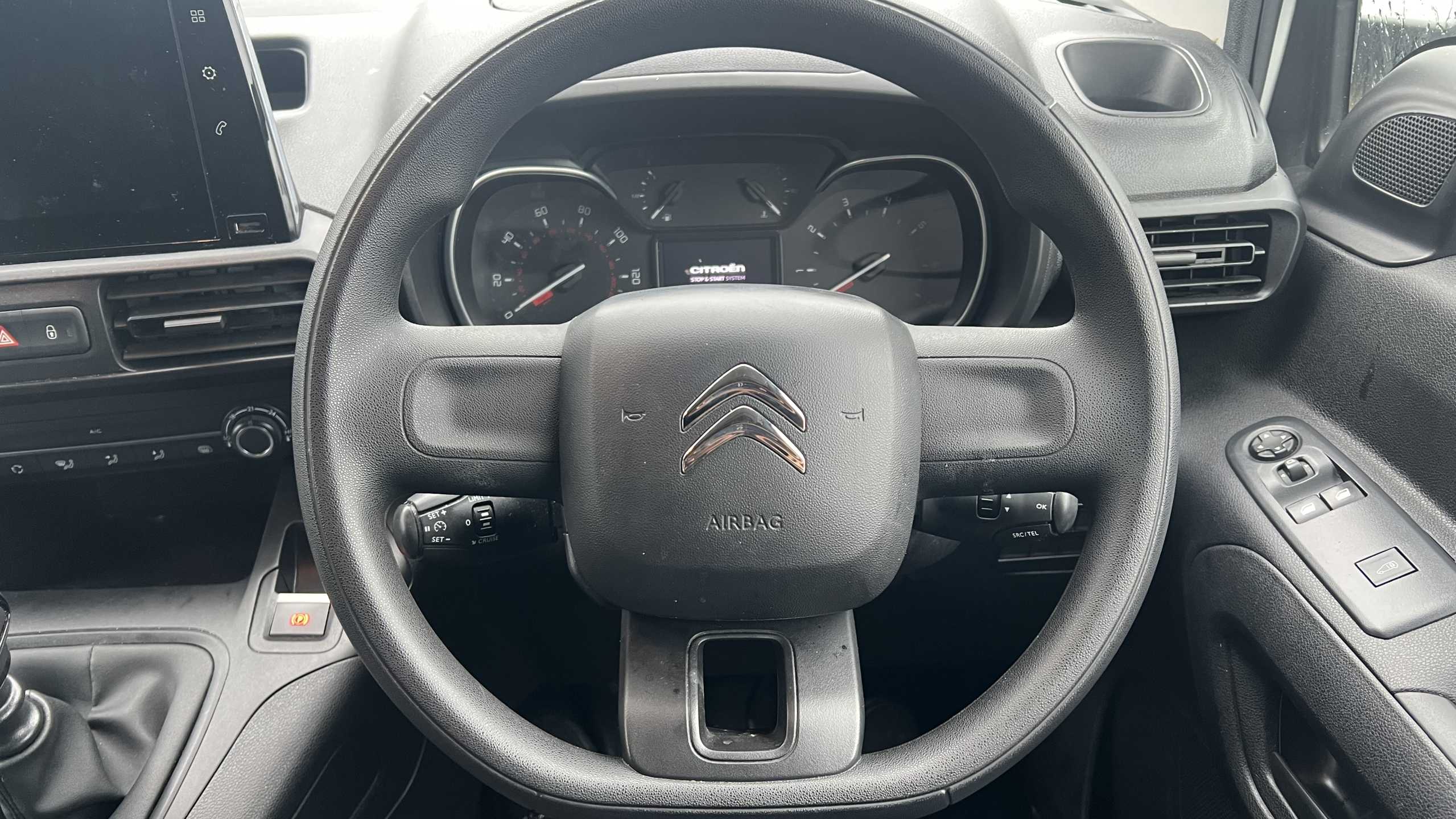 "features": "Citroen connect box with emergency and assistance system, Cruise control with programmable speed limiter, Electric power assisted steering with height and reach adjustable steering wheel, Lockable fuel cap, Multi-function trip computer, Rev counter with maintenance and gear efficiency indicators (GEI), Tyre pressure monitor, Apple Carplay/Android Auto, Automatic lights, Electric front windows with one touch operation, Electrically adjustable door mirrors with temperature sensor, Height adjustable halogen headlights with automatic illumination and integrated daytime running lights (DRLs), High level third brake light, Nearside side sliding door, Side protection rubbing strips, Two speed intermittent front wipers, Visible VIN at windscreen base, 12 volt socket in dashboard, 6 floor mounted load securing rings, 6 load tie-down hooks in cargo area, Air conditioning, Cup holders for driver and passenger on either side of the dashboard, Curitiba cloth upholstery, Front door pockets with 1.5L bottle holder, Hard plastic floor protection in cabin, Overhead storage shelf in cabin, Remote temperature pre-conditioning, Topbox storage compartment, Automatic activation of hazard warning lights on major deceleration, Door opening warning and audible lights on warning, Driver's airbag, Driver/passenger seatbelt unfastened warning, Dashboard mounted central locking push button and auto locking above 7mph, Perimetric and volumetric thatcham category 1 approved alarm with tilt sensor, Remote central locking with deadlocking, selective cab and load area locking via 3 button plip remote control key, Thatcham approved rolling code transponder immobiliser, Electronic Stability Control and ABS with hill start assist, EBA and EBFD, ",