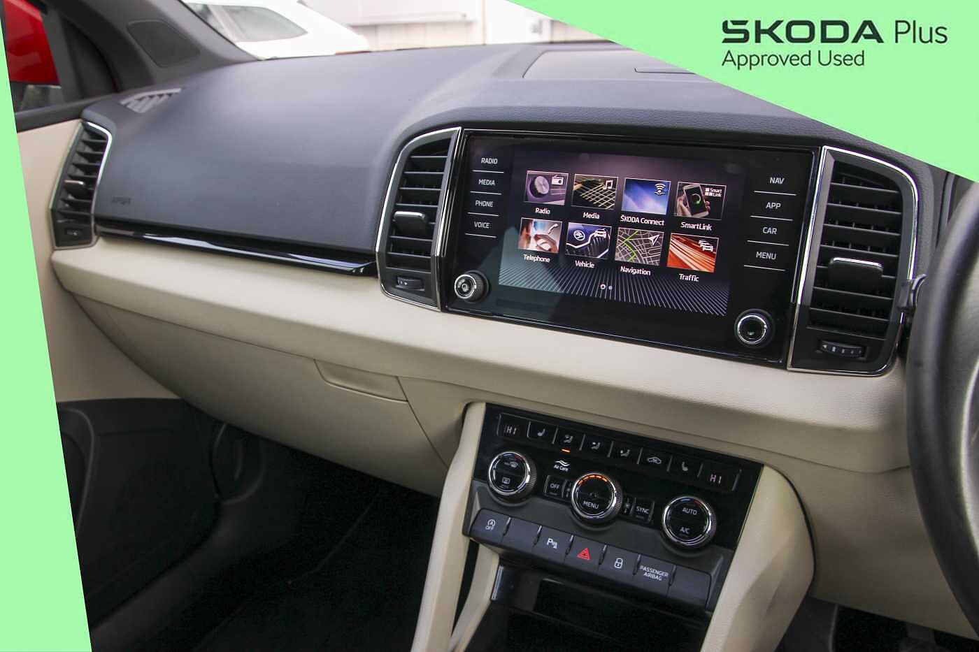 "features": "Adaptive cruise control (ACC) with speed limiter and front assist (reacting to vehicles pedestrians and cyclists), Car2X communication, Digital cockpit pro - 10.25\" high resolution TFT dash display screen with customizable menus and information, Driver alert system, Dynamic road sign display, eCall - Emergency call service for SOS calls to emergency response, Lane assist, Mobile phone interface with wireless inductive charging function, Multifunction camera for distance control, Power assisted speed sensitive steering, Speedo, rev counter, electronic odometer, trip, service interval display, exterior temperature and fuel gauge, Start/Stop function, USB-C ports in the front and rear centre console with increased charging performance, Warning buzzer and light for front seatbelts unfastened, Wireless app connect, Petrol Particulate Filter, XDS electronic differential lock for improved traction and handling, Premium USB cable in choice of either Apple or Android smartphone compatibility, Ambient lighting, exterior illuminated styling elements at the sides, Auto dimming rear view mirror, Automatic headlamp activation with Coming home and Leaving home feature, Automatic headlights, Body colour bumpers, Body colour door handles, Body colour door mirrors with integrated indicators, Body colour rear roof spoiler, Electrically heated and adjustable door mirrors with memory feature, Front and rear electric windows, Heat insulating glass windscreen, Heated rear windscreen, High level 3rd brake light, Highway light, LED License plate illumination, Rain sensor, Rear fog light on one side and reversing lights on both sides, Rear lights incorporating LED technology, Rear side wing doors, Rear windscreen washer and wiper with interval delay, Welcome light, 10 colour interior ambient lighting, 12V socket in front centre console, 12V socket in luggage compartment, 3 rear head restraints, 3 seat bench in 2nd row, Drivers and front passengers sun visors with vanity mirrors, Front centre armrest with storage compartment, Front cupholders x 2, Front passenger seat, Front passenger seat lumbar adjustment, Front reading lights x 2 incorporating LED technology, Glovebox, Height adjustable passenger seat, Height and reach adjustable steering wheel, Isofix child seat preparation for 2 rear child seats and front passenger seat, Luggage compartment lighting, Maze cloth upholstery, Removable luggage compartment cover, Soul black instrument panel, Split folding backrest with centre armrest and unsplit rear seat bench, Storm grey roof lining in recycled material, Woven fabric storage compartments in front and rear doors, 3 point height adj front seatbelts + pretensioners, 3 rear three point seatbelts, ABS, Child locks on rear doors, Driver and front passenger airbag with front passenger airbag deactivation, Drivers and front passengers safety optimised head restraints, Electronic parking brake with auto hold, ESC (Electronic Stability Control), Extended pedestrian protection measures, Front centre airbag, Front disc brakes, Front side airbags with curtain airbags, Rear disc brakes, Two tone horn, Tyre pressure monitoring system, Alarm with interior protection and deactivation via infotainment system, Electronic engine immobiliser, High gloss black centre console, Silver silk decorative inserts in dash and front door panels, ",