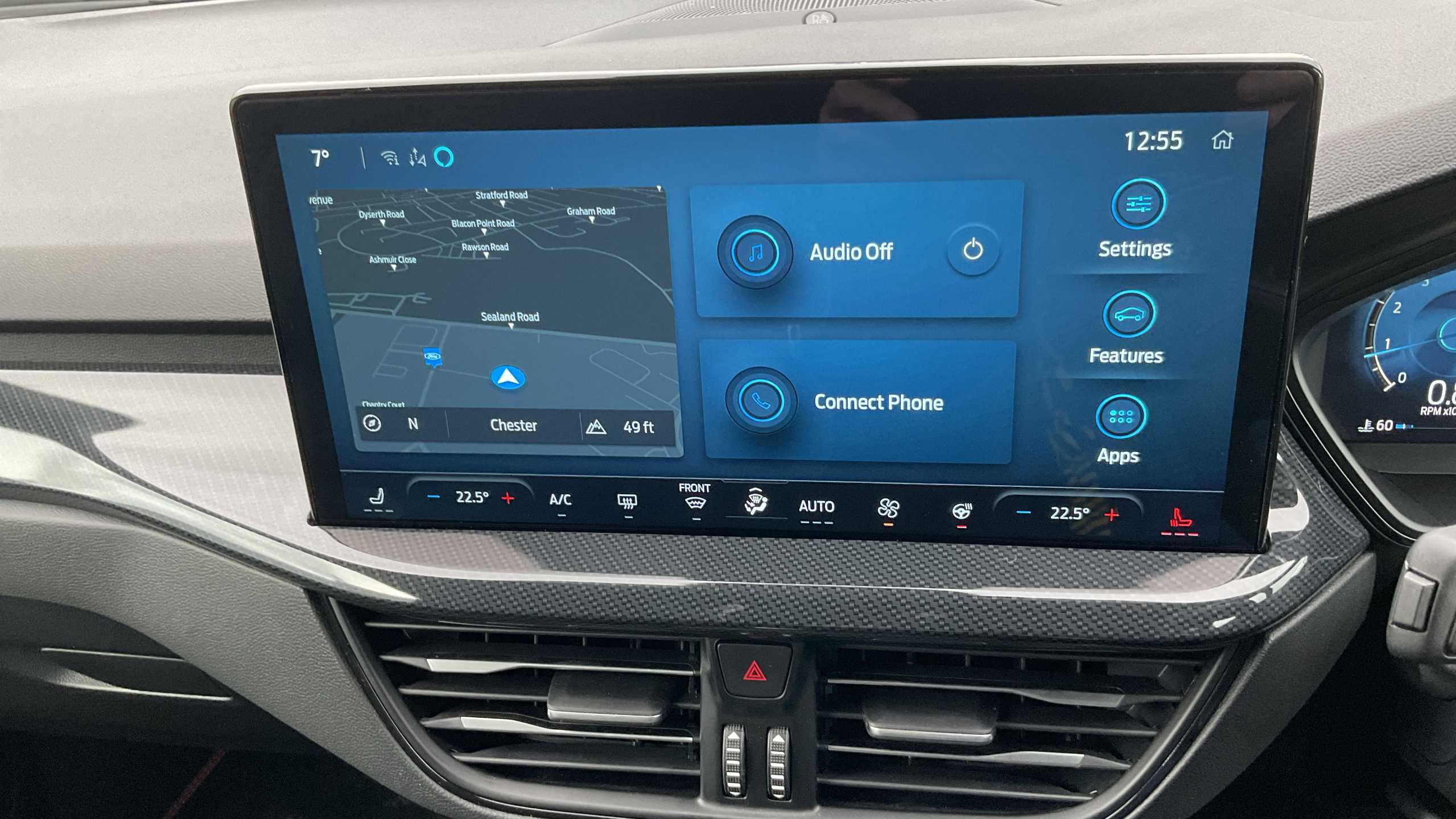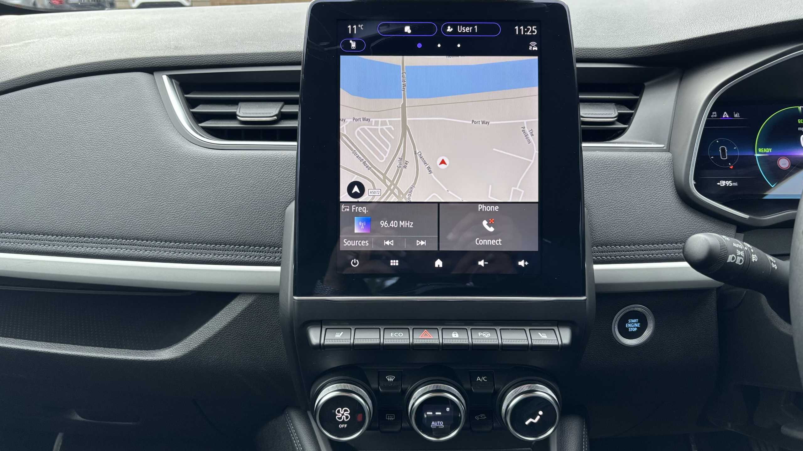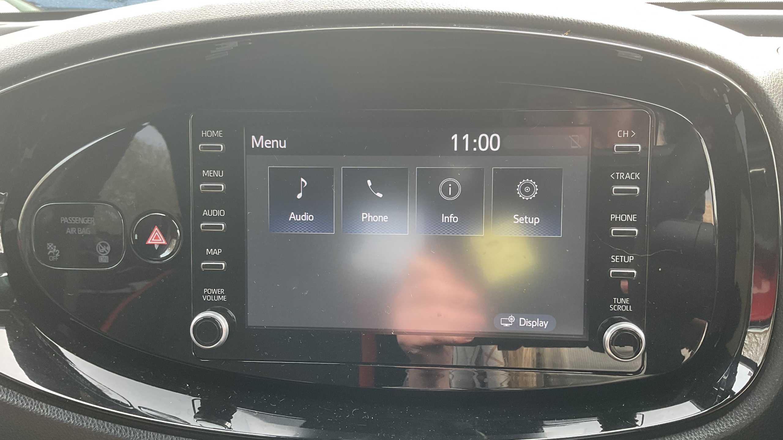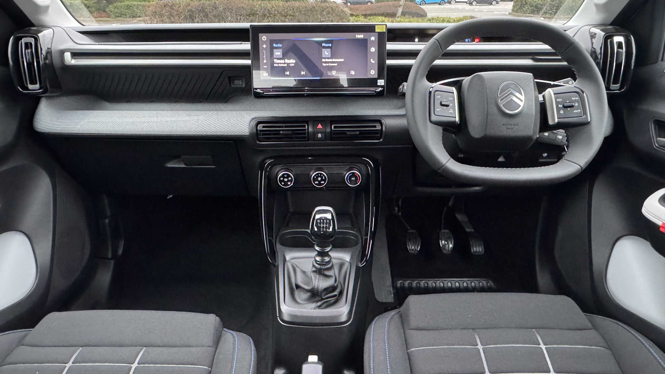 "Central facia display with digital clock, outside air temperature and audio information",
