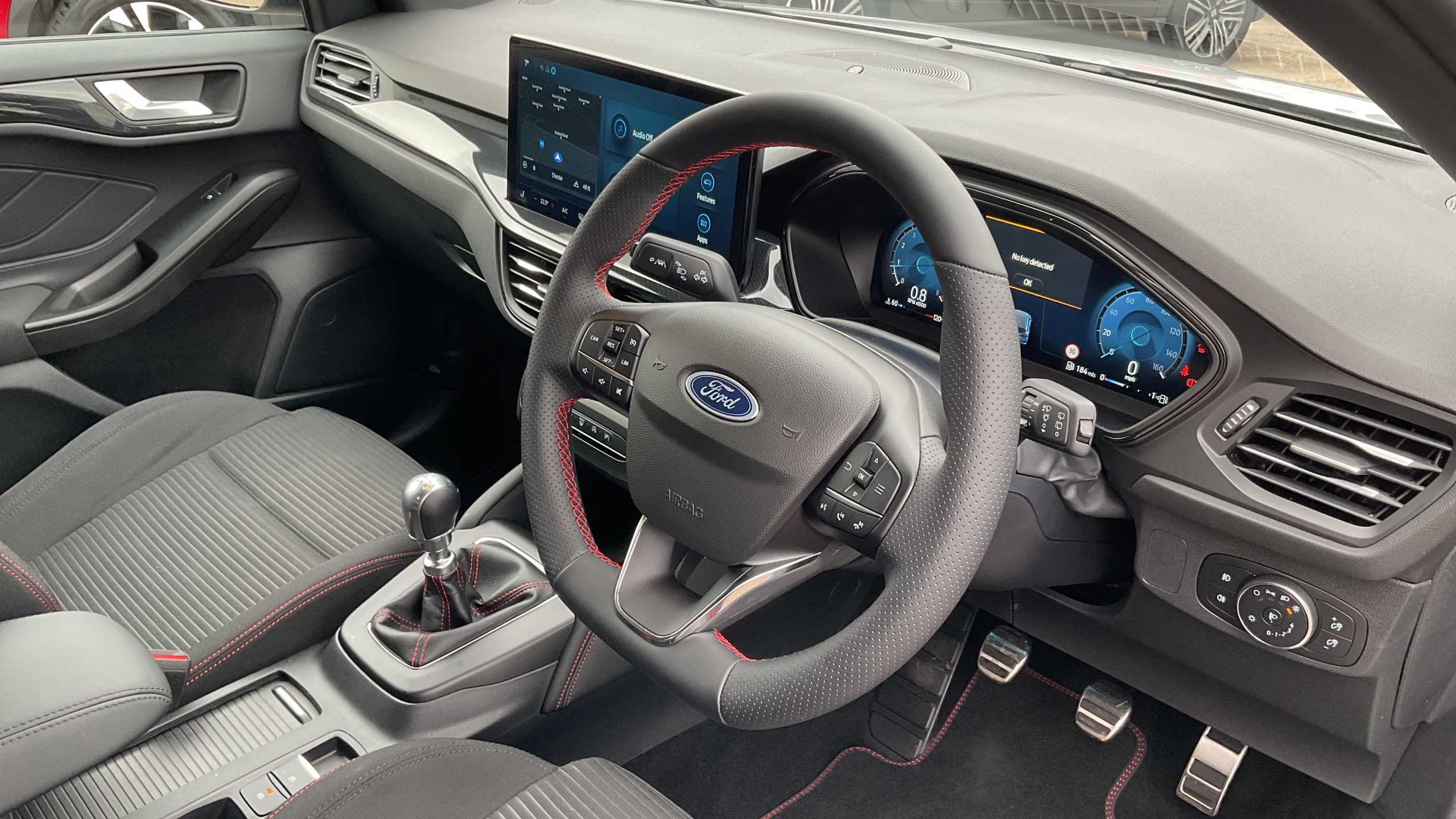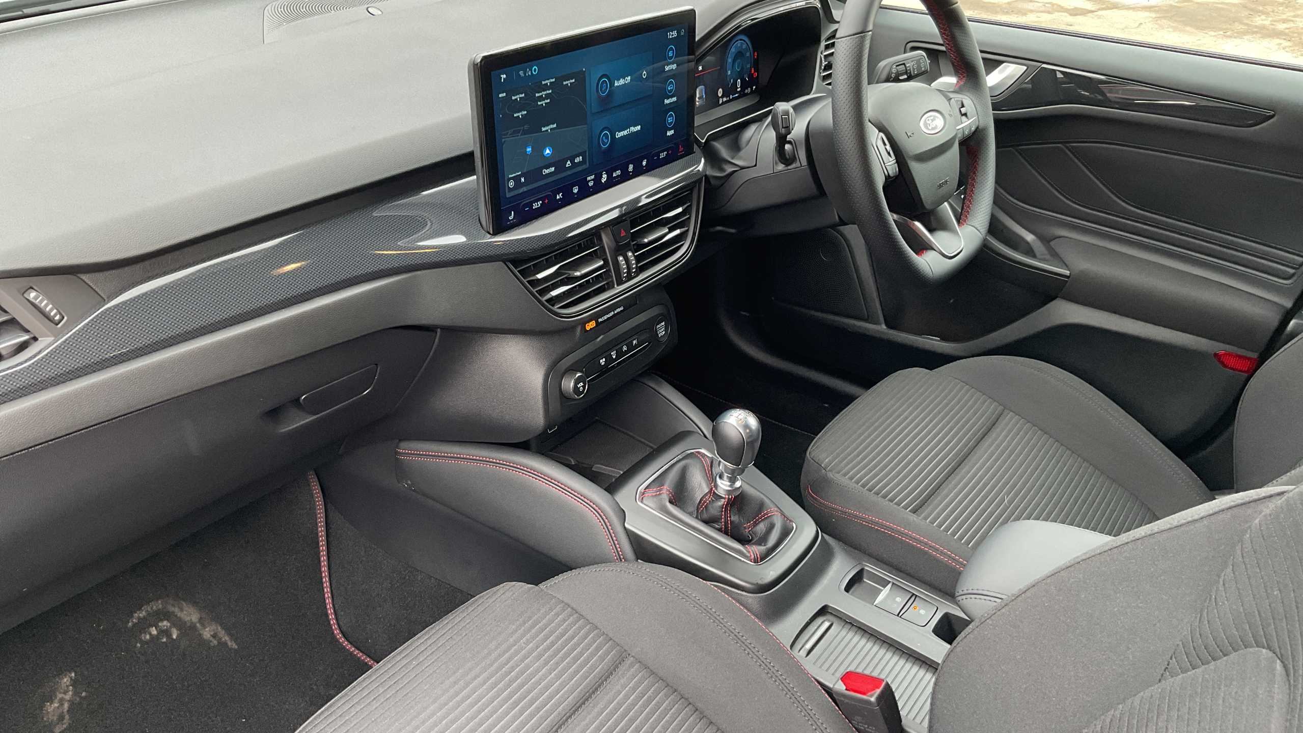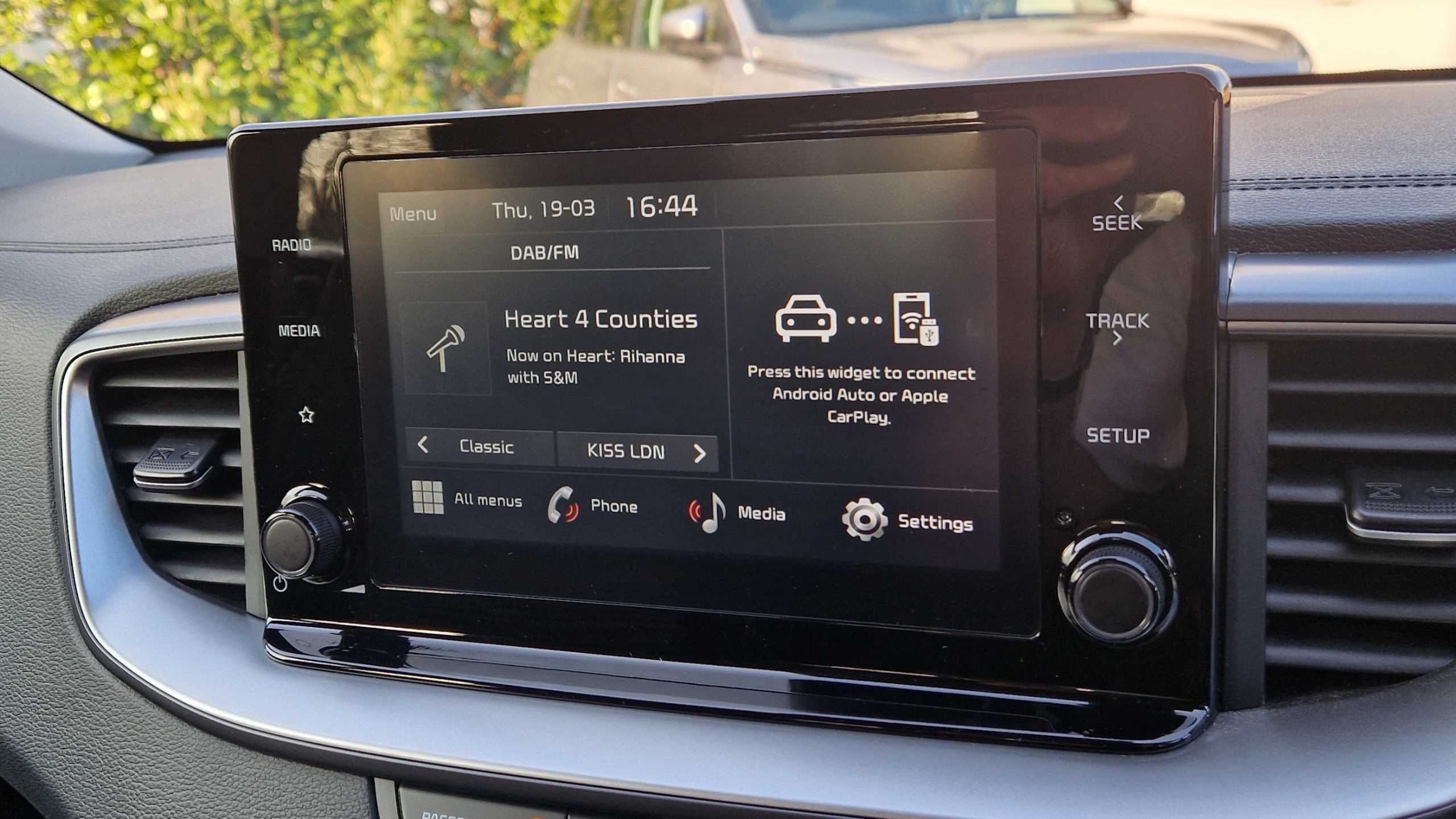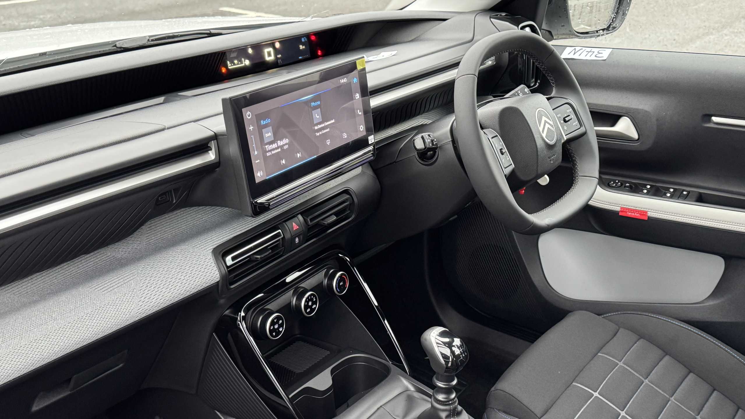 "Central facia display with digital clock, outside air temperature and audio information",
