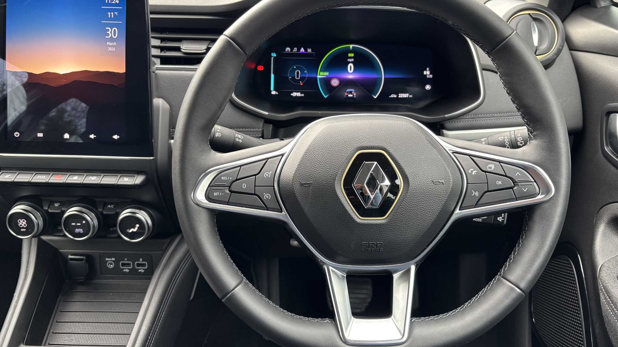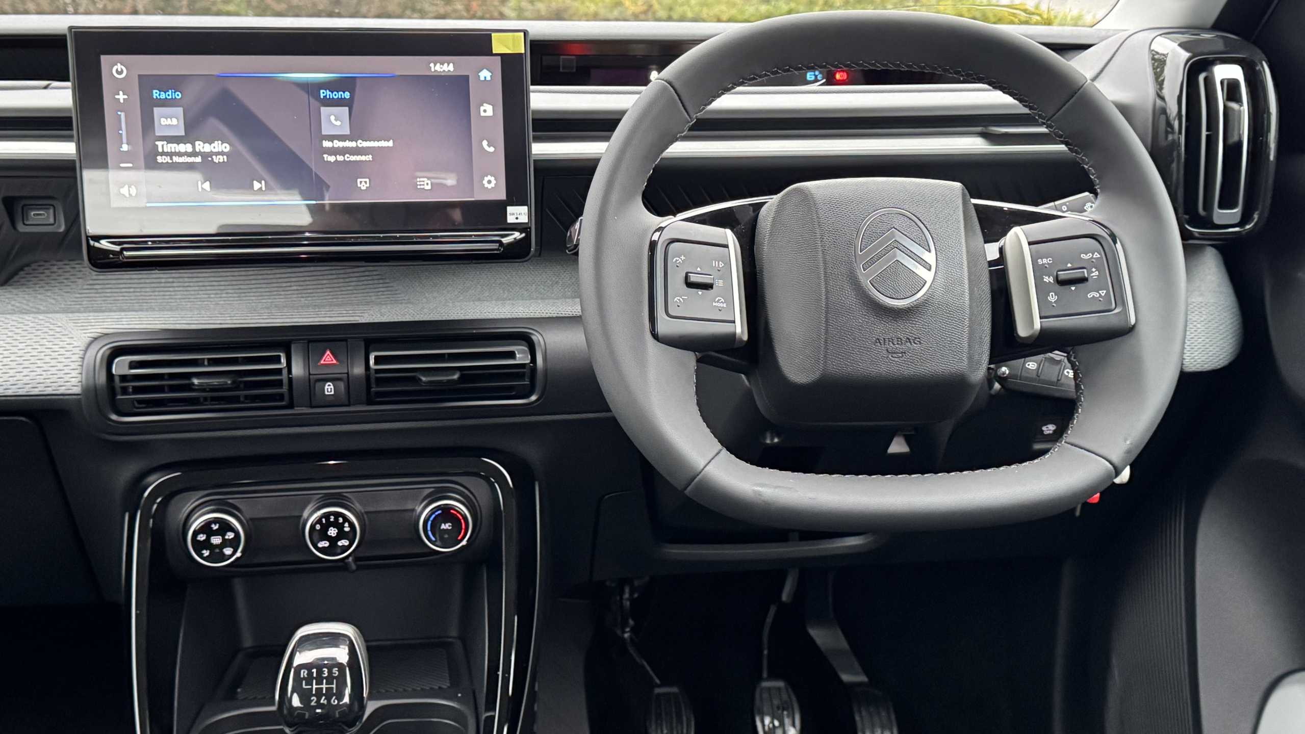 "Infotainment remote controls right side of steering wheel, telephone buttons on left side",
