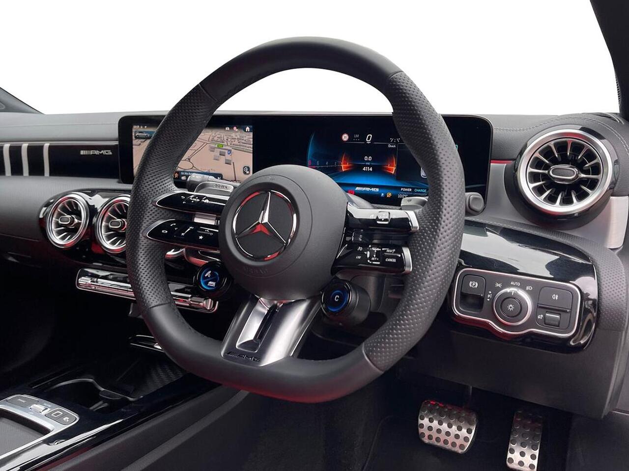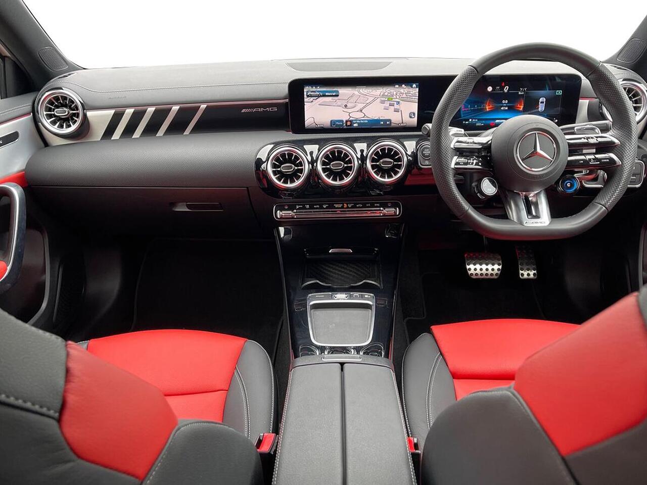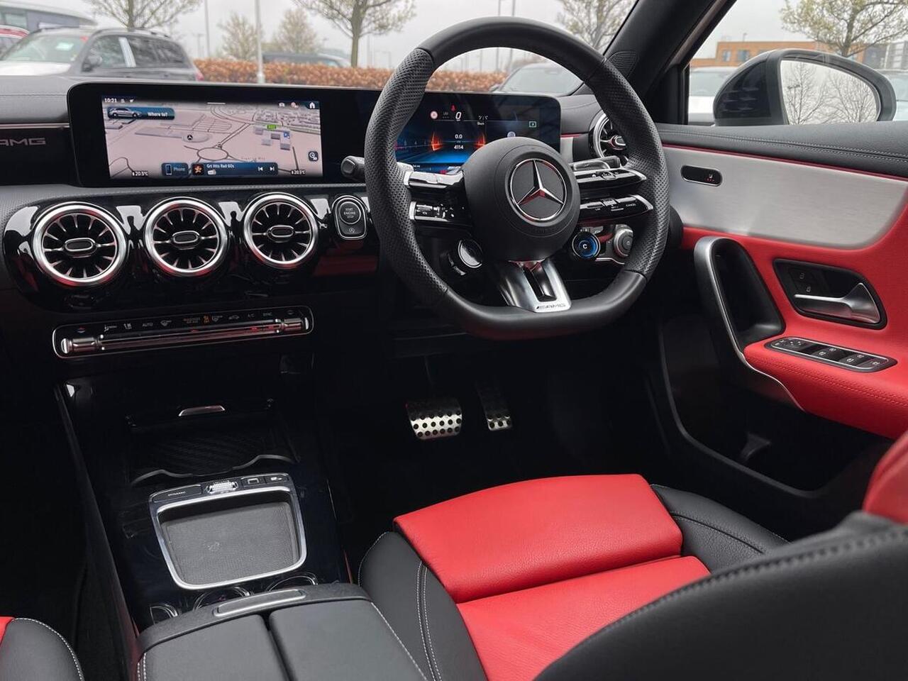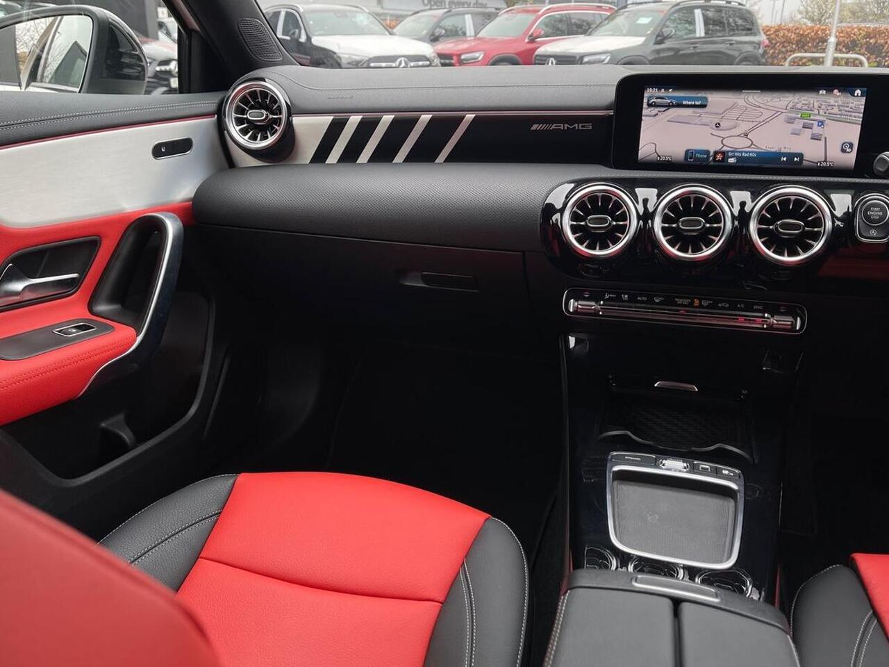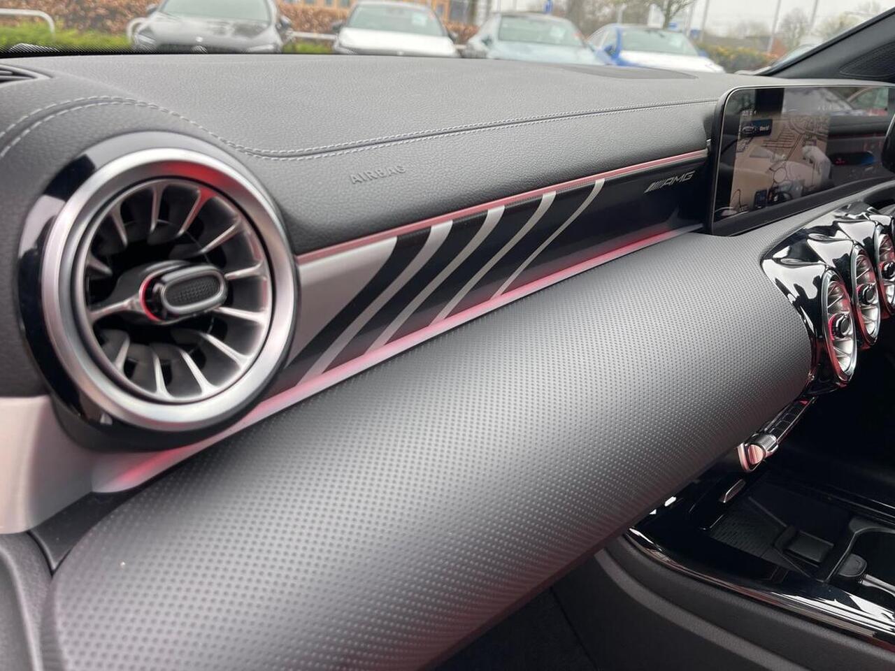 "features": "10.25 inch touchscreen central media display, 10.25\" Digital instrument cluster display screen, Attention assist, Blind spot assist, Brake pad wear indicator warning light, Car wash mode, Cruise control + speed limiter, Direct steering, Direction indicators with lane change function, Dual bluetooth interfaces, DYNAMIC SELECT with driving programs (Slippery, Comfort, Sport, Sport+ and Individual), ECO start/stop function, Engine start/stop button, Fluid level warning indicator for fuel, oil, coolant and washer fluid, Fluorescent jacket for driver, Hard-disk navigation, Hey Mercedes Voice activation, Lamp failure indicator, Lane keeping system, MBUX augmented reality for navigation, Mercedes me connect including emergency call system, accident recovery, breakdown and maintenance management, Mercedes me remote services, Outside temperature gauge, Owners manual in English, Pre-installation of private car share, Remote boot closing, Service indicator (ASSYST), Smartphone integration with Apple CarPlay and Android auto, Speed limit assist, Speed sensitive power steering, Tailgate, Trip computer in multifunction display with current consumption indicator, Wireless charging, AMG suspension, DAB Digital radio, MBUX multimedia system, Mercedes Benz sound system (100 W) with 6 speakers, 4 Electric Front and Rear windows, Adaptive brake lights, AMG body styling - AMG front apron with front splitter and AMG rear apron and visible exhaust tailpipe trim elements, AMG Front apron with flics as air deflector elements on the outer air intakes, AMG Rear apron with specific diffuser look with four vertical fins and two round chrome plated tailpipe trim elements with a diameter of 90 mm, AMG spoiler lip on roof, AMG sports exhaust system with two round tailpipes attached to the rear apron, Beltline strips in High gloss Black, Body colour bumpers, Body colour door handles with chrome inserts, Body colour side skirt, Electric adjustable and heated door mirrors with integrated LED side indicators, Front splitter and trim elements on the louvres in the outer air inlets, Front wings wheel arches with TURBO 4MATIC lettering, Headlamp assist automatic headlamp activation, Heated glass rear windscreen + timer control, LED High level third brake light, LED High Performance headlamps including integral LED daytime running lamps and adaptive highbeam assist, LED tail lamp, Privacy glass, Radio aerial, Rain sensing windscreen wipers with two sensitivity settings, Rear fog lights, Rear side wing doors, Rear windscreen wiper, Wider wheel arches for AMG wheels, Window line trim strip in black, 3 seat bench in 2nd row, 4 way lumbar support, 40:20:40 split folding rear seats, Air conditioning - Two zone thermotronic luxury automatic climate control with display, AMG floor mats, AMG Performance steering wheel in nappa leather, Automatic child seat recognition sensor, Black air vents with surround in silver chrome, Black roof lining, Brushed stainless steel sports pedals with rubber studs, Front centre armrest with stowage, Front door sills with AMG lettering, Front seat backs luggage nets, Heated front seats, Height/reach adjustable steering column, Interior lighting - 64 colour Ambient lighting, Interior mirror with reading lamps in black and frameless, Rear armrest with 2 cupholders, Rear head restraints, Seat occupancy sensor for front passenger seat, Silver coloured aluminium gear shift paddles on steering wheel, Single front passenger seat, Sports seats with integrated headrests, Stowage compartment in centre console with retractable cover, Sunvisors with illuminated vanity mirrors, Twin front cupholders, Aerodynamic pack - A Class, AMG night pack - A Class, AMG night pack II - A Class, Light and sight package - A Class, Mirror package - A Class, Parking pack with 180 degree view - A Class, Seat comfort pack - A Class, USB pack plus - A Class, 3 rear 3 point seatbelts, ABS with Brake Assist, Active bonnet, Active brake assist includes forward collision warning system with autonomous braking, Adaptive brake assist with hold function and hill start assist, Bonnet with power domes, Childproof locks manually operated for rear doors and electrically operated for rear power windows, Crash responsive emergency lighting, Driver and passenger head and side airbags, Drivers knee airbag, Dual stage driver/passenger airbags, Electronic parking brake, ESP curve dynamic assist, ESP with ASR, Front and rear seatbelt reminder, Front brake calipers with AMG lettering, ISOFIX and top tether child seat fixing points in two outer rear seats, Tyre pressure monitoring system, Warning triangle and first aid kit, Window airbags, Alarm system/interior protection/immobiliser, Guard 360 degree vehicle protection, Keyless entry lock/unlock, Keyless Go, Remote central locking and crash sensor with emergency opening function, Aluminium AMG design black/silver interior trim, Black seatbelts, 19\" AMG 5 twin spoke light alloy wheels painted in high gloss black with high sheen finish, Summer tyres, Tirefit sealant kit, ",