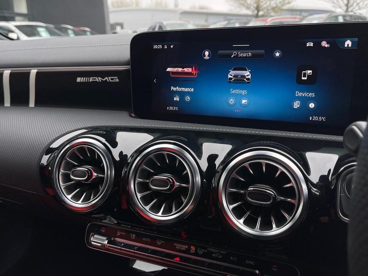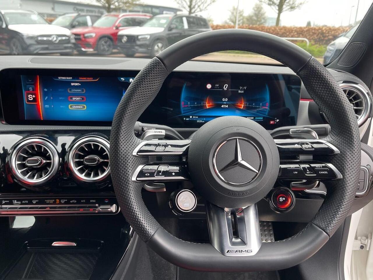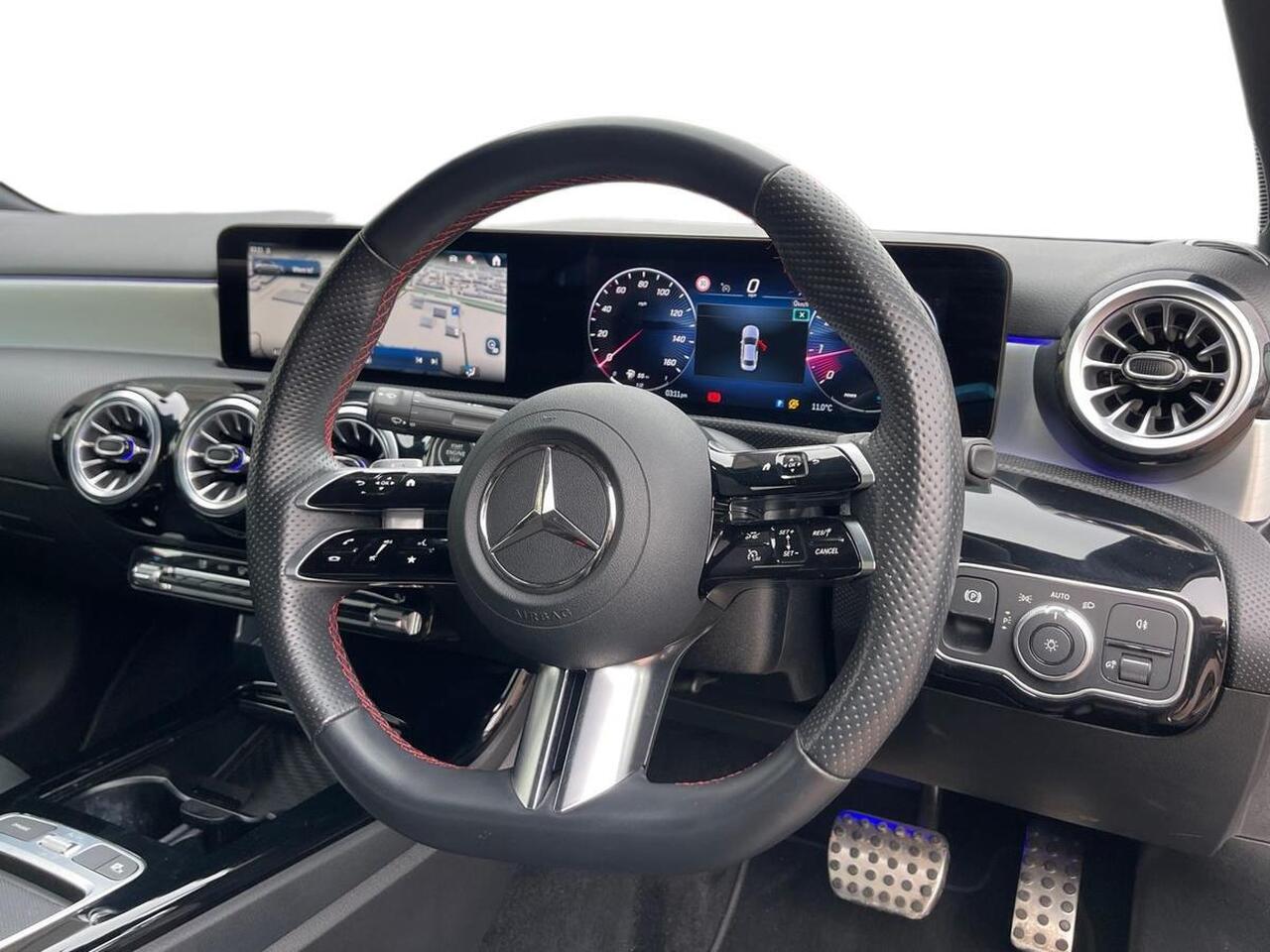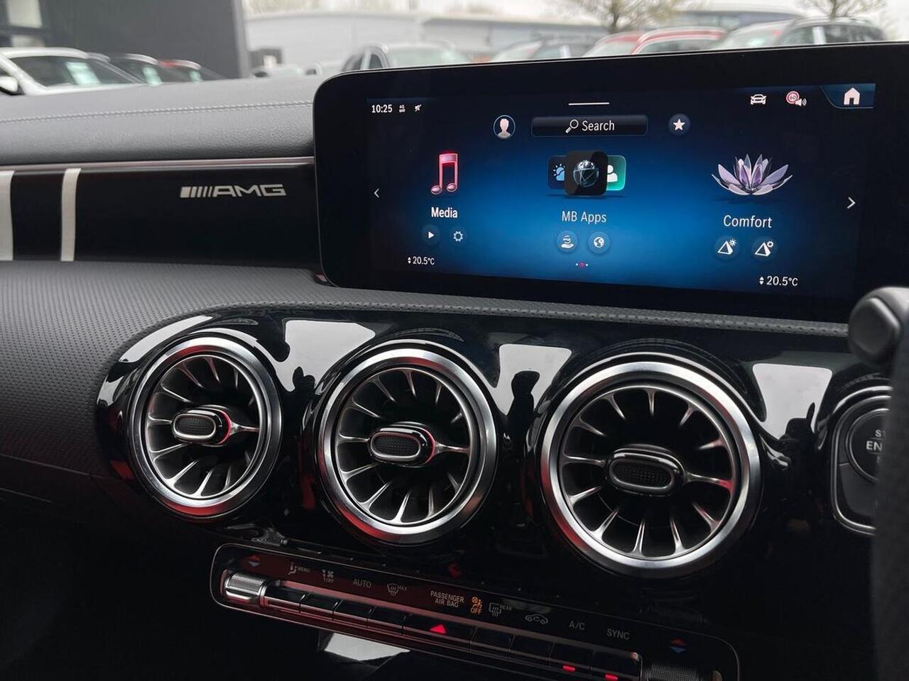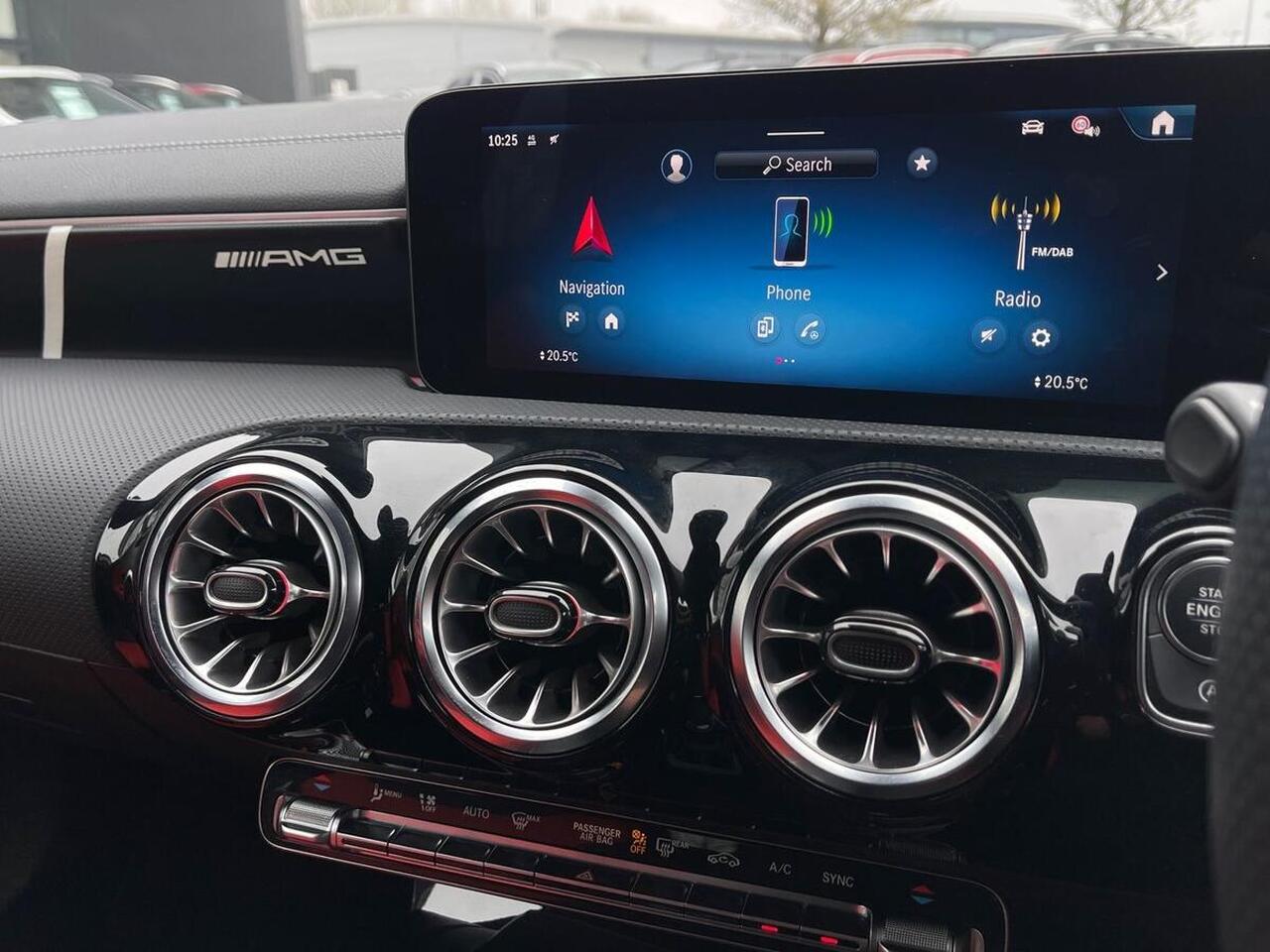 "features": "10.25 inch touchscreen central media display, 10.25\" Digital instrument cluster display screen, Attention assist, Blind spot assist, Brake pad wear indicator warning light, Car wash mode, Cruise control + speed limiter, Direct steering, Direction indicators with lane change function, Dual bluetooth interfaces, DYNAMIC SELECT with driving programs (Slippery, Comfort, Sport, Sport+ and Individual), ECO start/stop function, Engine start/stop button, Fluid level warning indicator for fuel, oil, coolant and washer fluid, Fluorescent jacket for driver, Hard-disk navigation, Hey Mercedes Voice activation, Lamp failure indicator, Lane keeping system, MBUX augmented reality for navigation, Mercedes me connect including emergency call system, accident recovery, breakdown and maintenance management, Mercedes me remote services, Outside temperature gauge, Owners manual in English, Pre-installation of private car share, Remote boot closing, Service indicator (ASSYST), Smartphone integration with Apple CarPlay and Android auto, Speed limit assist, Speed sensitive power steering, Tailgate, Trip computer in multifunction display with current consumption indicator, Wireless charging, AMG suspension, DAB Digital radio, MBUX multimedia system, Mercedes Benz sound system (100 W) with 6 speakers, 4 Electric Front and Rear windows, Adaptive brake lights, AMG body styling - AMG front apron with front splitter and AMG rear apron and visible exhaust tailpipe trim elements, AMG Front apron with flics as air deflector elements on the outer air intakes, AMG Rear apron with specific diffuser look with four vertical fins and two round chrome plated tailpipe trim elements with a diameter of 90 mm, AMG spoiler lip on roof, AMG sports exhaust system with two round tailpipes attached to the rear apron, Beltline strips in High gloss Black, Body colour bumpers, Body colour door handles with chrome inserts, Body colour side skirt, Electric adjustable and heated door mirrors with integrated LED side indicators, Front splitter and trim elements on the louvres in the outer air inlets, Front wings wheel arches with TURBO 4MATIC lettering, Headlamp assist automatic headlamp activation, Heated glass rear windscreen + timer control, LED High level third brake light, LED High Performance headlamps including integral LED daytime running lamps and adaptive highbeam assist, LED tail lamp, Privacy glass, Radio aerial, Rain sensing windscreen wipers with two sensitivity settings, Rear fog lights, Rear side wing doors, Rear windscreen wiper, Wider wheel arches for AMG wheels, Window line trim strip in black, 3 seat bench in 2nd row, 4 way lumbar support, 40:20:40 split folding rear seats, Air conditioning - Two zone thermotronic luxury automatic climate control with display, AMG floor mats, AMG Performance steering wheel in nappa leather, Automatic child seat recognition sensor, Black air vents with surround in silver chrome, Black roof lining, Brushed stainless steel sports pedals with rubber studs, Front centre armrest with stowage, Front door sills with AMG lettering, Front seat backs luggage nets, Heated front seats, Height/reach adjustable steering column, Interior lighting - 64 colour Ambient lighting, Interior mirror with reading lamps in black and frameless, Rear armrest with 2 cupholders, Rear head restraints, Seat occupancy sensor for front passenger seat, Silver coloured aluminium gear shift paddles on steering wheel, Single front passenger seat, Sports seats with integrated headrests, Stowage compartment in centre console with retractable cover, Sunvisors with illuminated vanity mirrors, Twin front cupholders, Aerodynamic pack - A Class, AMG night pack - A Class, AMG night pack II - A Class, Light and sight package - A Class, Mirror package - A Class, Parking pack with 180 degree view - A Class, Seat comfort pack - A Class, USB pack plus - A Class, 3 rear 3 point seatbelts, ABS with Brake Assist, Active bonnet, Active brake assist includes forward collision warning system with autonomous braking, Adaptive brake assist with hold function and hill start assist, Bonnet with power domes, Childproof locks manually operated for rear doors and electrically operated for rear power windows, Crash responsive emergency lighting, Driver and passenger head and side airbags, Drivers knee airbag, Dual stage driver/passenger airbags, Electronic parking brake, ESP curve dynamic assist, ESP with ASR, Front and rear seatbelt reminder, Front brake calipers with AMG lettering, ISOFIX and top tether child seat fixing points in two outer rear seats, Tyre pressure monitoring system, Warning triangle and first aid kit, Window airbags, Alarm system/interior protection/immobiliser, Guard 360 degree vehicle protection, Keyless entry lock/unlock, Keyless Go, Remote central locking and crash sensor with emergency opening function, Aluminium AMG design black/silver interior trim, Black seatbelts, 19\" AMG 5 twin spoke light alloy wheels painted in high gloss black with high sheen finish, Summer tyres, Tirefit sealant kit, ",