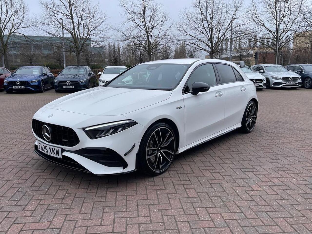 "remarks": "Additional Group 1 free extended warranty included when you finance your vehicle through Group 1 Mercedes-Benz. This would be a 12-month extension for cars under 12 months old, and a 24-month extension for cars over 12 months old. 11.9% APR Representative. T&Cs apply. Subject to status. This offer can we withdrawn at any time and is subject to eligibility. Please see our website for further details\\n\\nBoasting exceptionally low mileage for its year, this 2025 Mercedes-Benz A35h AMG Touring Edition presents a remarkable opportunity. This four wheel drive, Euro 6 compliant model features a powerful 2.0L petrol hybrid engine, offering both performance and efficiency. As a Mercedes-Benz manufacturer approved vehicle, it comes with the assurance of quality and a 12 month warranty for your peace of mind. The single owner history further enhances its appeal, alongside notable features such as Smartphone Integration with Android Auto and Apple CarPlay, heated front seats for ultimate comfort, and KEYLESS-GO for effortless access.\\n\\nExperience the thrill of rapid acceleration, reaching 0-62mph in a swift 4.7 seconds, a testament to its AMG performance pedigree. The LED High Performance Headlamps with Adaptive High Beam Assist ensure excellent visibility in all conditions, while the convenience of wireless charging keeps your devices powered up on the go. This A Class also offers generous boot space, making it a practical choice for everyday life and longer journeys alike. These combined attributes signify a vehicle that stands out from others in its class, offering a superior blend of dynamic capability, advanced technology, and everyday usability.",