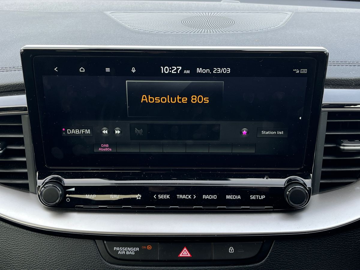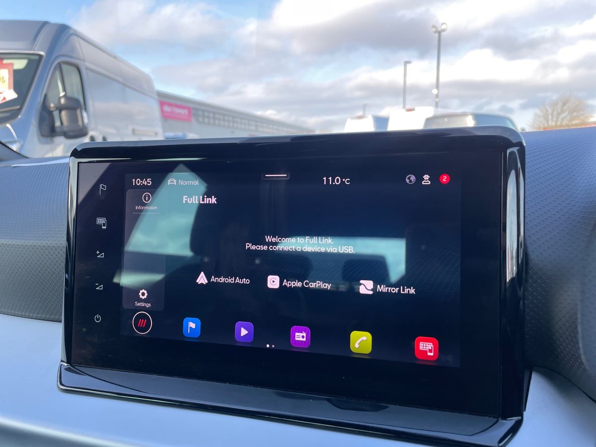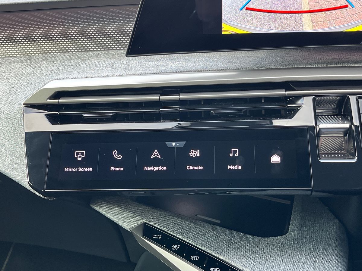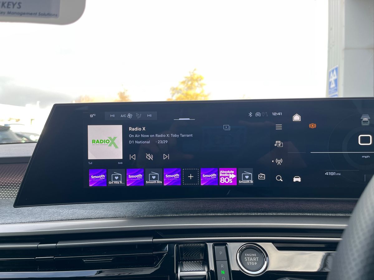 "12\" landscape touchscreen display with wireless apple car play and android auto premium B&O audio system with 10 speakers",