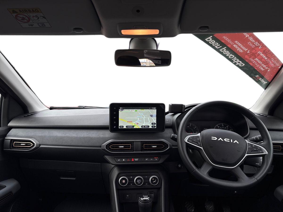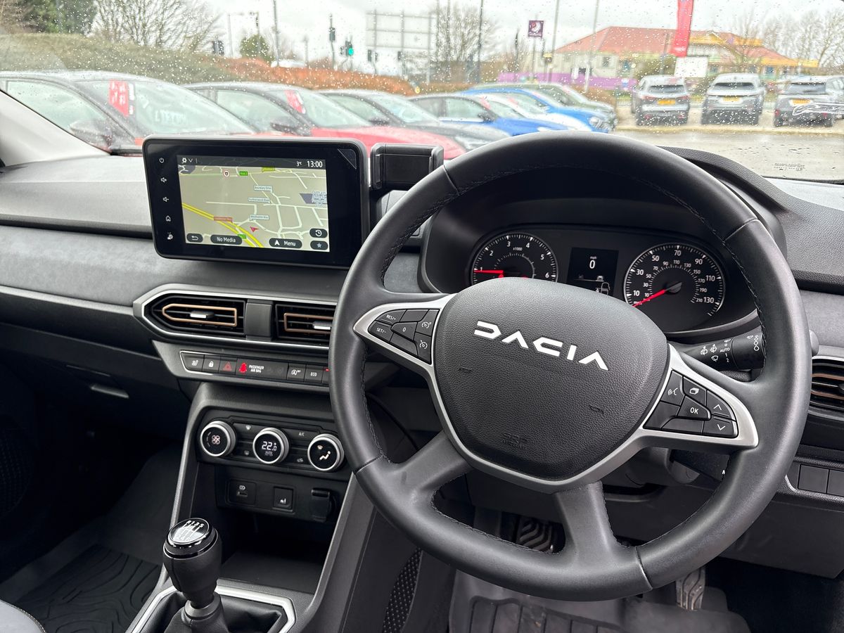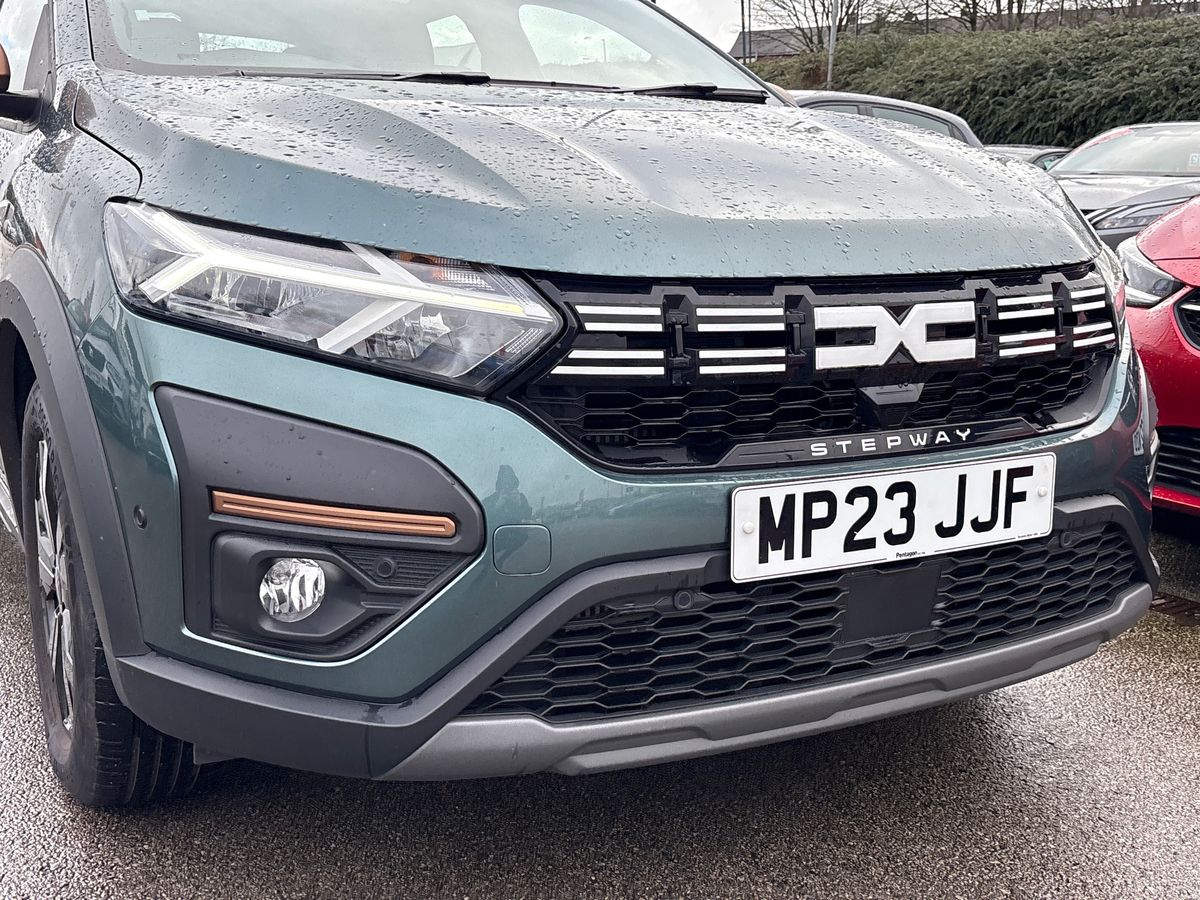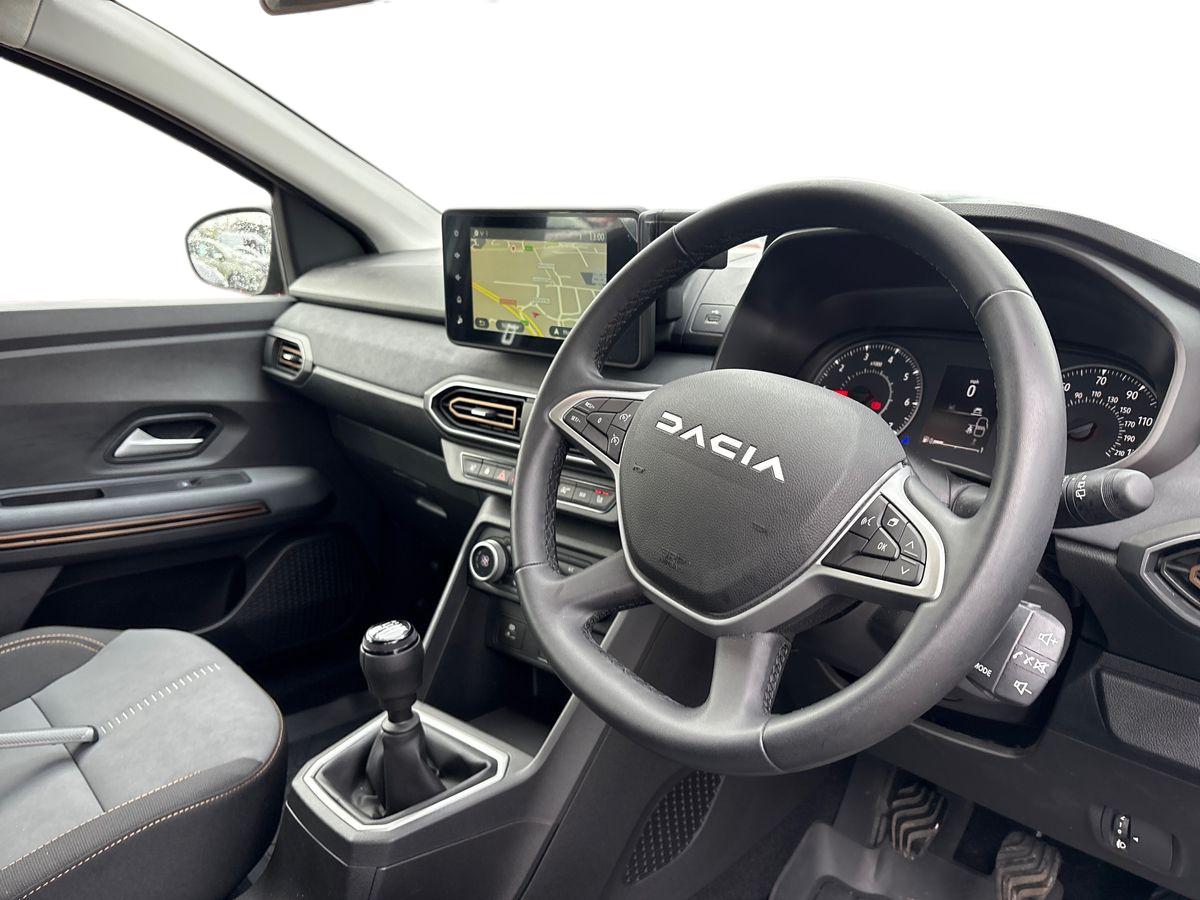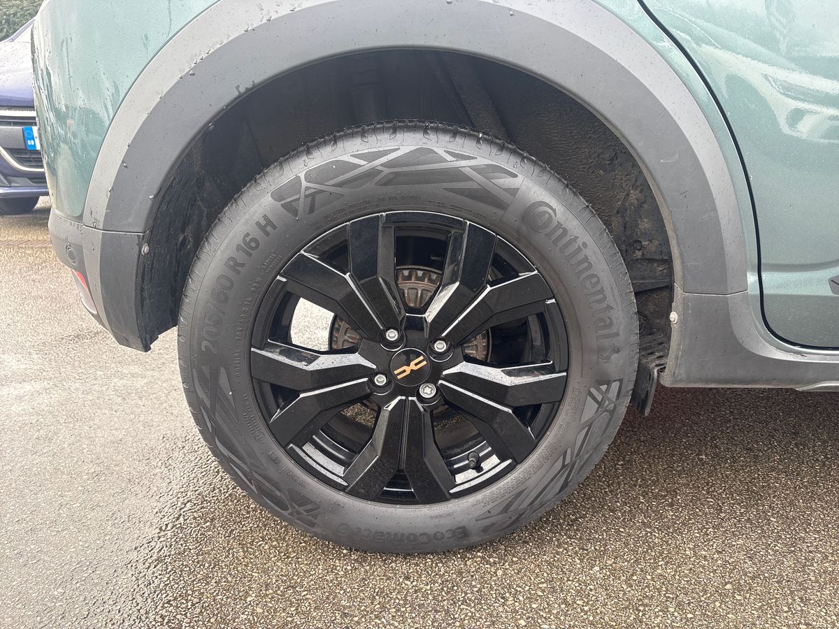 "features": "3.5\" TFT instrument panel with on-board computer, Blind spot warning, Cruise control with speed limiter, eCall emergency call system, Eco mode, Electric power assisted steering, Extended grip switch, Front parking sensors, Rear parking sensors, Rev counter, Reversing camera, Stop/start system, 8\" MediaNav with DAB Radio + Smartphone replication + Bluetooth + 6 Speakers with Apple Carplay and Android Auto, USB connection for data transfer and charging, USB socket, 3 speed windscreen wipers, Auto lighting, Automatic wipers, Body colour door handles, Body coloured bumpers, Chrome modular roof bars, Chrome Radiator Grille with Stepway inscription, Chrome with Copper Brown Stepway inscription on roof bars, Copper Brown Dacia inscription on tail gate, Copper brown deco part on fog lamp area, Copper brown door mirrors, Door sills in topographic pattern, Drivers one touch electric windows, Electrically adjustable and heated door mirrors, Front electric windows, Front fog lights, Heated rear window, High level third brake light, Lateral sticker with topographic pattern, LED automatic daytime running lights, LED Y-shape Dacia signature lighting, Rear electric windows, Rear side wing doors, Rear wash/wipe, Shiny black shark antenna, Snorkel sticker with topographic pattern, Tinted windows, 1/3 to 2/3 split folding rear seats, 12 volt front socket, 12 volt rear socket, 3 height adjustable rear headrests, 3 seat rear bench, Automatic air conditioning, Copper Brown animation on air vents, Copper brown doors deco parts, Driver and passenger vanity mirror with cover, Fabric upholstery, Fixed smartphone holder on dashboard, Front and rear rubber mats with topographic pattern, Gear shift indicator, Height adjustable drivers seat with armrest, Height adjustable front headrests, Height/depth adjustable steering wheel, High central armrest with console storage, Isofix points for child seats in both outer rear seats, Micro-cloud grey fabric on dashboard, Satin chrome interior door handles, Single front passenger seat, Soft feel steering wheel, Steering wheel controls, 3x3 point rear seatbelts, ABS and Emergency brake assist, Automatic emergency braking system, Child locks on rear doors, Door open visual and audible warning, Driver airbag, Electronic parking brake, ESC (Electronic Stability Control), ESP + Hill Start Assist, Front curtain airbags, Front seatbelt pretensioners, Front side airbags, Height adjustable front seatbelts, Passenger airbag, Seatbelt reminder for driver and front passenger, Tyre pressure monitor, Automatic central locking, Immobiliser, Keyless entry, Remote central locking, Decopart on instrument panel and door with textile, 16\" Full Black Diamond-effect alloy wheel with Copper brown Dacia logo on wheel centre caps, ",