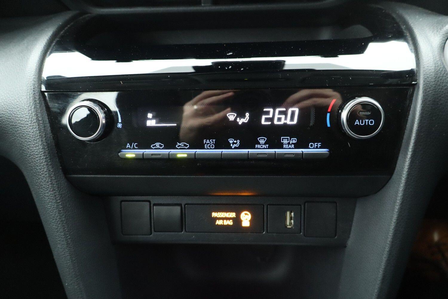 "features": "4.2\" multi information display, 8\" Toyota touch 2 multimedia system with Smartphone integration with Apple CarPlay and Android auto, Adjustable speed limiter, Bluetooth connectivity, Digital speedometer, Driver attention alert system, eCall emergency system, Electric power steering, Full range intelligent adaptive cruise control, Hybrid system indicator, Key reminder warning, Lane trace assist, Multimedia, audio, telephone and voice recognition switches on steering wheel, My T Connected services, Pre-collision system enhanced with emergency steering assist, Reversing camera, Road sign assist - RSA, Steering assisted vehicle stability control, 6 speakers, DAB Digital radio, USB connection, 3rd brake light, Acoustic windscreen glass, Anti-jam protection on power windows, Auto high beam [AHB] with on/off switch, Automatic headlights, Black lower front grille, Black Shark-fin antenna, Black upper front grille, Black wheel arch mouldings, Body colour door handles, Body colour front bumper, Body colour rear bumper, Electric adjustable heated door mirrors, Follow me home headlights, Front and rear electric windows with auto up/down function, Front intermittent wipers, Halogen projector headlights, Headlight cut off reminder, Indicators integrated on door mirrors, Intermittent rear wiper, LED daytime running lights, LED Indicators, Manual headlight levelling, Manually retractable door mirrors, Noise reduction layer on windscreen, Rain sensor, Rear side wing doors, Rear spoiler, Rear window defogger, 12v power outlet - front, 2x Rear coat hooks, 3 seat bench in 2nd row, 3 spoke leather steering wheel, 60/40 split folding rear seat, Adjustable speed limiter switch on steering wheel, Auto air conditioning, Boot light, Central armrest, Driver and front passenger personal lights, Fabric door trim, Fabric upholstery, Front console box, Front cup holders, Front head restraints, Glovebox, Grey roof lining, Height adjustable driver's seat, Height adjustable front passenger seat, ISOFIX child restraint system, Lane departure alert switch on steering control, Leather gearshift, Manual telescopic and tilting steering wheel, Mirror on driver and passenger sun visor, Pollen air filter, Rear head restraints, Single front passenger seat, Soft tonneau cover, 3x3 point rear seat belts, ABS+EBD+Brake assist, Driver and passenger central airbags, Driver and passenger front airbags, Driver and passenger side airbags, Electronic parking brake, Emergency brake light system (EBS), Front seat belt reminder, Hill start assist control (HAC), Passenger airbag on/off switch, Pre-collision system with pedestrian and cyclist detection, Rear door child safety locks, Rear passenger side airbags, Rear seat belt reminder, Traction control, Tyre pressure warning system, Immobiliser, Intrusion alarm, Keyless smart entry with push button start, Power door locks, Power passenger window lock, Remote door lock, 16\" 10 spoke alloy wheels, Tyre repair kit, ",