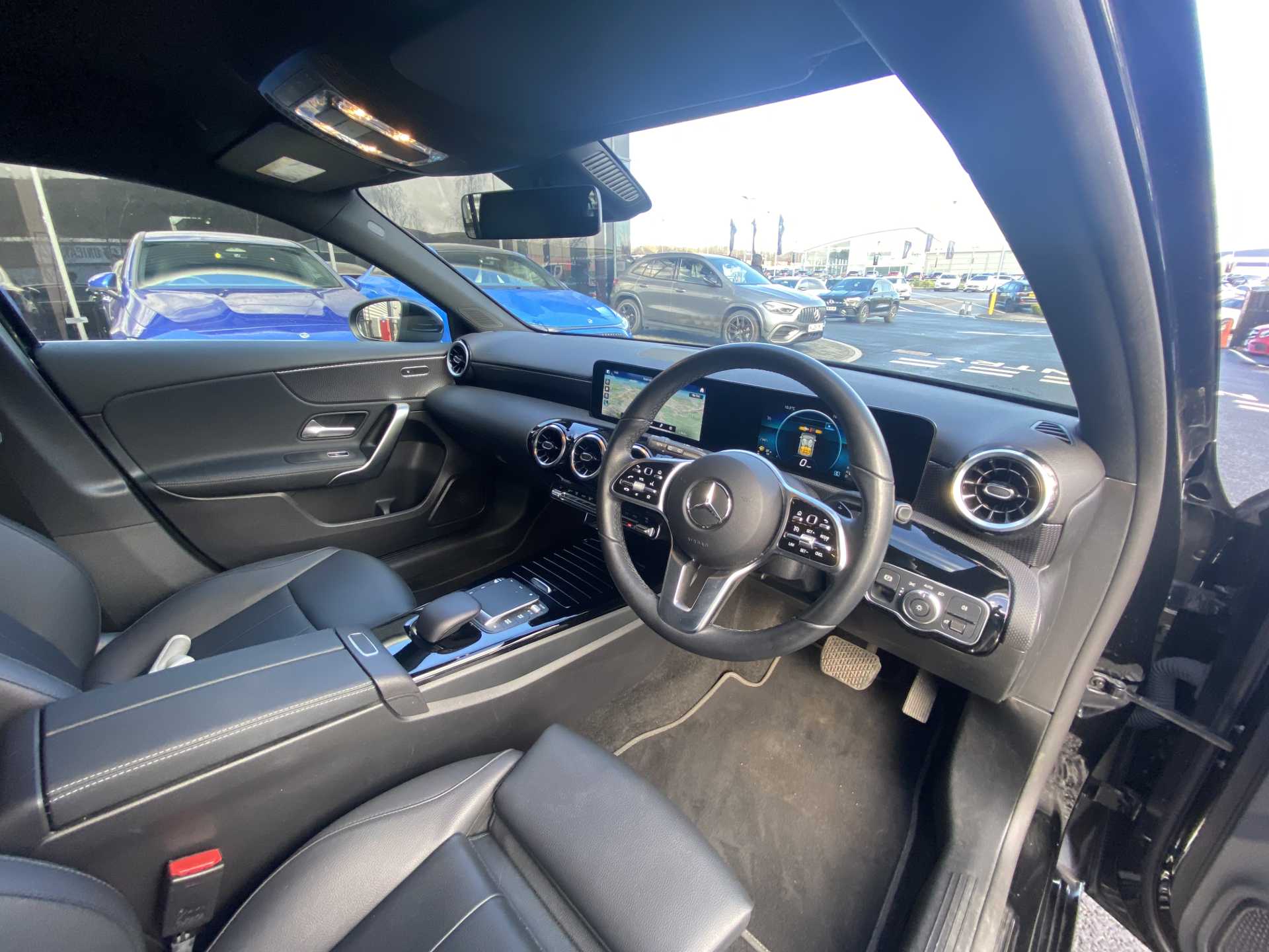 "features": "10.25\" media display, 180 degree rear view camera with parking guidelines, 7\" colour screen in instrument panel, Active parking assist with visual and audible warning of detected obstacles, Attention assist, Brake pad wear indicator warning light, Car wash mode, Cruise control + speed limiter, Direct steering, Dual bluetooth interfaces, DYNAMIC SELECT with a choice of driving modes (ECO, Comfort, Sport and Individual), ECO start/stop function, Fluid level warning indicator for fuel, oil, coolant and washer fluid, Hard-disk navigation, Hey Mercedes Voice activation, Lamp failure indicator, Lane keeping system, Mercedes me connect including emergency call system, accident recovery, breakdown and maintenance management, Mercedes me remote services, Outside temperature gauge, Owners manual in English, Pre-installation for private car sharing, Preinstallation for Mercedes Benz link, Service indicator (ASSYST), Smartphone integration with Apple CarPlay and Android auto, Speed sensitive power steering, Trip computer, Ultrasonic sensors positioned in the front and rear bumpers, Lowered comfort suspension, Rear axle torsion beam, 2 USB ports (type C) in rear stowage compartment and one in front of center console, 6 speakers, DAB Digital radio, MBUX multimedia system with DAB digital radio and touchpad including satellite navigation, Mercedes-Benz sound system - 100W, 4 Electric Front and Rear windows, Adaptive brake lights, Automatic headlights, Black weather strip, Body colour bumpers, Body colour door handles, Body colour side skirt, Body coloured door mirrors, Chrome beltline trim, Diamond radiator grille with black pins with one louvre in silver + chrome insert, Electric adjustable and heated door mirrors with integrated LED side indicators, Exhaust system - Twin visible tailpipes in polished stainless steel, Headlamp assist automatic headlamp activation, Heated glass rear windscreen + timer control, LED High level third brake light, LED high performance headlamps with integrated LED daytime running lights, LED tail lamp, Privacy glass, Radio aerial, Rain sensing windscreen wipers with two sensitivity settings, Rear fog lights, Rear side wing doors, Rear wiper, Window line trim strip in chrome, 3 seat bench in 2nd row, 3 Spoke leather multi function steering wheel, 40:20:40 split folding rear seats, Artico man-made leather upholstery, Auto Mercedes-Benz child seat recognition sensor, Black air vents with surround in silver chrome, Black roof lining, Controller on centre console with chrome surround, Front centre armrest with storage compartment, Front comfort seats with adjustable head restraints, Front door sills with Mercedes Benz lettering, Front seat backs luggage nets, Front seat cushion length adjustment, Gearshift paddles on steering wheel, Heated front seats, Height/reach adjustable steering column, Interior mirror with reading lamps in black and frameless, Manual height adjustable front seats, Rear head restraints, Seat occupancy sensor for front passenger seat, Single front passenger seat, Stowage compartment in centre console with retractable cover, Sunvisors with illuminated vanity mirrors, Touchpad on center console, Twin front cupholders, Two zone thermotronic luxury automatic climate control, Velour floor mats, Light and sight pack - A Class, Mirror package - A Class, Seat comfort pack - A Class, 3 rear 3 point seatbelts, ABS with Brake Assist, Active bonnet, Active brake assist includes forward collision warning system with autonomous braking, Adaptive brake assist with hold function and hill start assist, Childproof locks manually operated for rear doors and electrically operated for rear power windows, Crash responsive emergency lighting, Driver and passenger head and side airbags, Drivers knee airbag, Dual stage driver/passenger airbags, Electronic parking brake, ESP curve dynamic assist, ESP with ASR, Front and rear seatbelt reminder, ISOFIX and top tether child seat fixing points in two outer rear seats, Tyre pressure monitoring system, Warning triangle and first aid kit, Window airbags, Alarm system/interior protection/immobiliser, Keyless Go, Remote central locking and crash sensor with emergency opening function, Urban guard vehicle protection system with immobiliser and interior protection, Black seatbelts, Dark carbon fibre interior trim, 18\" multi spoke light alloy wheels painted in himalayas grey with a high sheen finish, Summer tyres, Tirefit sealant kit, ",