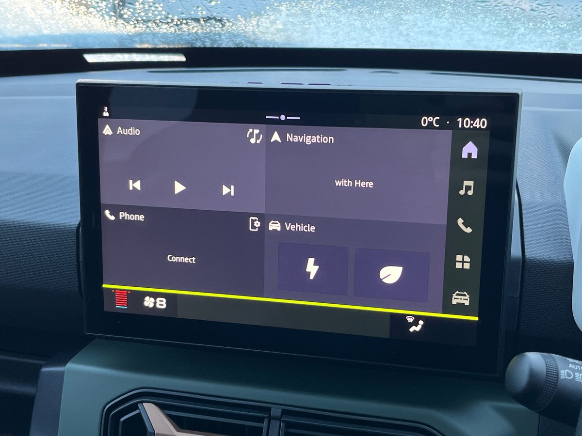 "features": "Cruise control + speed limiter, Driver attention warning, e-Call (emergency call), Electric power assisted steering, Emergency Stop Signal (ESS), Event data recorder, Front and rear parking sensors, Lane departure warning system, Lane keep assist system, Rear camera, Rescue code, Traffic sign recognition with speed alert/Intelligent speed assist (ISA), DC charger, Mode 3 charging cable, 10\" MediaNav live, DAB radio, smartphone replication, bluetooth, 2 speakers, apple carplay, android auto, USB-C, USB socket, 3 speed windscreen wipers, Automatic headlights, Automatic wipers, Body colour door handles, Copper door mirrors, Electric adjustable/heated door mirrors, Electric rear windows, Front and rear Bumper, body coloured with black elements and decorative insert, Front electric windows, Heated rear window, High level third rear brake light, LED automatic daytime running lights, LED Y shape Dacia signature lighting, Rain sensor, Rear fog lights, Rear side wing doors, Rear wash wiper, Tinted windows, 1 piece folding rear bench seat back, 12v socket in front, Door sill protection with topographic pattern, Fabric/TEP upholstery, Front headrests, Grey interior door handles, Height adjustable steering wheel, ISOFIX attachment on outer rear seats, Manual air conditioning, Rear headrests, Rubber floor mats with topographic pattern, Single front passenger seat, Soft feel steering wheel, 6 airbags - Driver, front passenger, curtain and side airbags, ABS+EBA, Alcohol imoboliser predisposal, Automatic Emergency Braking System (AEBS), Child locks on rear doors, Door open visual and audible warning, Driver and passenger seatbelt not fastened warning, ESP + Hill Start Assist, Front seatbelt pretensioners, Side impact protection, Two 3 point rear seatbelts, Tyre pressure monitor, Engine immobiliser, Remote central locking, Copper airvents inserts, Khaki dashboard decopart, 15\" steel wheels, Danube styler cover for 15\" steel wheels, Tyre inflation kit, ",
