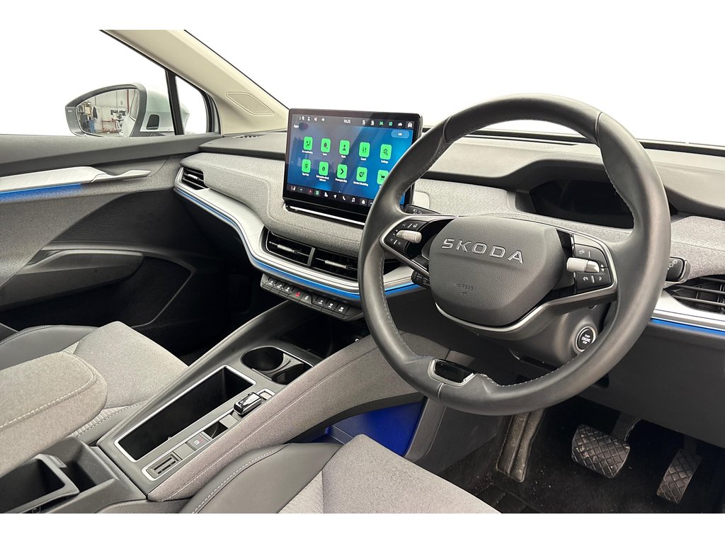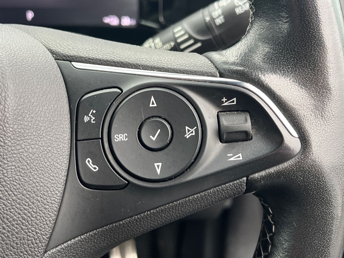 "3 spoke flat bottomed leather steering wheel with satin chrome bezel",