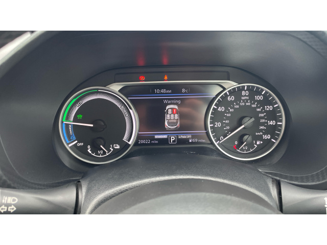 "features": "7\" full colour TFT screen combimeter, Apple CarPlay and Google Android auto, Drive modes select (Eco, normal and sport), e-Pedal step, Emergency and breakdown call, EV mode selector, Front parking sensor, Intelligent lane intervention, Lane departure warning system, Nissan connect 8\" touch screen entertainment system, Nissan connect nav with TomTom traffic, Nissan connect services and Wifi connection, Outside temperature sensor, Power Steering, Rear parking sensor, Traffic sign recognition, Trip computer, Voice recognition, Gasoline particulate filter, 6 speakers, Bluetooth system, USB, Aux-in and 12V socket, DAB Digital radio, Rear console USB port, Auto dimming interior rear view mirror, Auto headlights, Automatic hazard signal with emergency stop signal, Body colour bumpers, Body colour door handles, Electrically adjustable door mirrors with integrated indicators, Follow me home headlights, Front and rear electric window with one touch driver window, Heated and auto folding door mirrors, High beam assist, LED daytime running lights, LED headlamps, LED rear fog lamp, LED rear lamps, Rain sensor windscreen wipers, Rear privacy glass, Rear side wing doors, Rear wiper, Three blink turn signal, 3 height adjustable rear headrests, 3 seat bench in 2nd row, 60/40 split folding rear seat, Automatic climate control, Card holder on driver sunvisor, Cloth upholstery with black and metallic grey syntech leather inserts, Driver and passenger sliding and reclining seats, Driver side rear coat hanger, Driver/passenger sunvisors and vanity mirrors, Front and rear cabin lights, Front armrest, Front door pockets with bottle holders, Front head restraints, Front/rear passenger grab handles, Grey synthetic leather kneepad, Height adjustable driver's seat, Internal chrome door handles, Leather gearshift knob, Leather steering wheel, Luggage board, Luggage space lighting, Monoform sporty seats, Multifunction steering wheel, Rear door bottle holders, Single front passenger seat, Steering wheel mounted gearshift paddles, Telescopic steering wheel adjustment, Two cupholders in front centre console, Two rear isofix child seat anchorage points with top tether, Welcome light and console tray ambient lighting, ABS with EBD and brake assist, Active ride control, Active Trace Control, Driver and passenger airbags, Driver and passenger side airbags, Electric handbrake with auto hold function, Electronic Stability Programme (ESP), Front and rear curtain airbags, Height adjustable seatbelts, Hill start assist, Intelligent emergency braking with pedestrian and cyclist recognition, Rear door child safety locks, Seatbelt reminder for driver/front passenger and rear seats, Single tone horn, Three 3 point rear seatbelts, Traction control, Tyre pressure monitoring system, VDC Dynamic Vehicle Control, Ventilated rear brake discs, Alarm, Immobiliser, Intelligent key and start push button with walk away lock and approach unlock functions, Remote central locking, ",