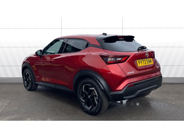 "remarks": "The 2023 Nissan Juke 1.6 Hybrid N-Connecta is a bold and efficient compact SUV, combining distinctive styling with advanced hybrid technology. Powered by a 1.6-litre petrol-electric hybrid system producing around 143bhp, it delivers smooth automatic performance while achieving impressive fuel economy of up to 55�59 mpg, making it ideal for both urban driving and longer journeys.\n\nInside, the Juke features a modern and driver-focused cabin, with a large touchscreen infotainment system, Apple CarPlay and Android Auto, satellite navigation and wireless connectivity. The N-Connecta trim adds extra convenience with climate control, a digital driver display, rear parking sensors and a reversing camera, ensuring a comfortable and connected driving experience.\n\nOn the road, the hybrid system allows for quiet electric-only driving at low speeds, seamlessly switching between petrol and electric power for efficiency and refinement. The automatic gearbox delivers a smooth drive, while selectable driving modes (Eco, Normal and Sport) let you tailor performance to suit your journey.\n\nExternally, the Juke stands out with its sharp, coupe-inspired SUV design, featuring LED headlights, a floating roof effect and stylish alloy wheels, giving it strong road presence. Despite its compact size, practicality is solid with a 350+ litre boot and flexible rear seating, making it suitable for everyday use or small families.\n\nSafety is a key strength, with a 5-star Euro NCAP rating and features including lane assist, traffic sign recognition, intelligent emergency braking and driver attention alert, providing confidence on every journey.\n\nOverall, the 2023 Nissan Juke Hybrid N-Connecta offers a great mix of style, efficiency and technology, making it a strong choice in the compact SUV market.",