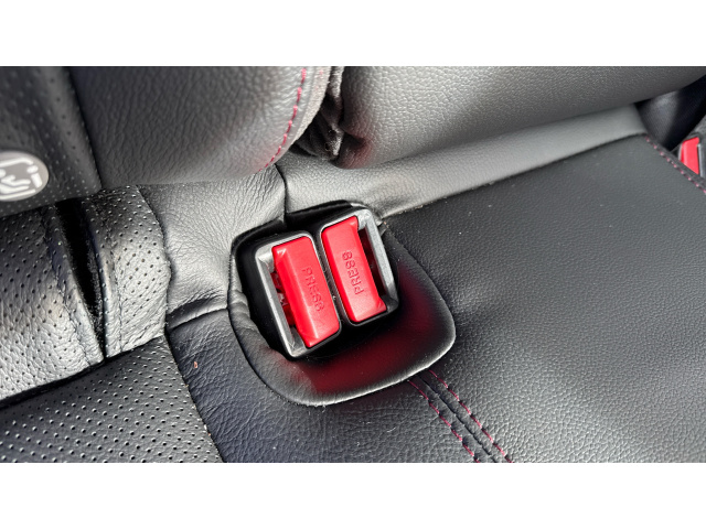 "Red stitching and accents on door trim, knee pad, console lid, steering wheel, shift boots",