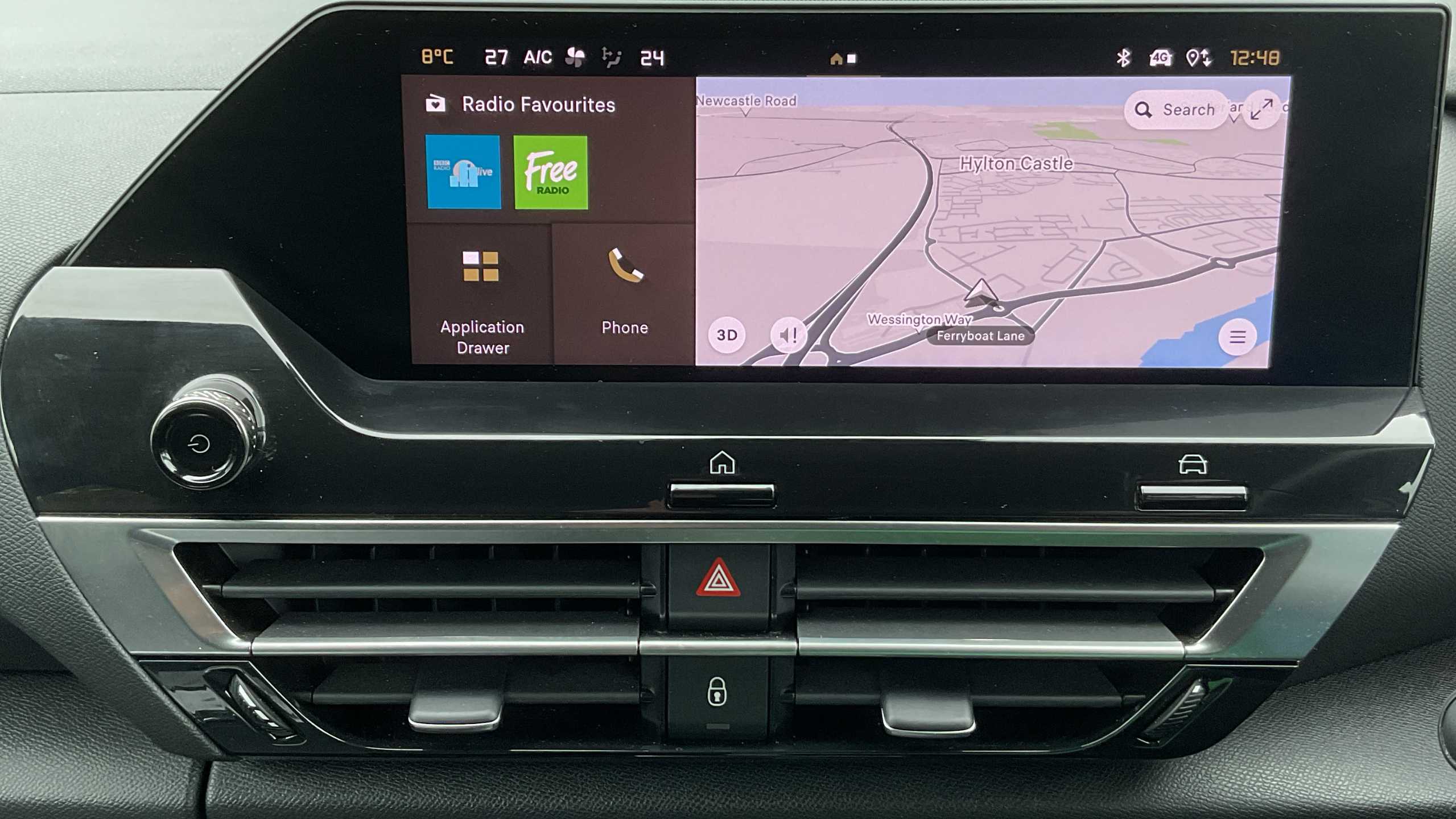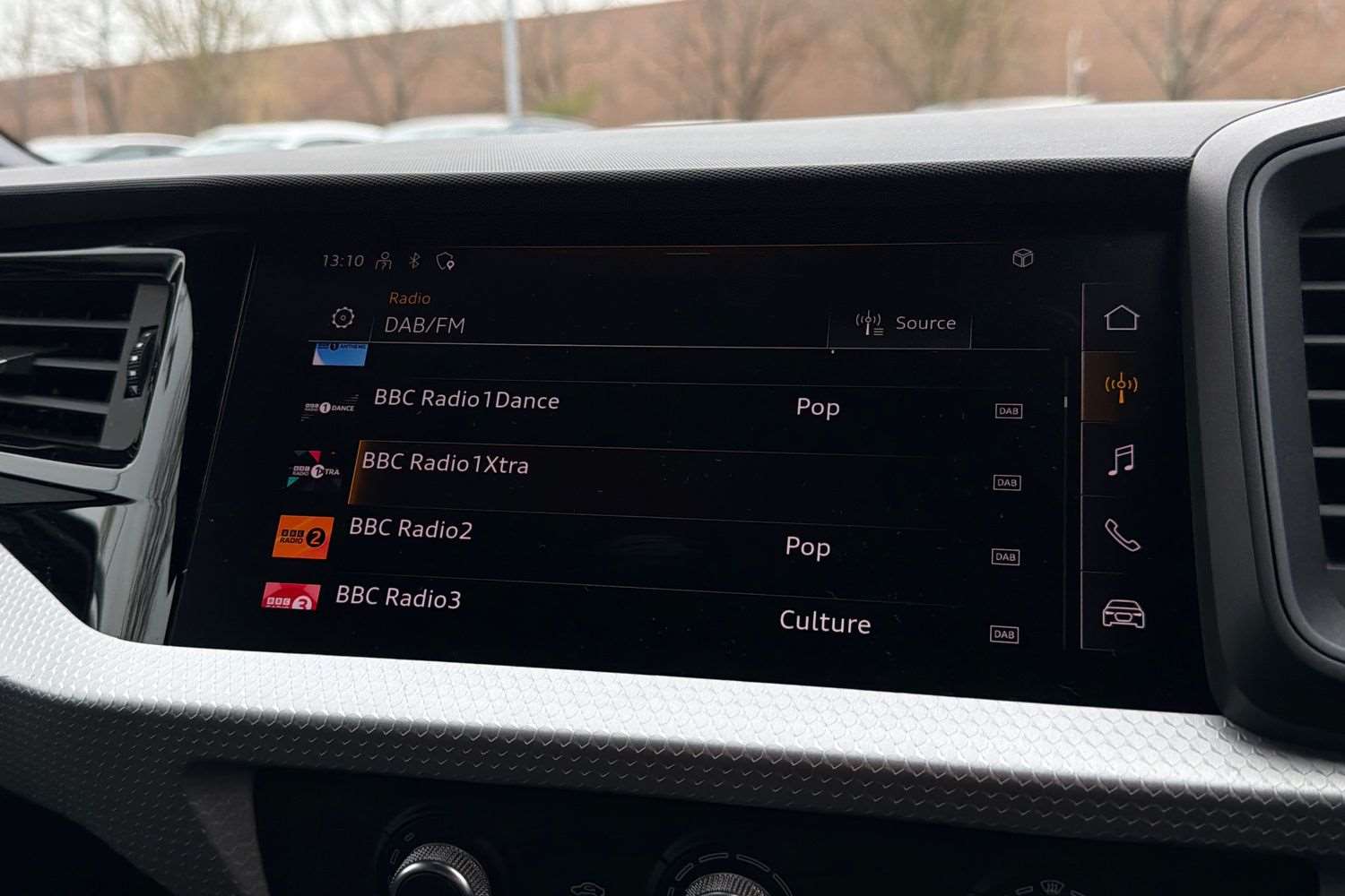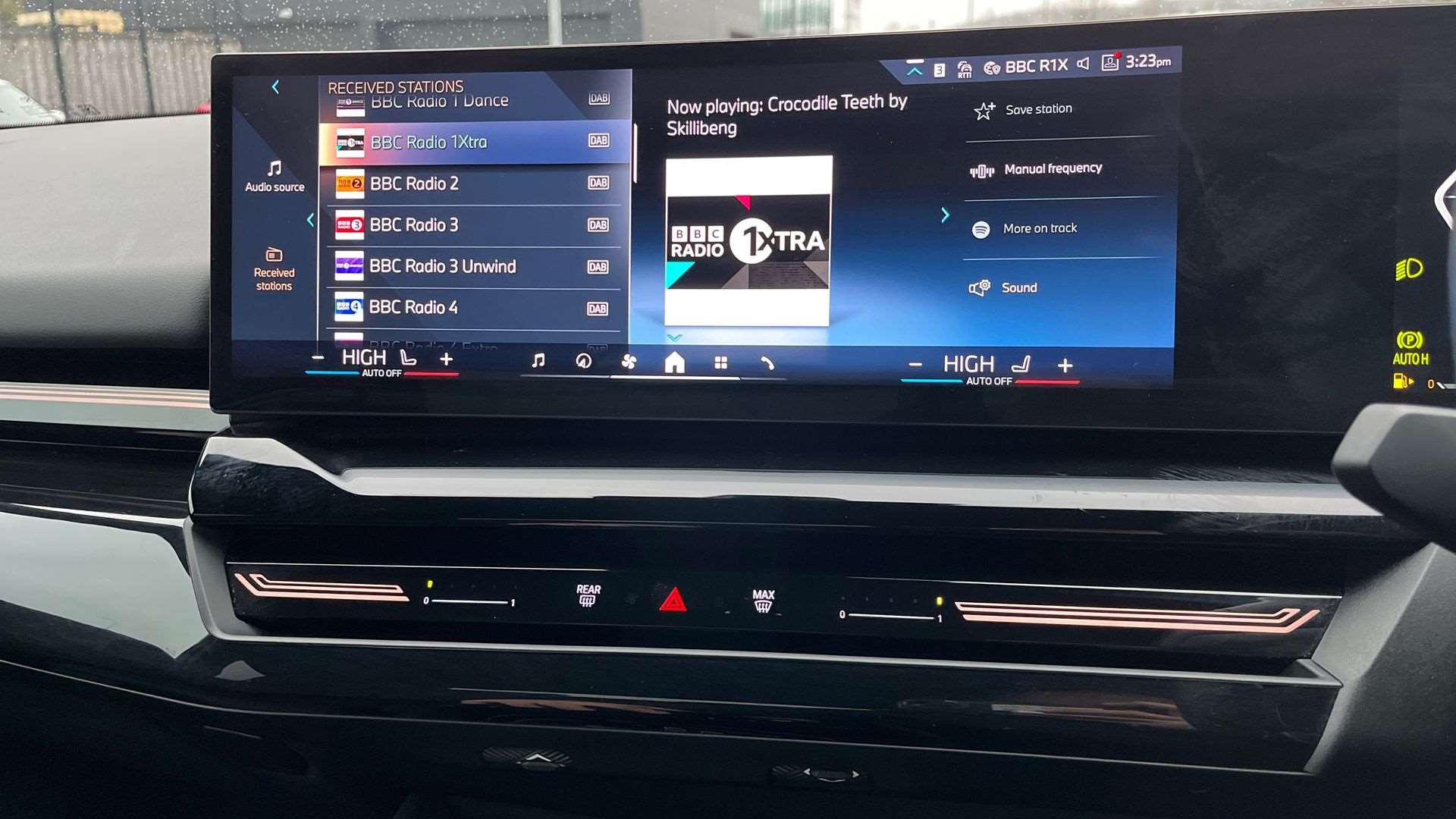 "Central facia display with audio information, clock and outside air temperature",