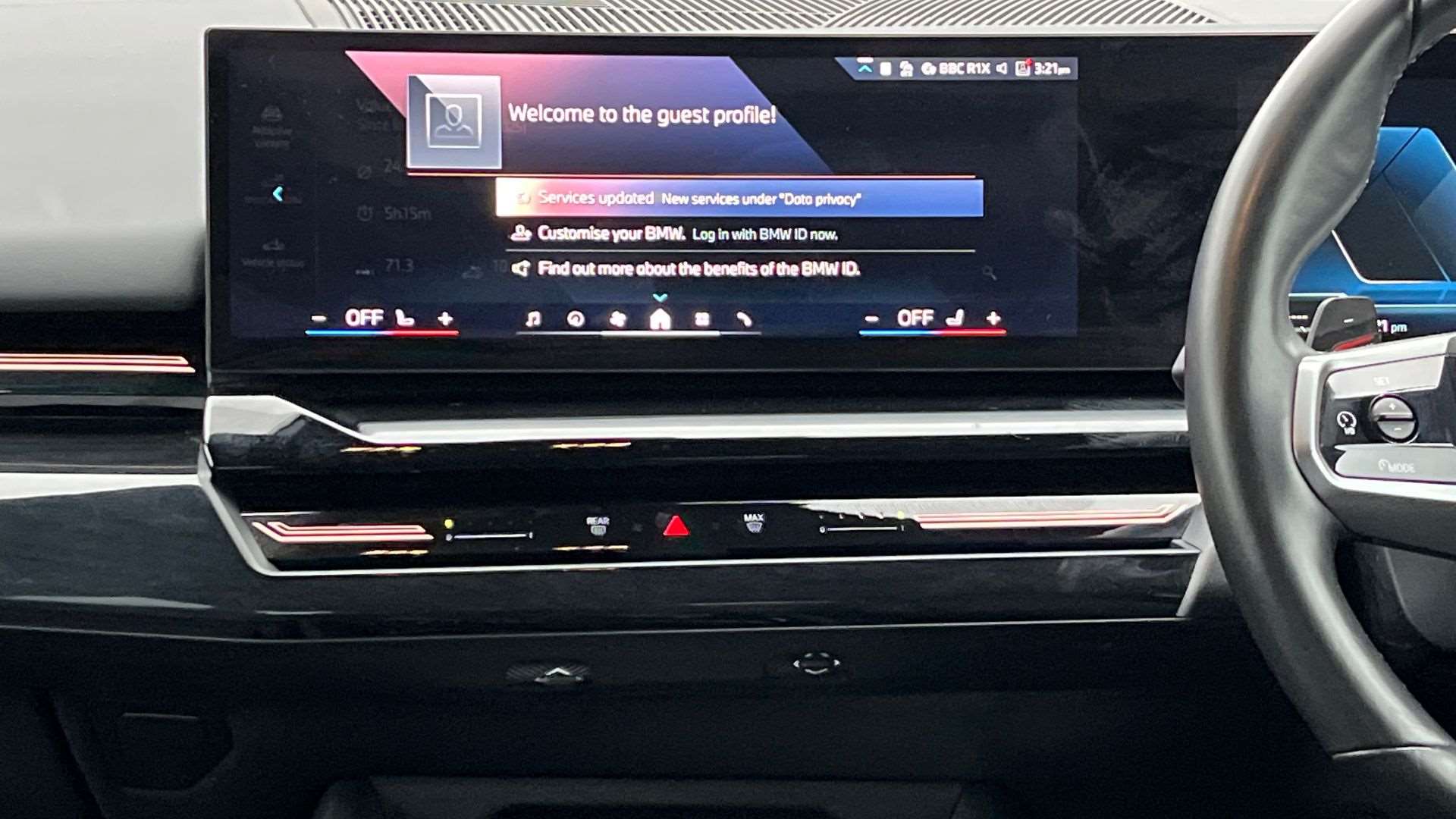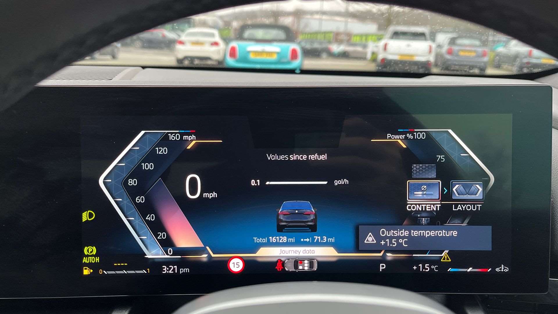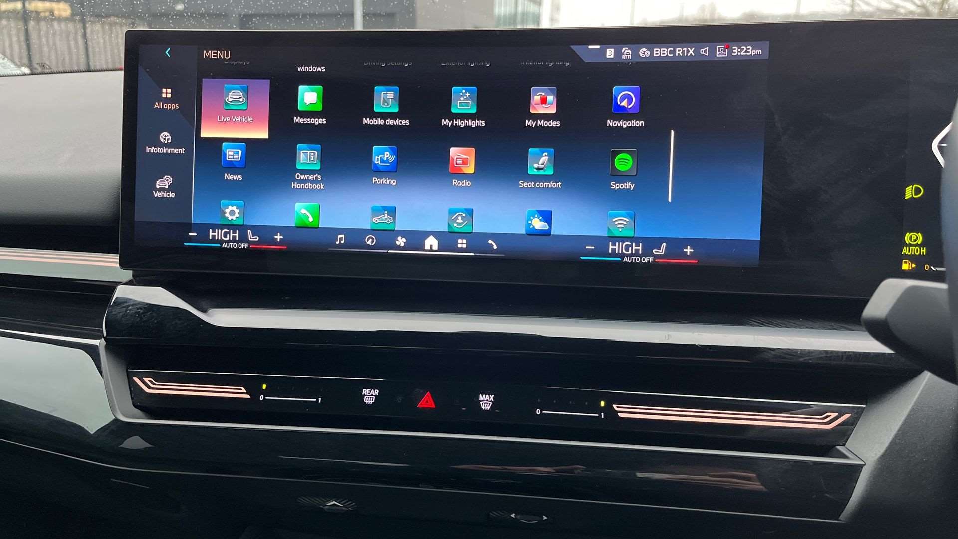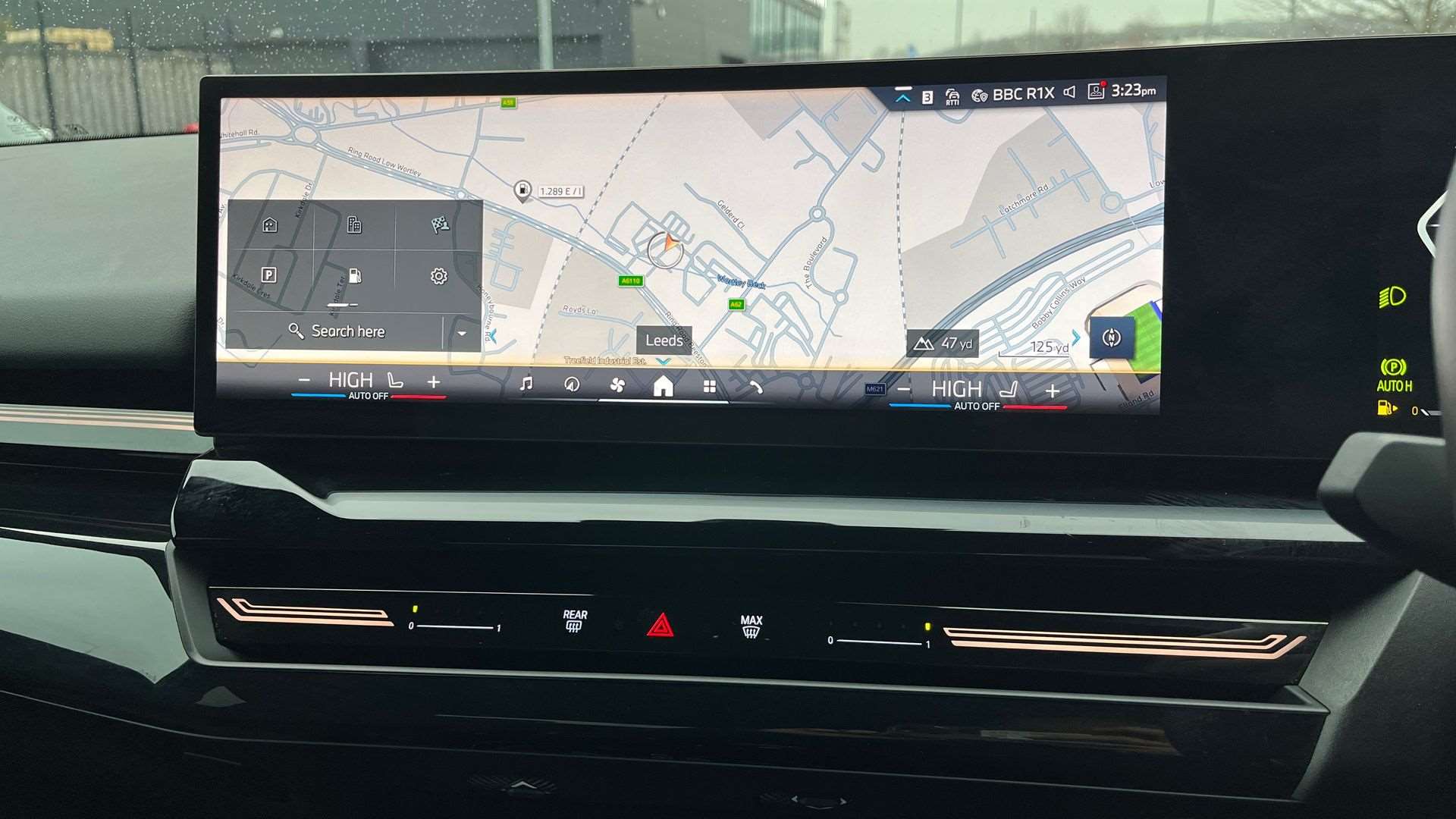 "Central facia display with audio information, clock and outside air temperature",