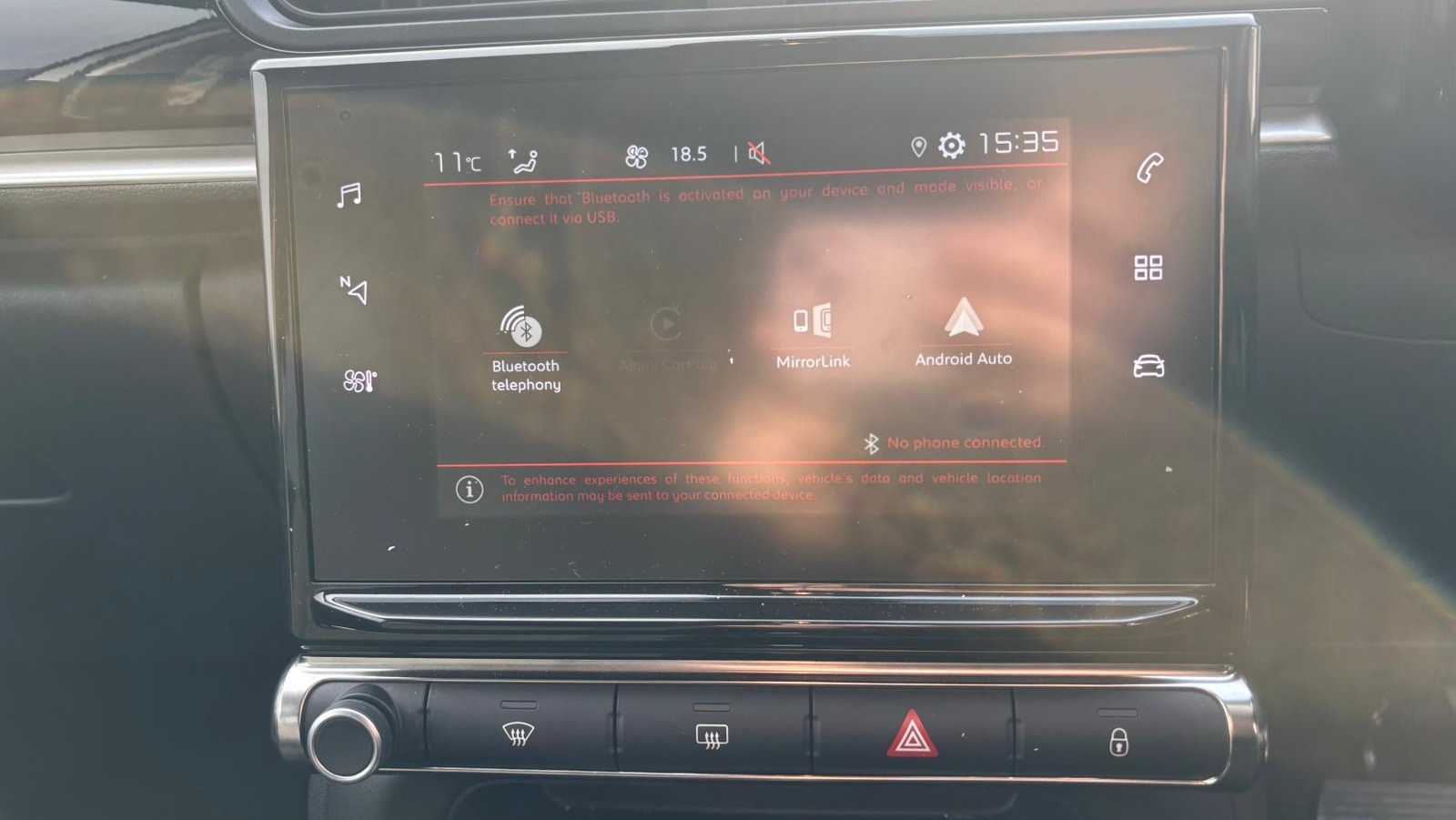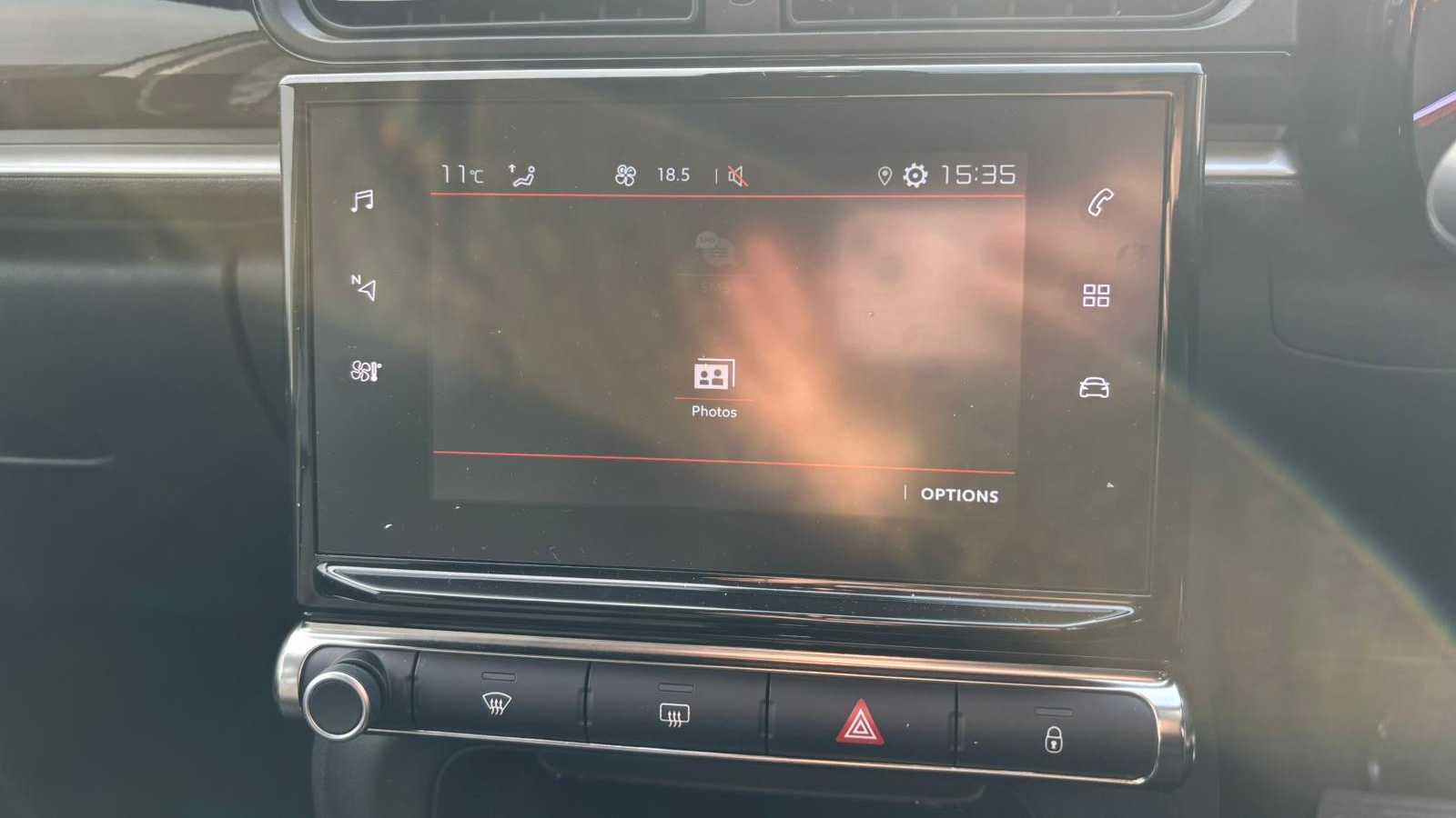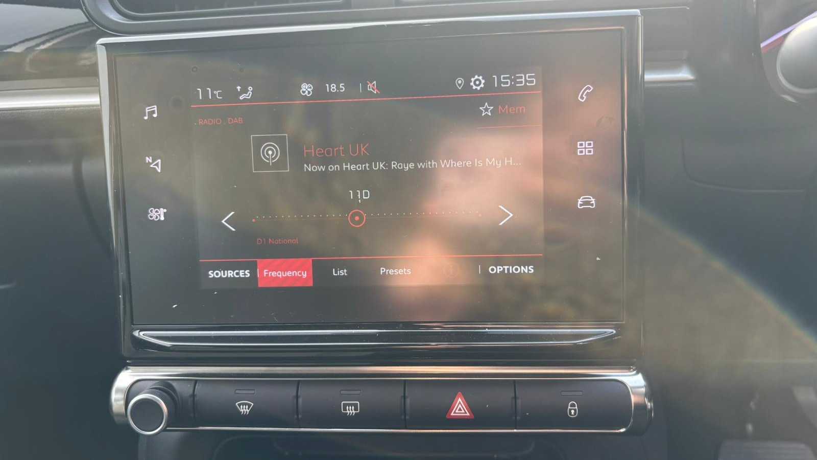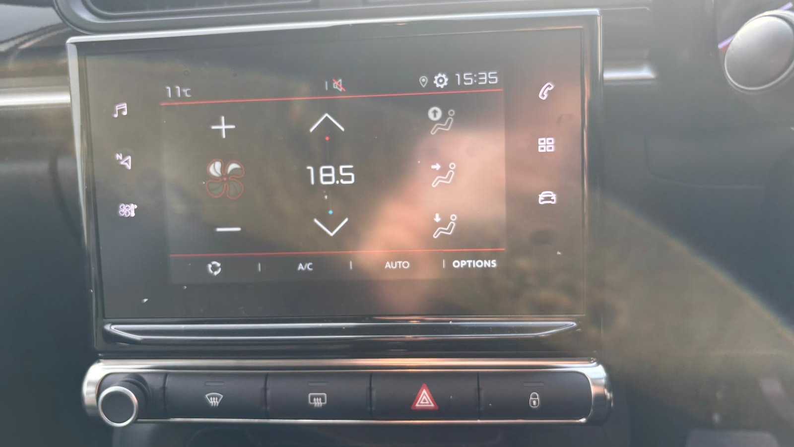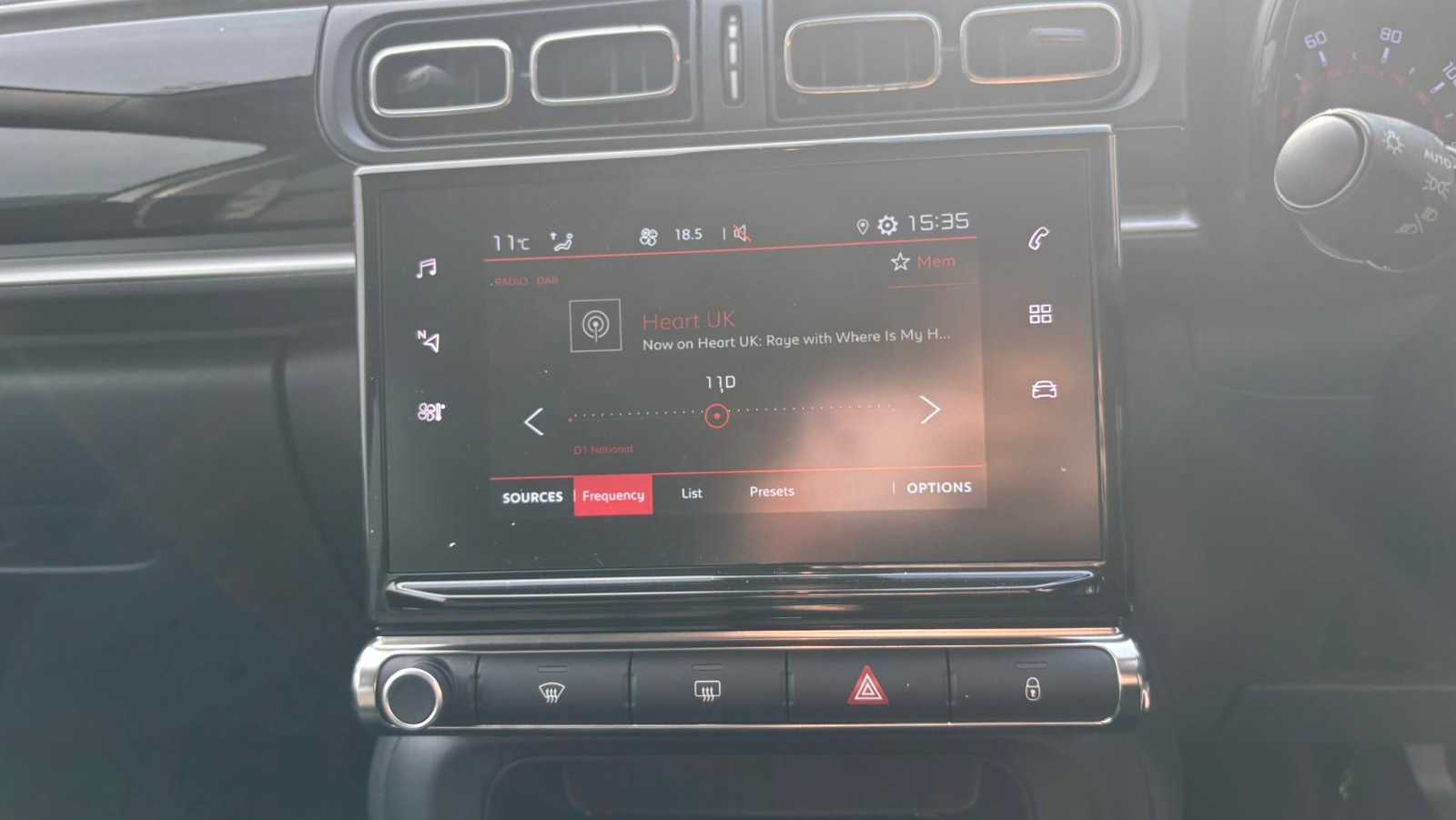 "Central facia display with digital clock, outside air temperature and audio information",