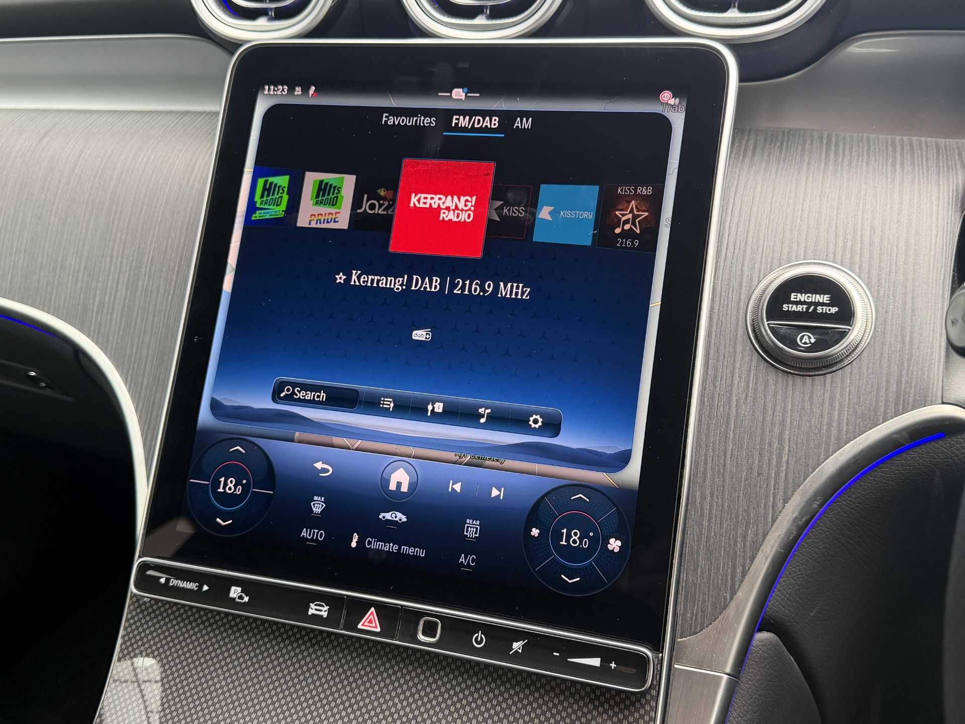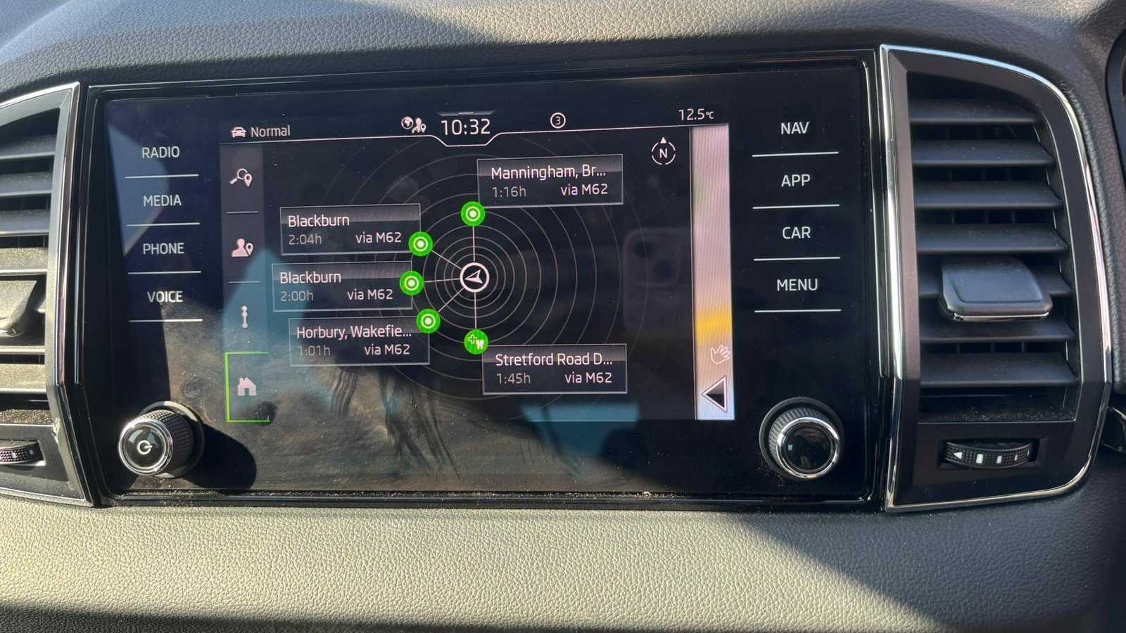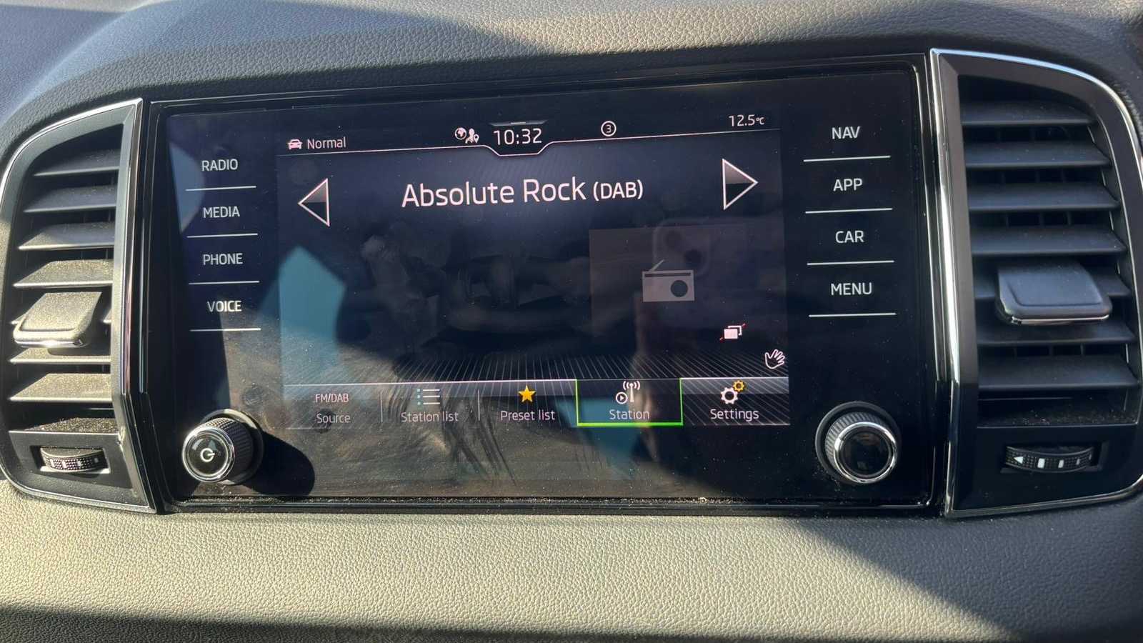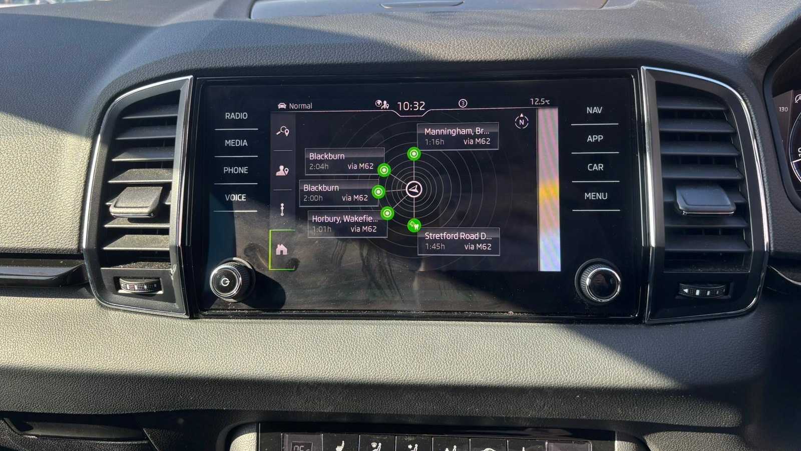 "Central facia display with digital clock, outside air temperature and audio information",