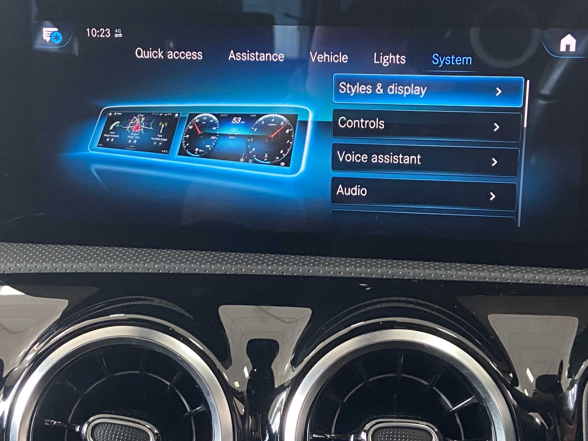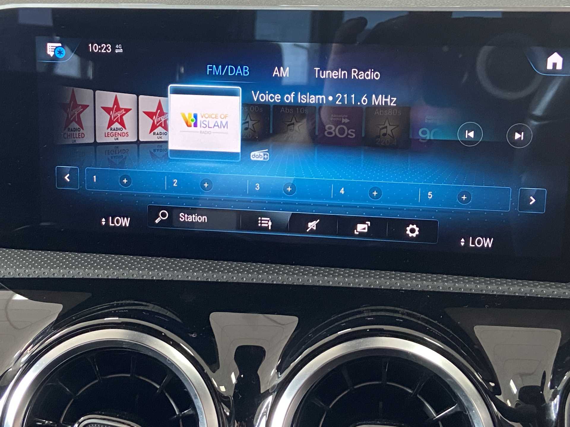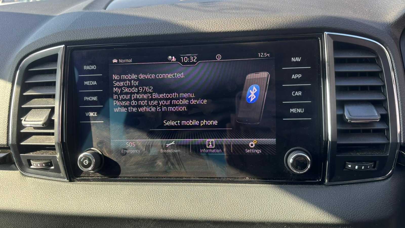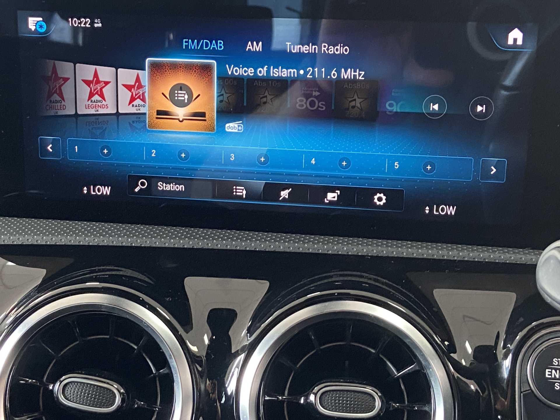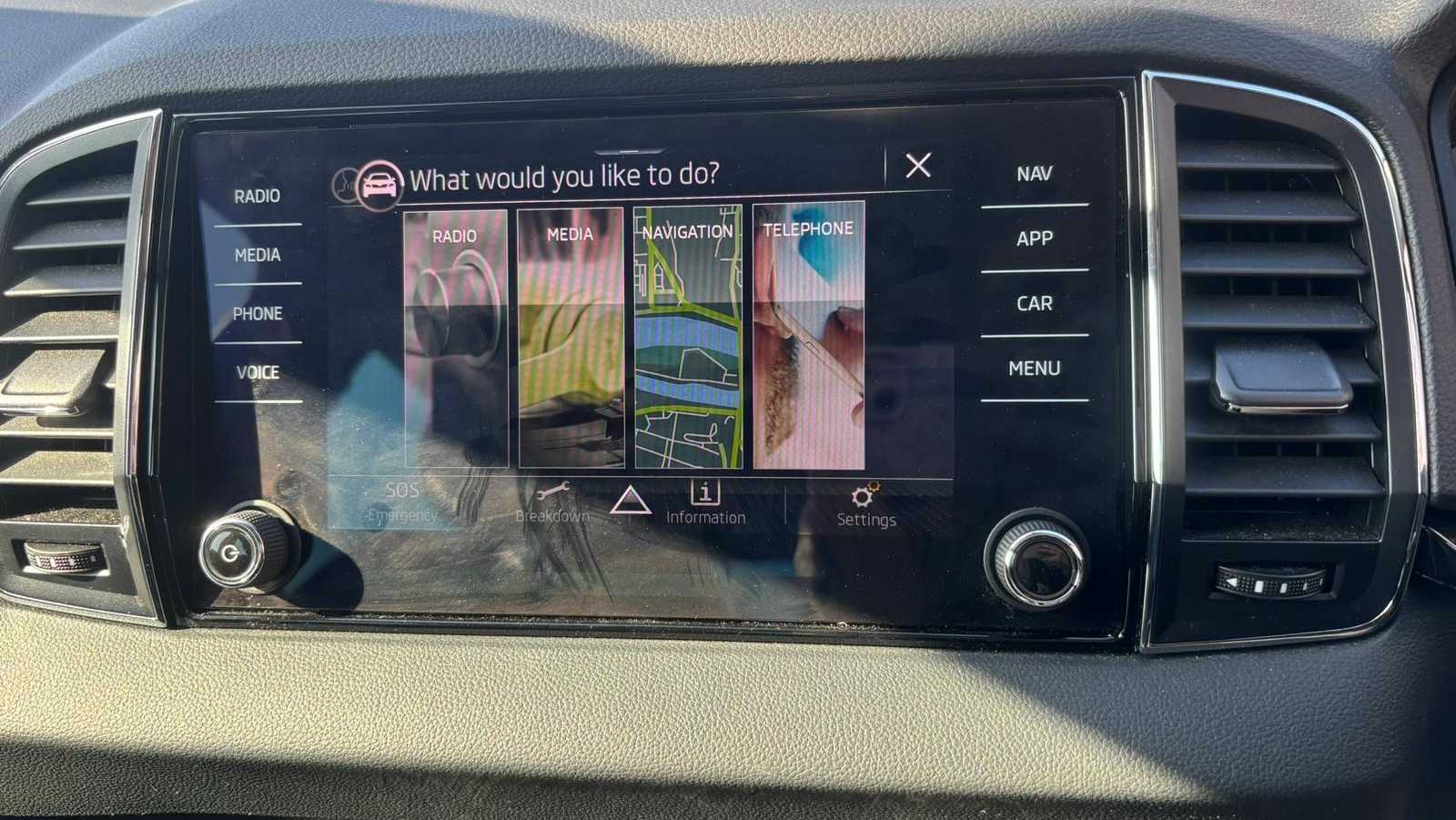 "Central facia display with digital clock, outside air temperature and audio information",